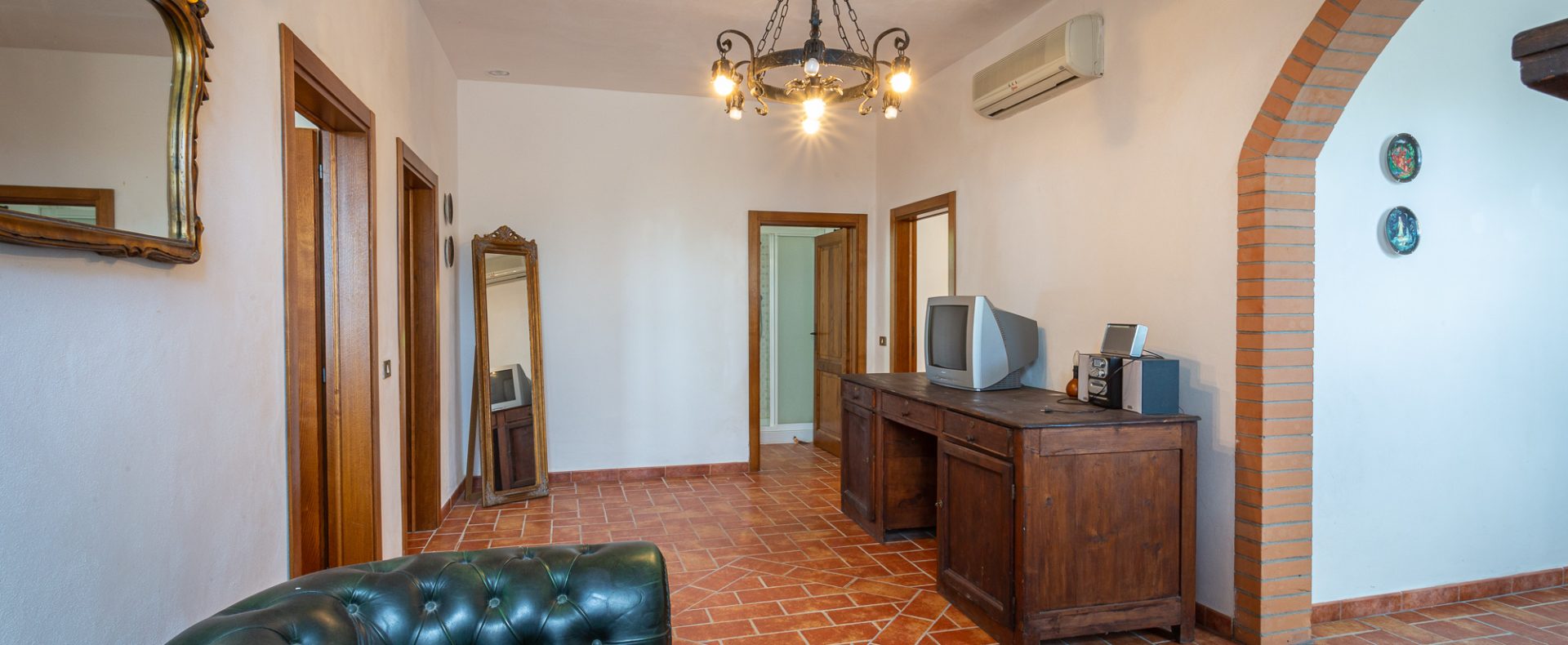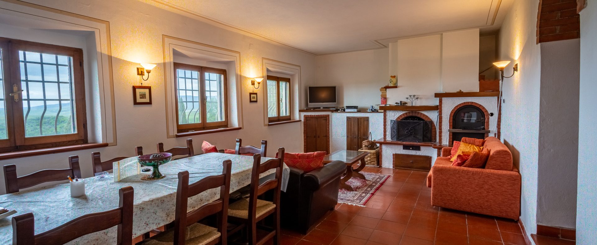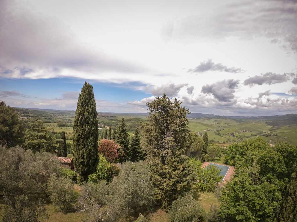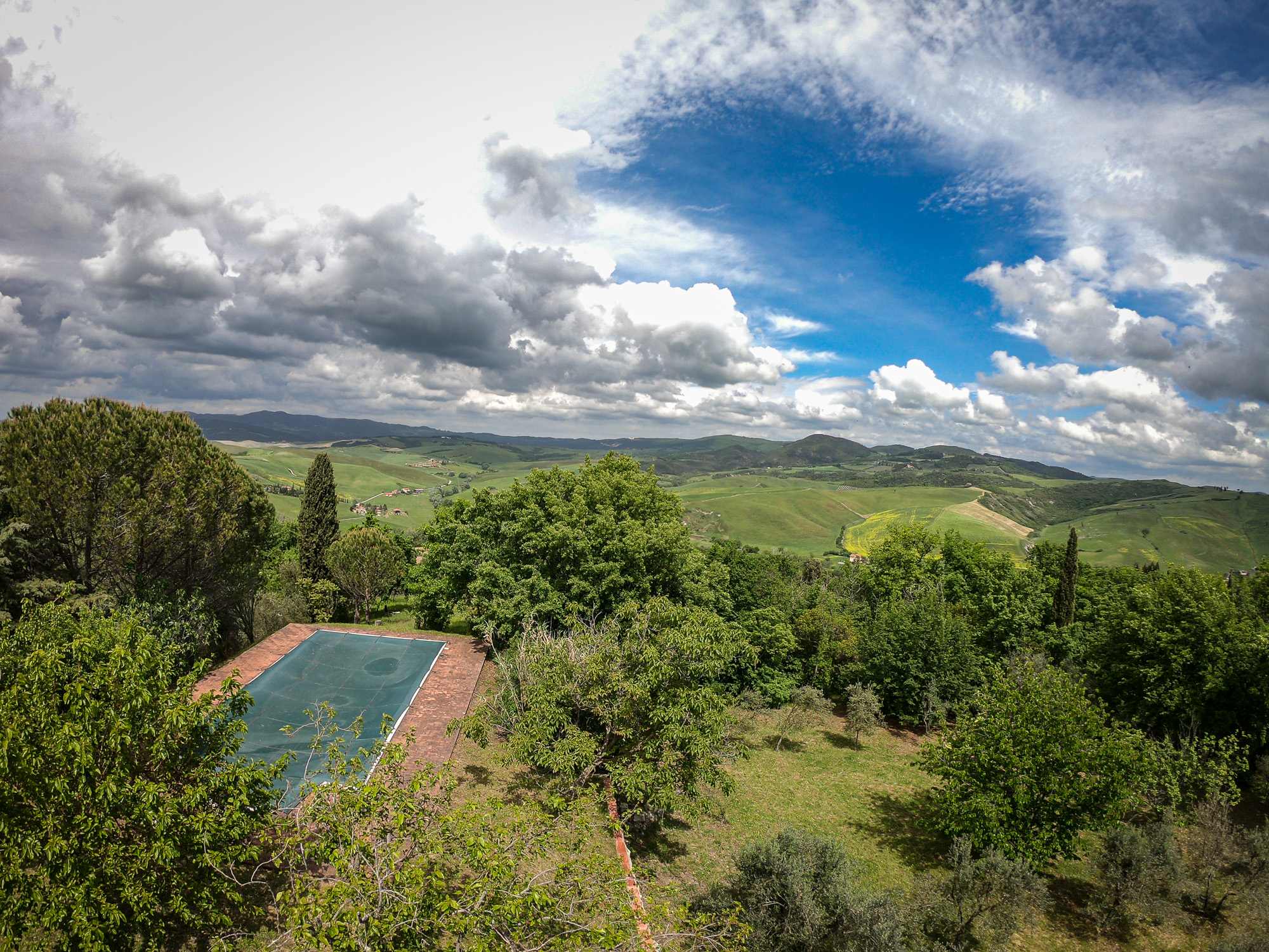I det første landskapet i Volterra, kun 4 km fra tjenestene og butikkene i den etruskiske byen, selges en to-etasjes villa med 14000 kvm tomt og svømmebasseng.