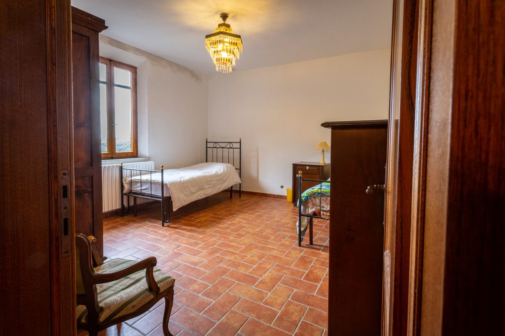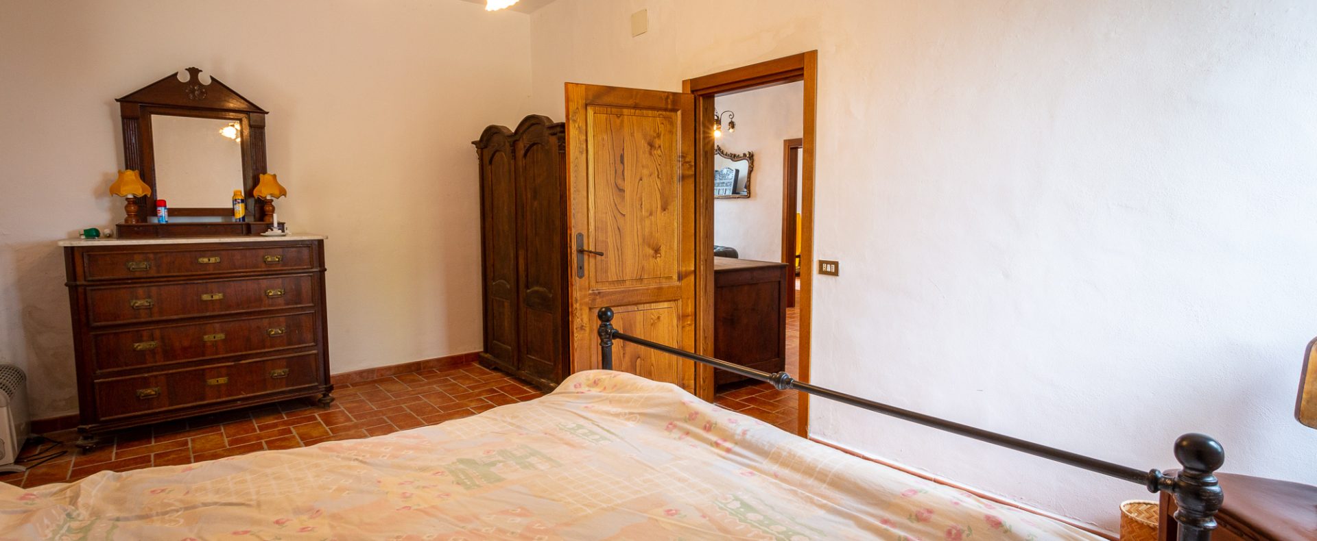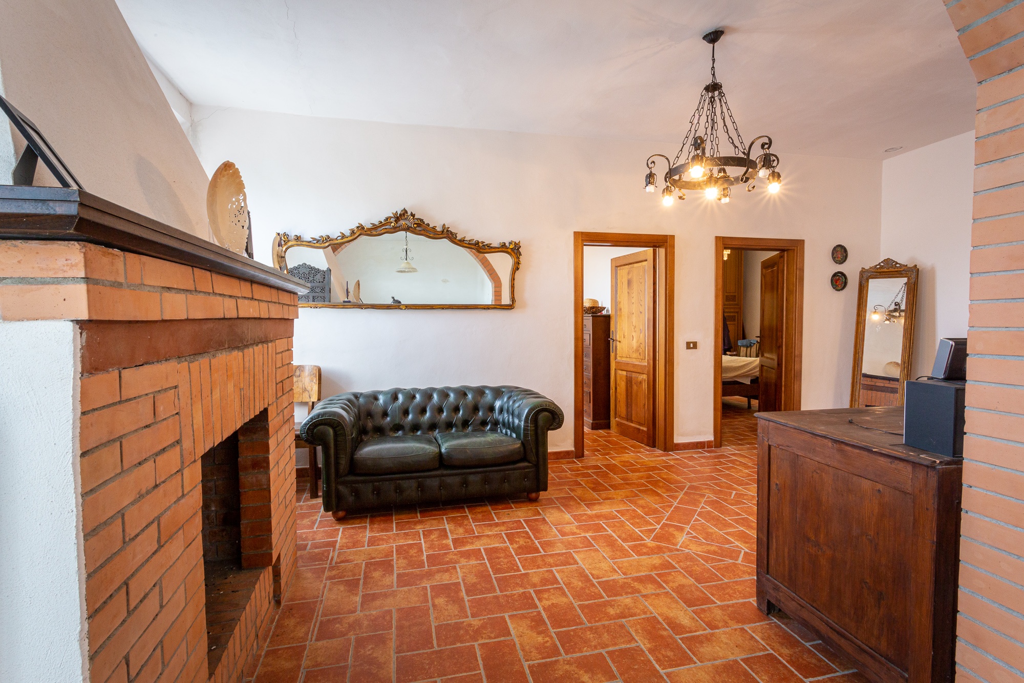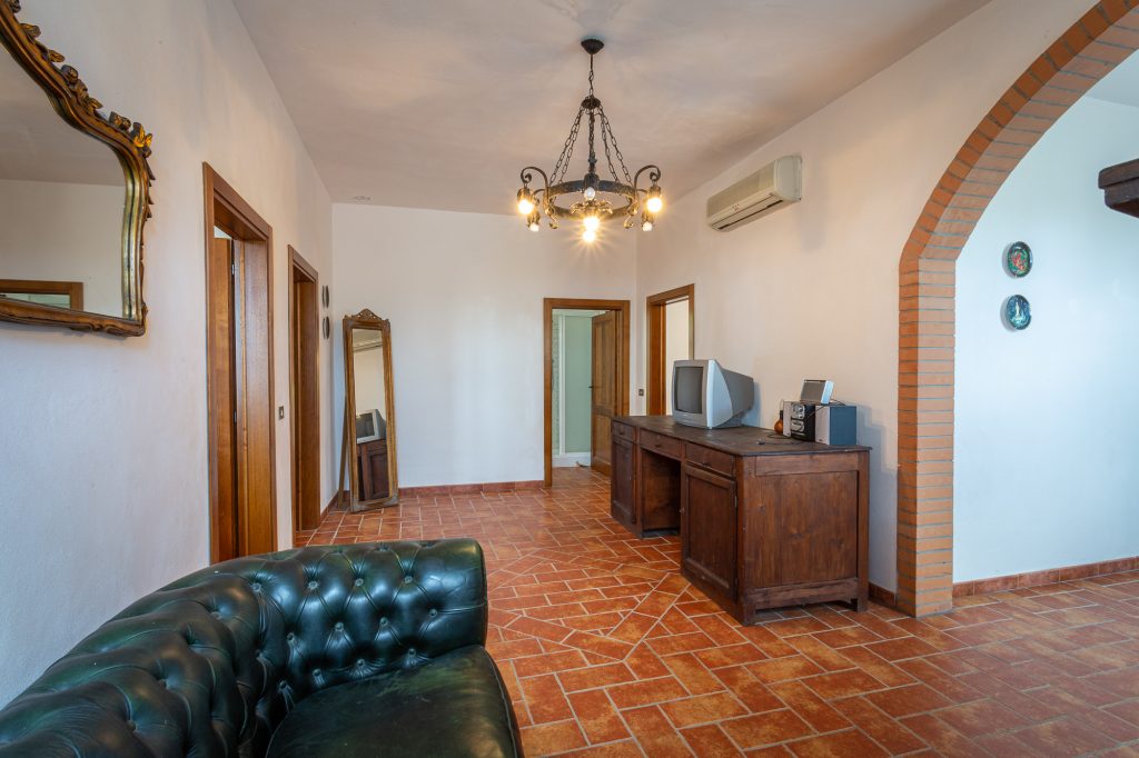 Huset er på 145 kvm, det er lett tilgjengelig gjennom et veldig kort stykke ikke asfaltert vei i gode forhold og det består av: inngang gjennom en 8 kvm loggia på bakkeplan, gang, kjøkkenkrok, stor stue med vedovn og bad. Alltid på bakkeplan, med egen inngang er det fyrrom. Innvendig trapp fører til første etasje som består av gang med peis, 3 soverom og bad. Badene ble renovert i 2005 og huset er i god stand, det må bare tilpasses. Alle systemer er tilkoblet og fungerer med vannledning og LPG-gasstank. Salget inkluderer en 27 kvm to-etasjes låve som skal totalrenoveres og brukes i dag som lager, 14000 kvm tomt med oliven- og frukttrær og et svømmebasseng på 8 x 5 meter.