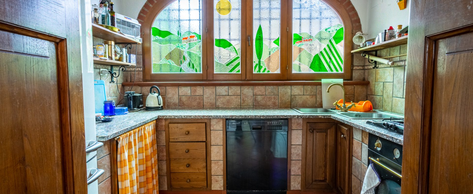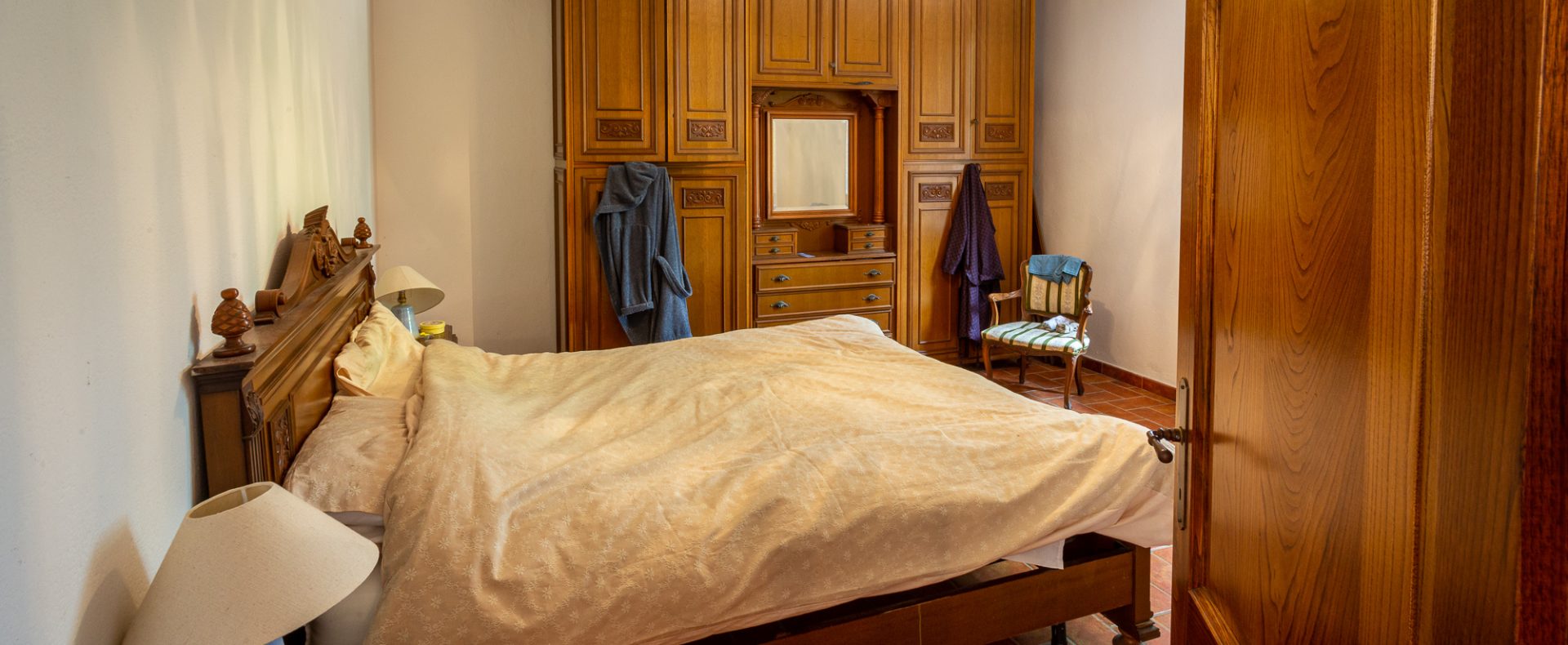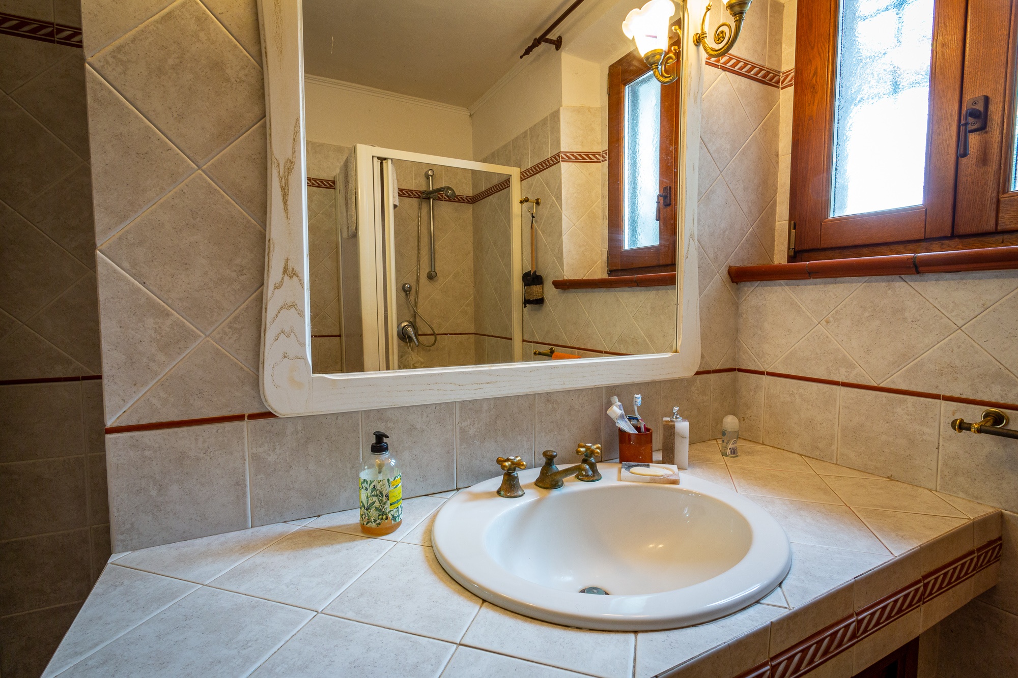 Huset er på 145 kvm, det er lett tilgjengelig gjennom et veldig kort stykke ikke asfaltert vei i gode forhold og det består av: inngang gjennom en 8 kvm loggia på bakkeplan, gang, kjøkkenkrok, stor stue med vedovn og bad. Alltid på bakkeplan, med egen inngang er det fyrrom. Innvendig trapp fører til første etasje som består av gang med peis, 3 soverom og bad. Badene ble renovert i 2005 og huset er i god stand, det må bare tilpasses. Alle systemer er tilkoblet og fungerer med vannledning og LPG-gasstank. Salget inkluderer en 27 kvm to-etasjes låve som skal totalrenoveres og brukes i dag som lager, 14000 kvm tomt med oliven- og frukttrær og et svømmebasseng på 8 x 5 meter.