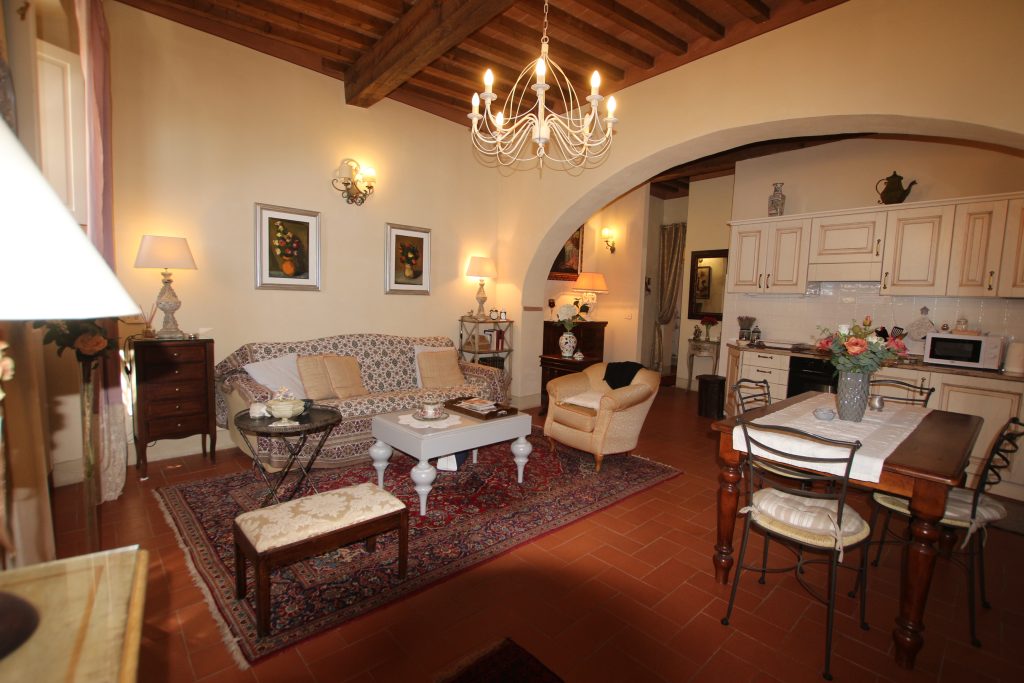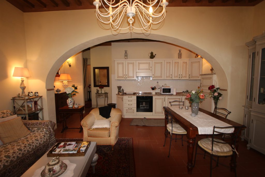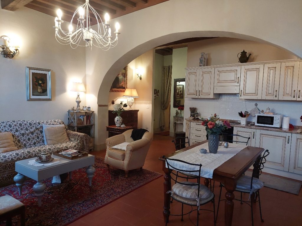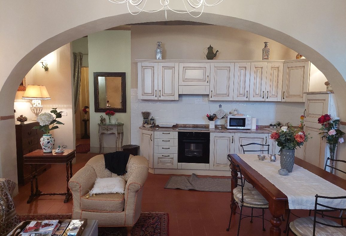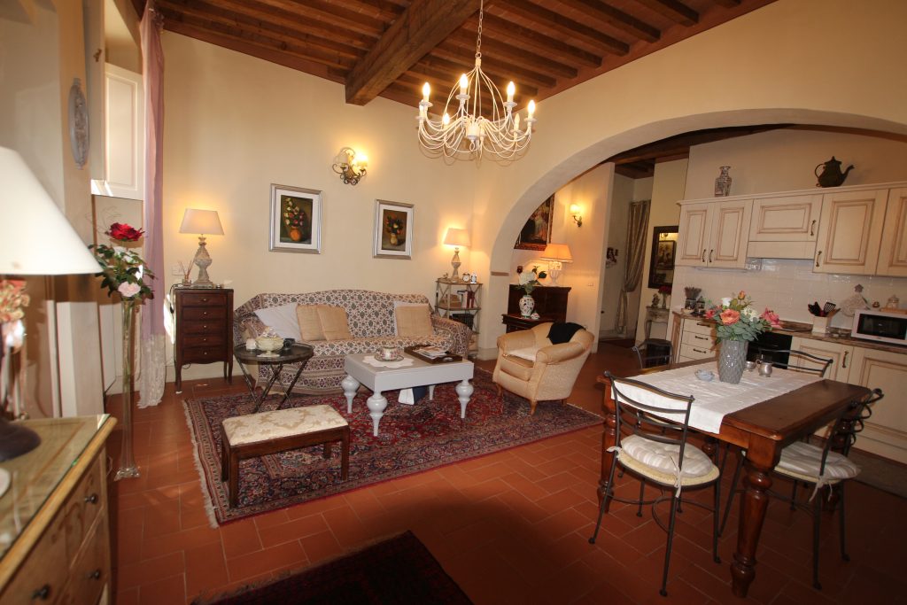 I Terricciola kommune, i sentrum av Soiana, en nydelig landsby blant de bølgende toskanske åsene er en søt og smakfull innredet leilighet til salgs. Den er bare en halvtimes kjøretur fra Pisa flyplass, 40 minutter fra Tirrenia-kysten, 15 minutter fra nærmeste togstasjon og motorvei. Den er på bakkeplan og ligger i et ombygd historisk kloster med felles svømmebasseng og hage. Sameiet består av: 12 enheter totalt og det er en forvalter av sameie.
