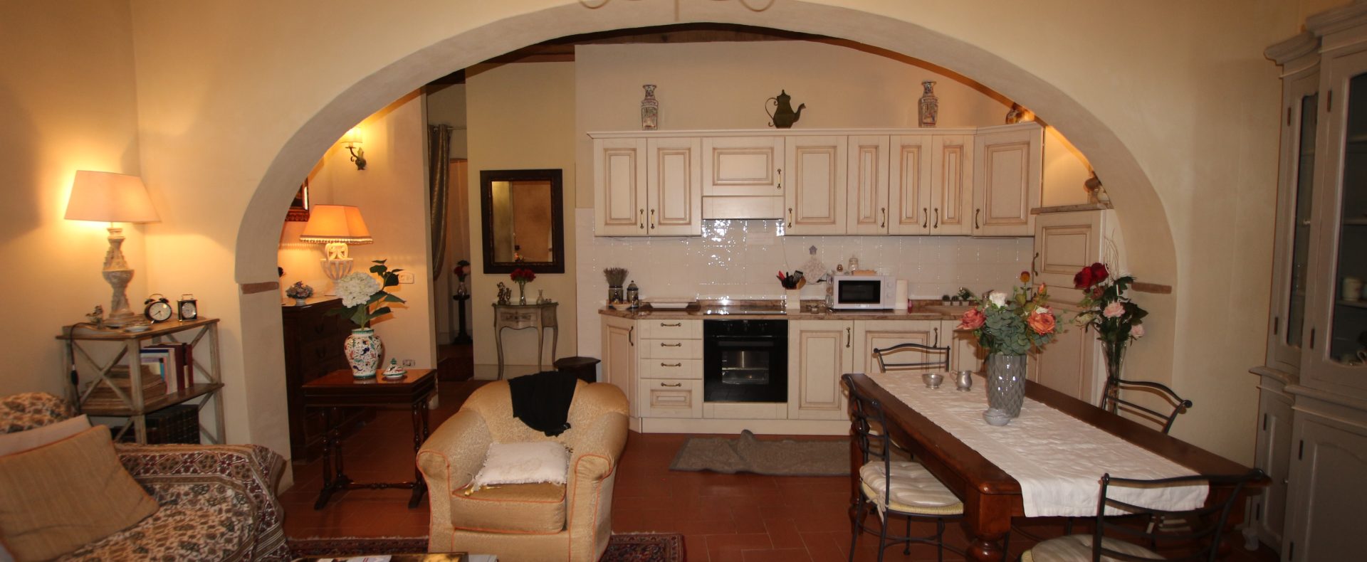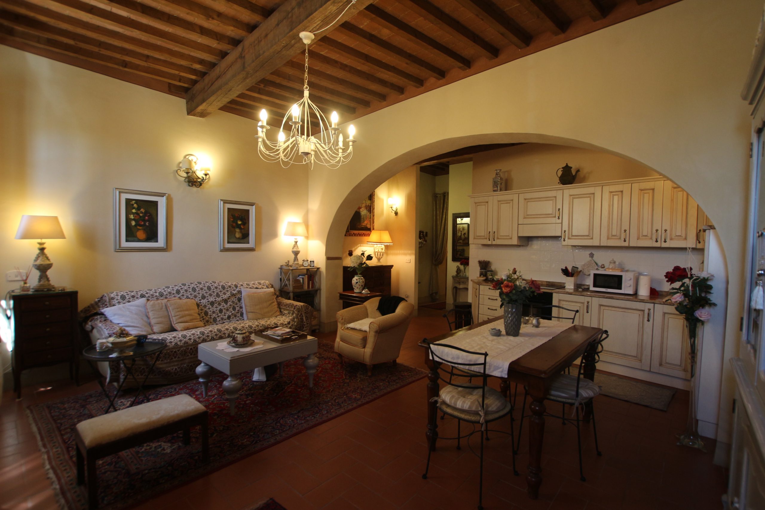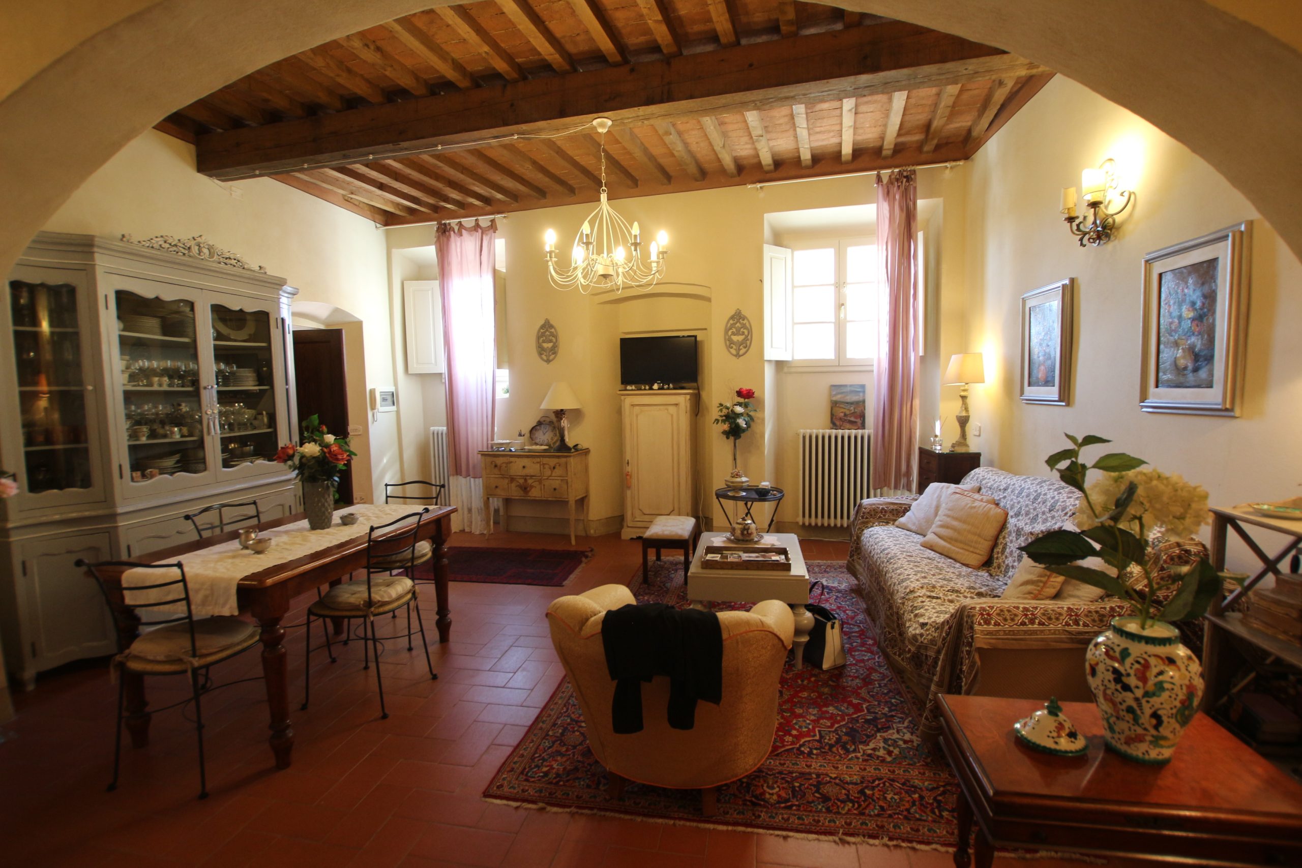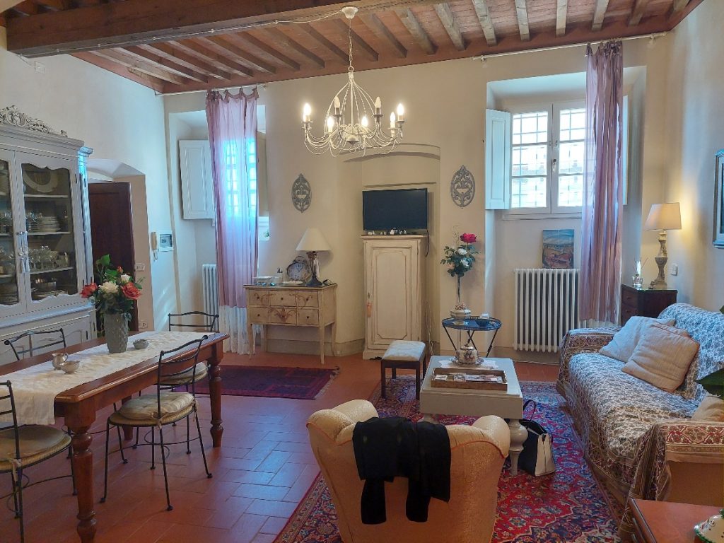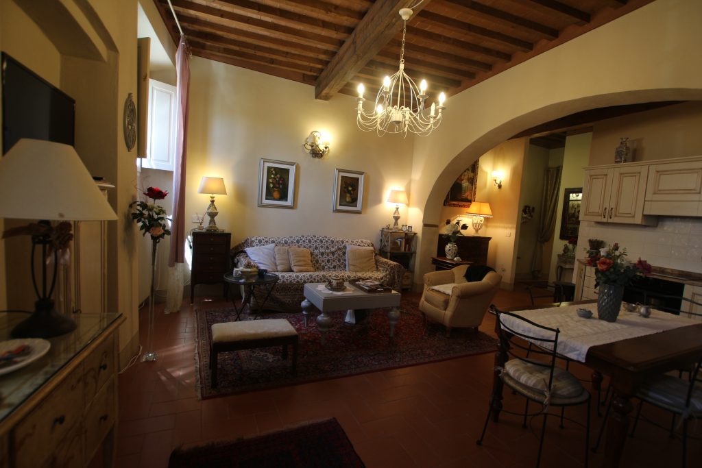 I Terricciola kommune, i sentrum av Soiana, en nydelig landsby blant de bølgende toskanske åsene er en søt og smakfull innredet leilighet til salgs. Den er bare en halvtimes kjøretur fra Pisa flyplass, 40 minutter fra Tirrenia-kysten, 15 minutter fra nærmeste togstasjon og motorvei. Den er på bakkeplan og ligger i et ombygd historisk kloster med felles svømmebasseng og hage. Sameiet består av: 12 enheter totalt og det er en forvalter av sameie.