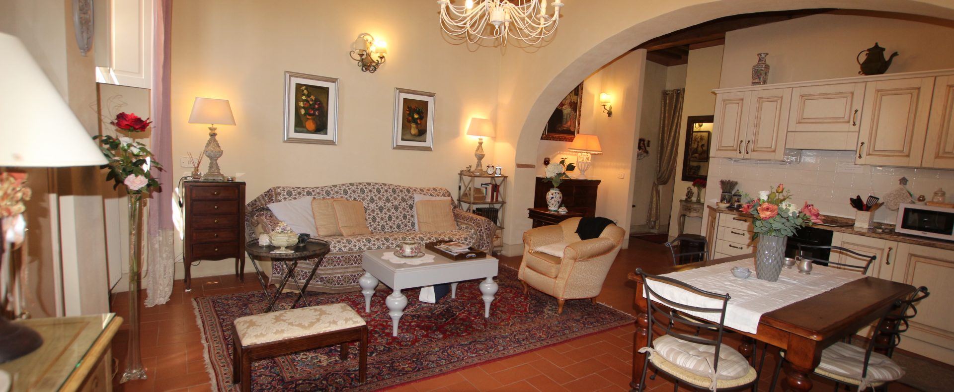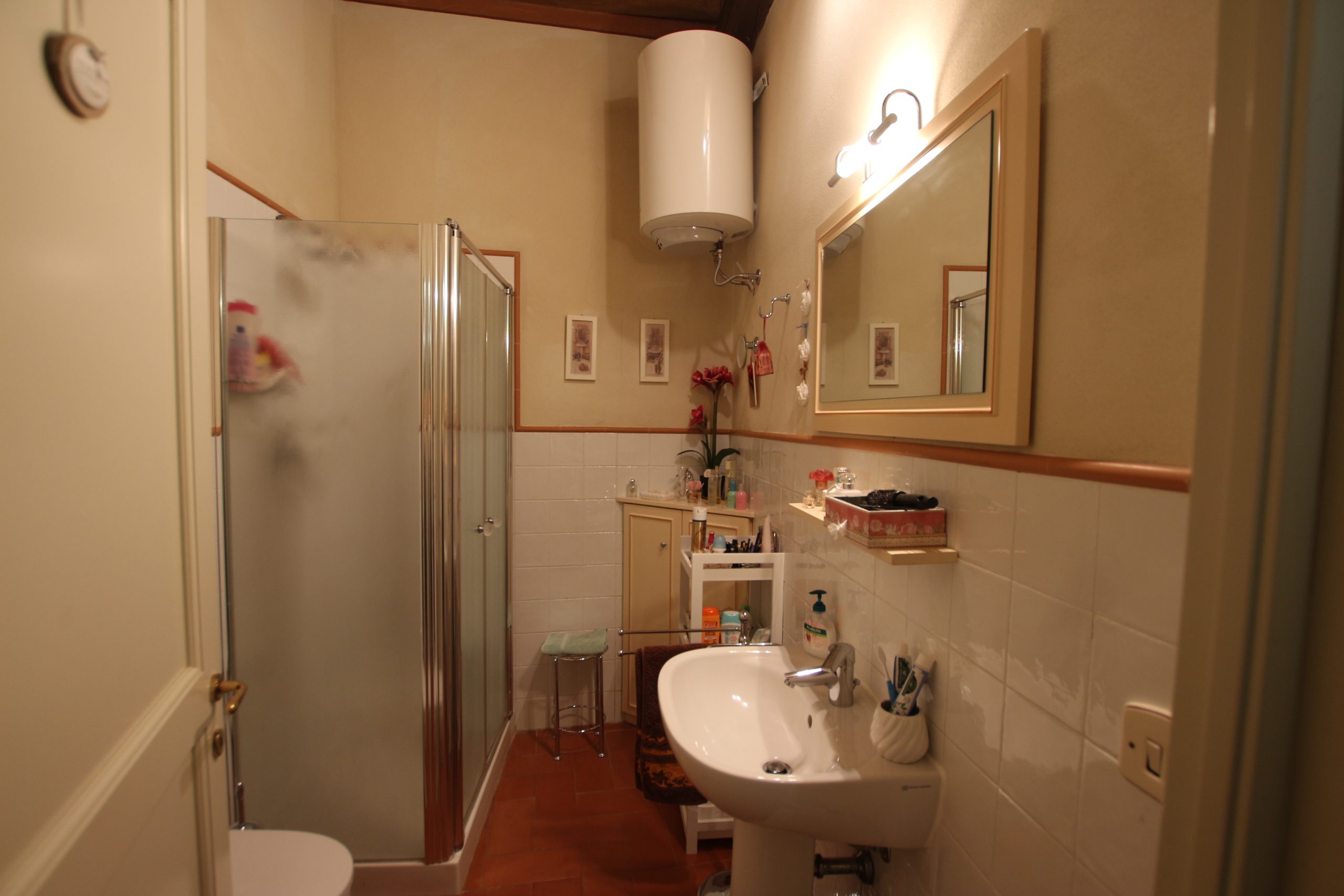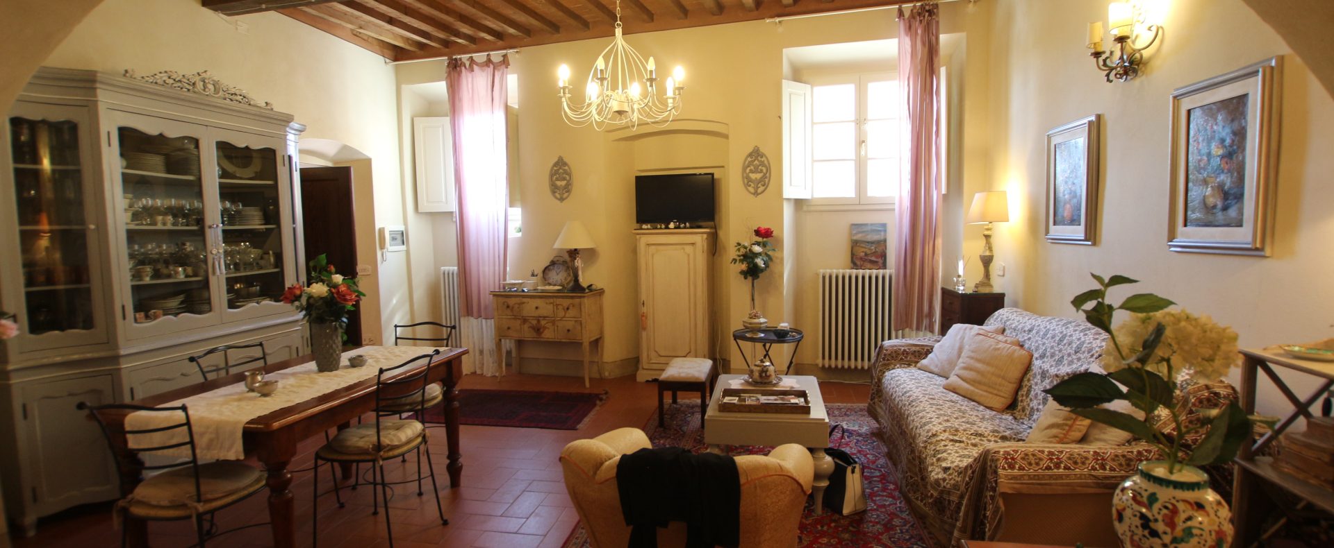 I Terricciola kommune, i sentrum av Soiana, en nydelig landsby blant de bølgende toskanske åsene er en søt og smakfull innredet leilighet til salgs. Den er bare en halvtimes kjøretur fra Pisa flyplass, 40 minutter fra Tirrenia-kysten, 15 minutter fra nærmeste togstasjon og motorvei. Den er på bakkeplan og ligger i et ombygd historisk kloster med felles svømmebasseng og hage. Sameiet består av: 12 enheter totalt og det er en forvalter av sameie.