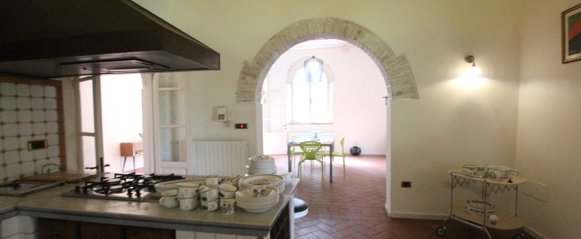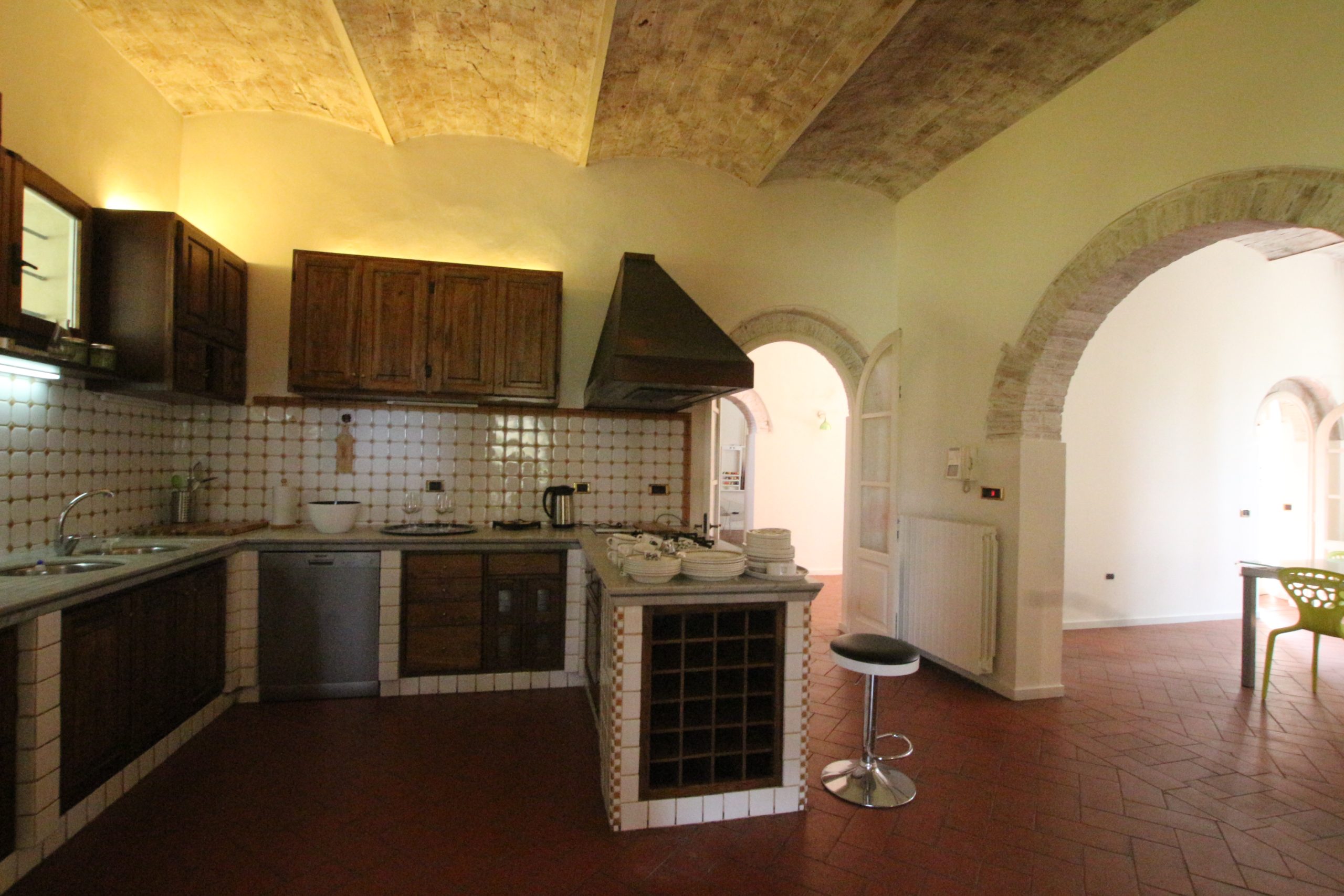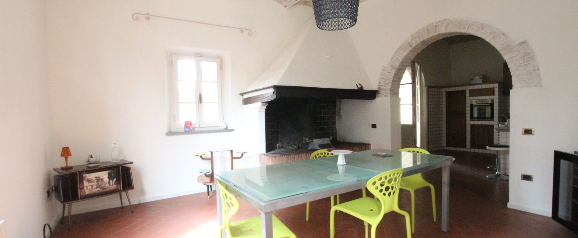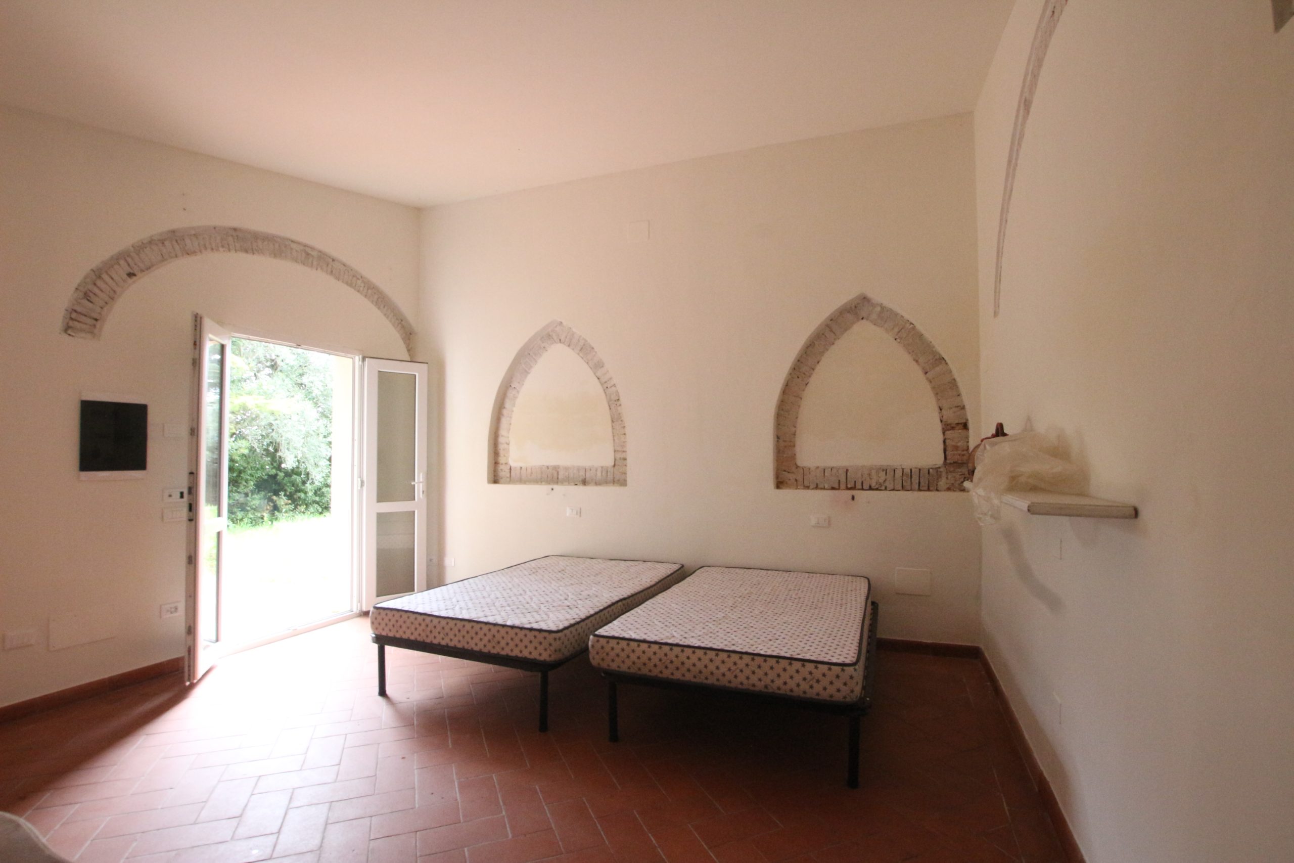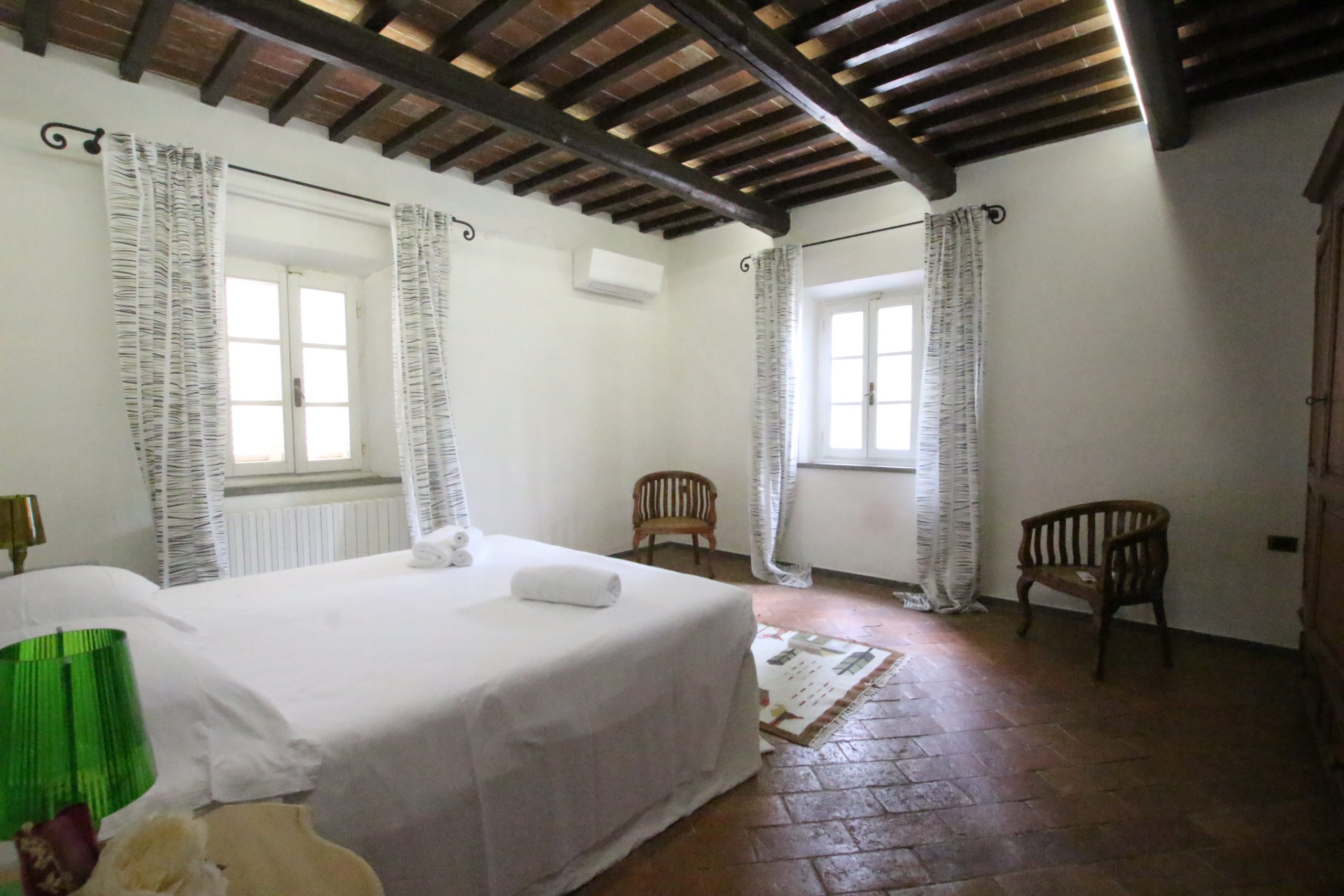 Villaen, som har blitt fullstendig og smakfullt renovert, er på 500 kvm på to etasjer og har et pittoresk tårn. Huset består av: stor gang, bred stue med peis, fullt utstyrt kjøkken med utgang til veranda, lesesal, bad, biljardrom og bod på bakkeplan. Innvendig trapp fører til første etasje som består av: et hovedsoverom med eget bad, 4 soverom og et bad til og tilgang til det sjarmerende panoramatårnet. Rommene er brede og lyse, badene er i marmor og alle renoveringer er utført med ekstremt høy kvalitet. Villaen ligger i en panoramisk beliggenhet, omgitt av 15 hektar tomt og nøyaktig: 5 hektar olivenlund, 5 hektar dyrkbar jord og vingård. Eiendommen kompletteres av et fantastisk svømmebasseng i en dominerende posisjon og en tennisbane som krever litt vedlikehold.