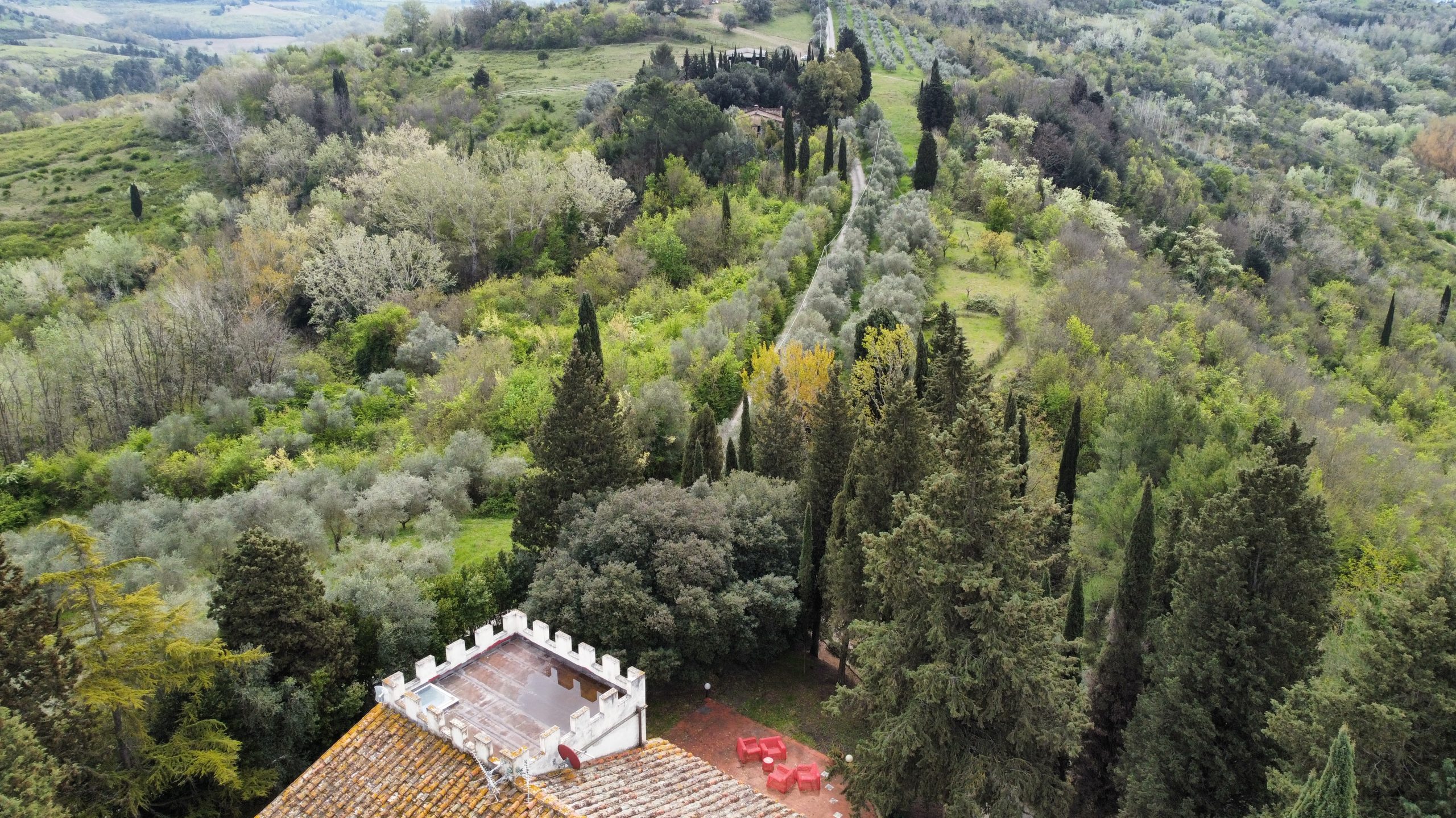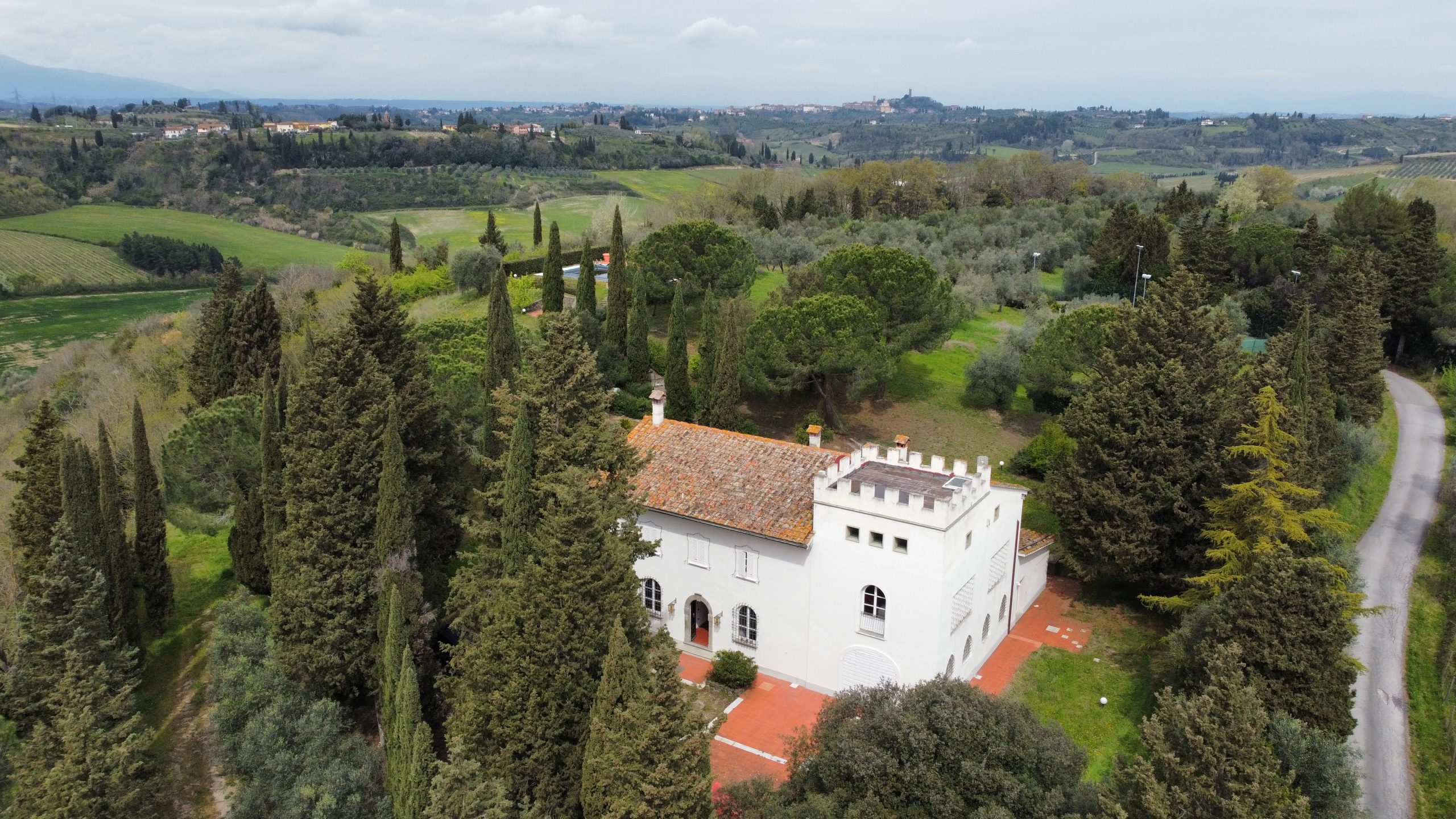 Prestisje eiendom som ligger blant åsene i San Miniato kommune, kun 40 minutter fra Pisa internasjonale lufthavn, 15 minutter fra motorveien, 40 minutter fra Firenze og 1 time fra kysten. Eiendommen ligger på et avsidesliggende sted, de nærmeste tjenestene er 8 km unna, i landsbyen San Miniato (banker, postkontor, supermarkeder, dagligvarer, apotek, barer, restauranter, skoler og så videre) og det er lett tilgjengelig gjennom en asfaltert vei. Eiendommen består av: en nydelig villa som dateres tilbake til 1800-tallet, panoramabasseng og 15 hektar tomt.