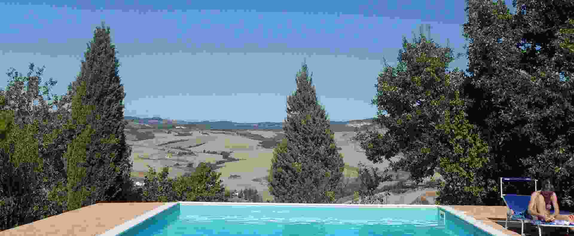 In the first landscape of Volterra, only 4 km from the services and shops of the Etruscan town, a two-storey villa with 14000 sqm of land and swimming pool is for sale. Volterra is a picturesque village in the heart of Tuscany. It has a strategic position and in an hour drive it is possible to reach all the most attractive places of the region such as Siena, the beaches, Pisa International Airport; Florence and Lucca are only an hour and a half away by car, and in half an hour it is possible to reach the picturesque and popular golf courses of San Gimignano and Castelfalfi.