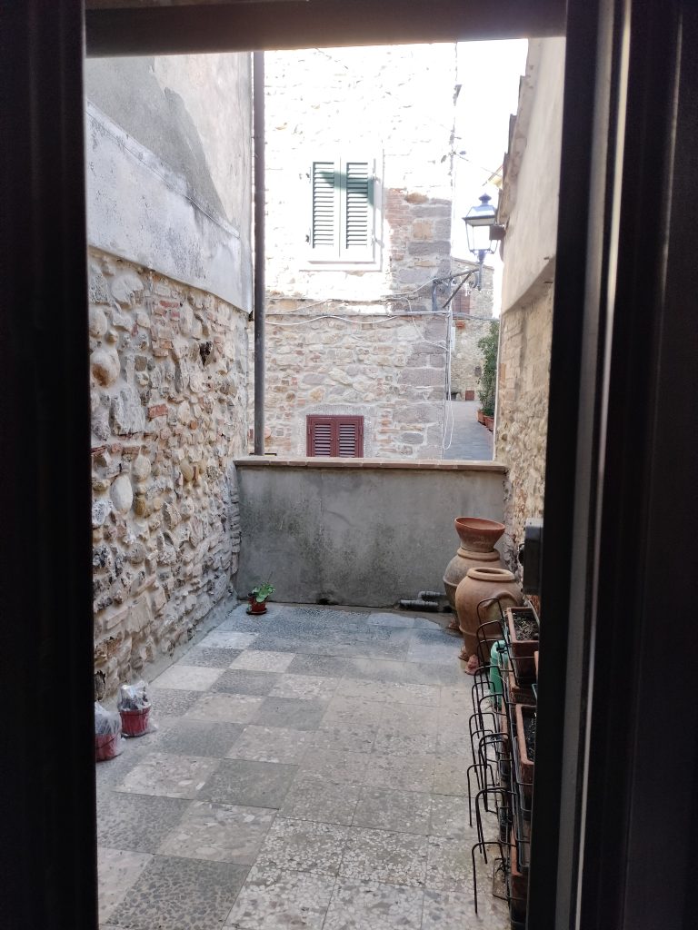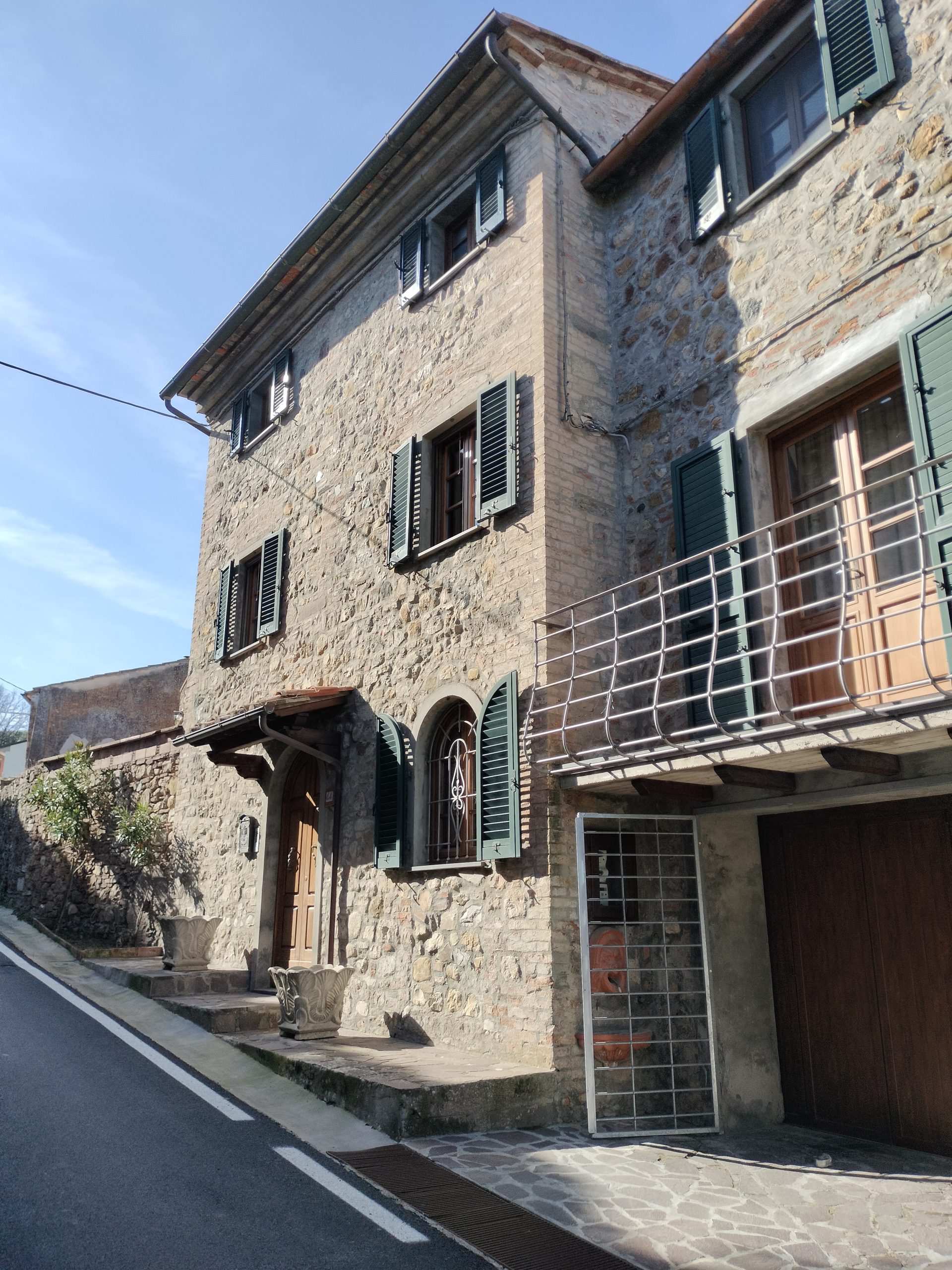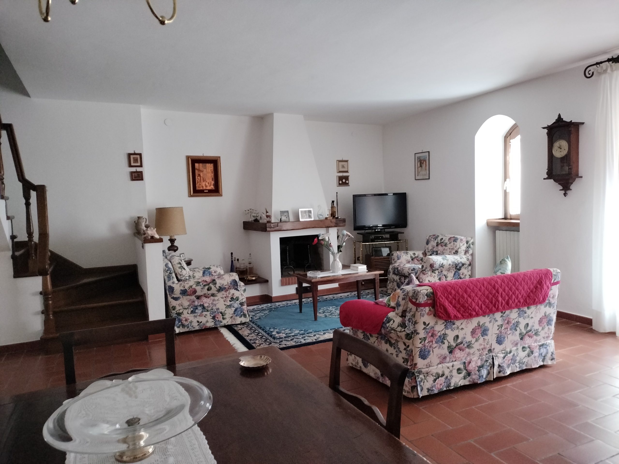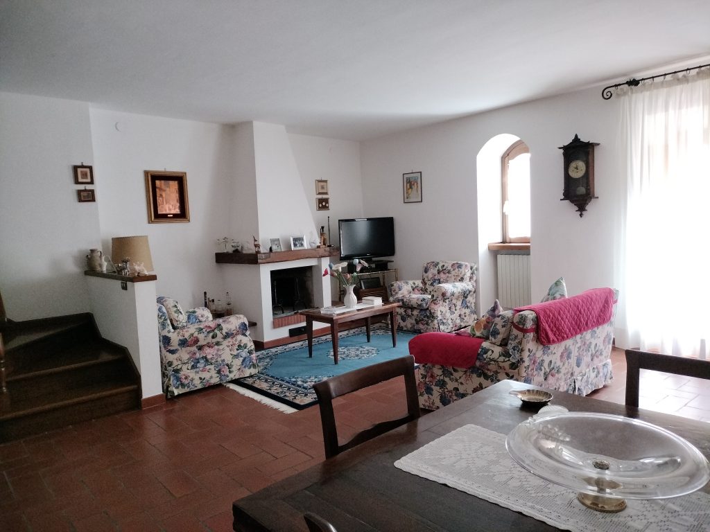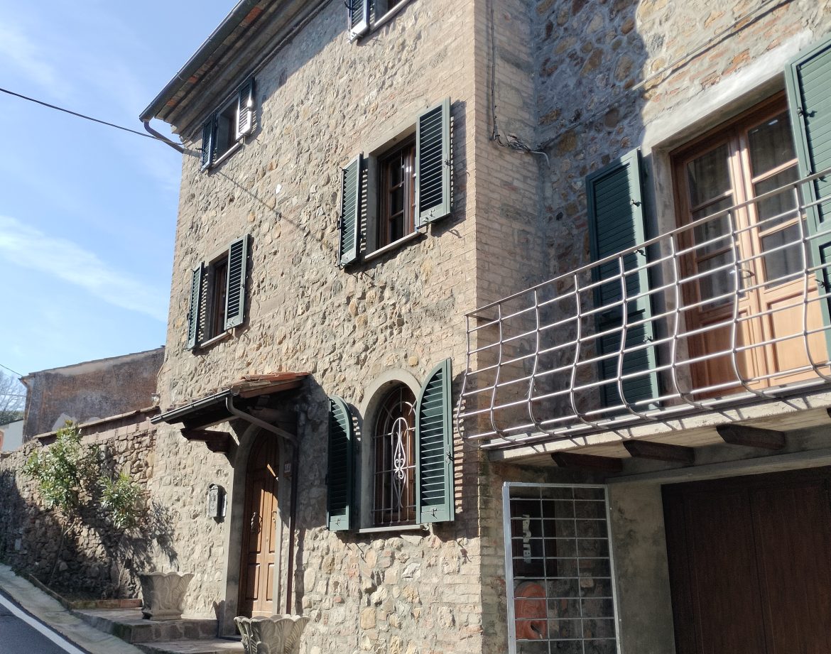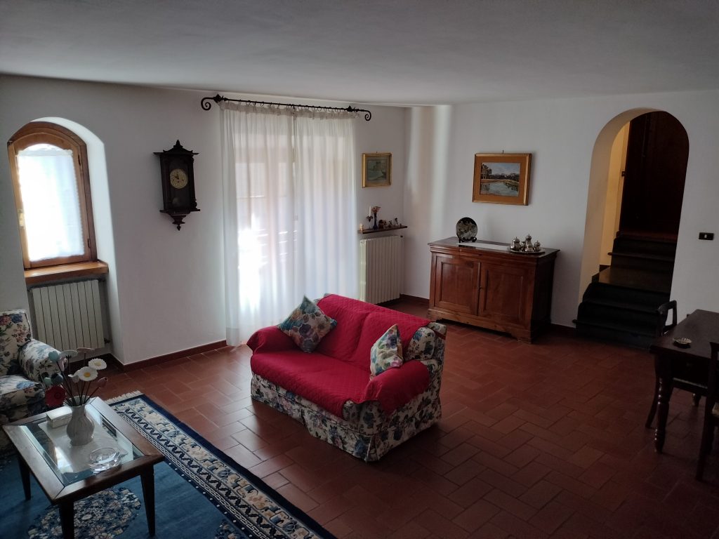 Ypperlig renovert 300 kvm treetasjes rekkehus til salgs beliggende i den pittoreske middelalderlandsbyen Orciatico, i Lajatico kommune. Denne pittoreske lille byen i Toscana er godt kjent av mange som hjemmet til Andrea Bocelli, hvor sangeren hvert år har sine lyriske konserter på det omtalte Stillhetens Teater, et åpent naturlig amfiteater hvor det er mulig å beundre en 360° fantastisk panoramautsikt rundt de omkringliggende åsene og over Volterra by. Lajatico tilbyr alle nødvendige tjenester som bank, postkontor, apotek, dagligvarer, restauranter, barer, lege og andre butikker. Landsbyen ligger kun 45 minutters kjøring fra Pisa internasjonale flyplass samt fra de nærmeste strendene; 20 minutters kjøring fra motorveien og jernbanestasjonen, 10 minutter fra større supermarkeder, 25 minutter fra den etruskiske byen Volterra, 40 minutter fra pittoreske San Gimignano og på halvannen time er det mulig å nå de mest attraktive byene i Toscana som Firenze, Siena og Lucca. Landsbyen Orciatico er en ekte juvel, og den tilbyr en bar og en liten dagligvare. Rekkehuset er tilgjengelig gjennom en gang med god størrelse med synlige steiner på veggene og trapper som fører til første etasje som består av: på venstre side et kjøkken/spisestue med pelletsovn installert inne i en peis, til høyre side er det en utrolig stor stue med vedfyrt peis og en balkong som vender mot landsbygaten og et første soverom med terrasse.