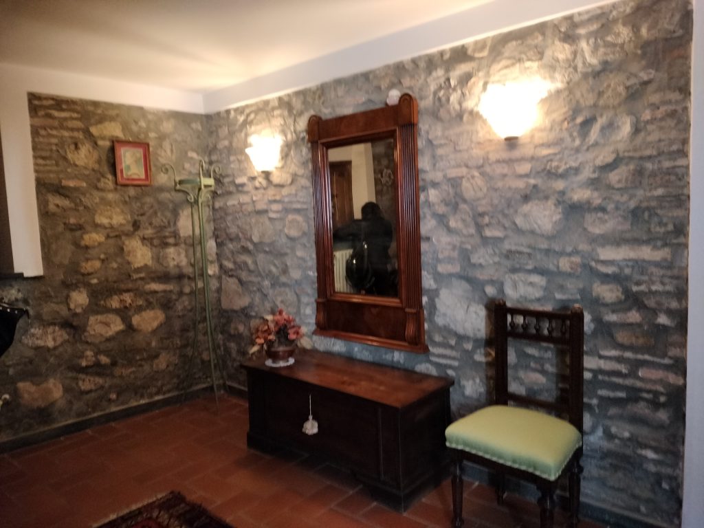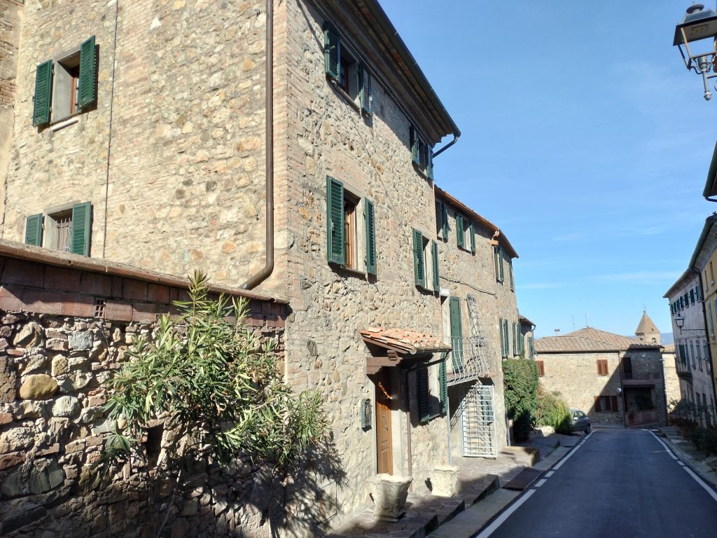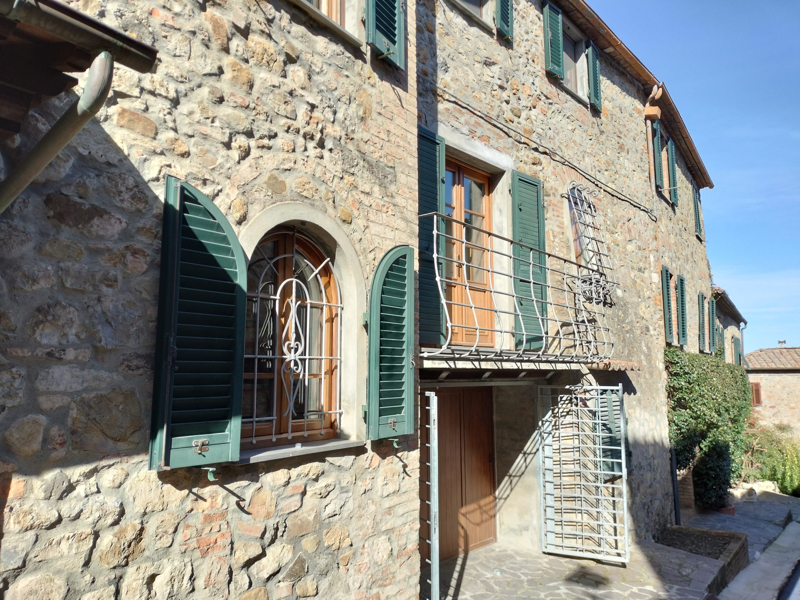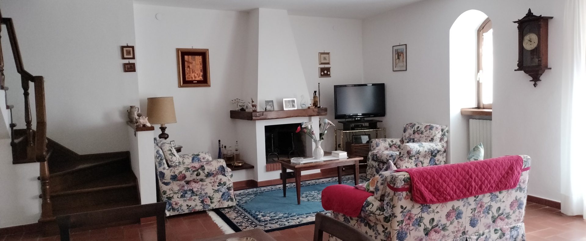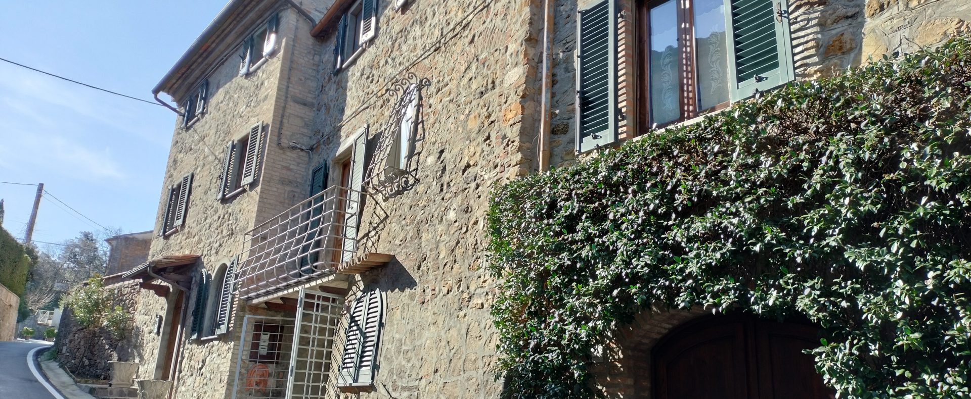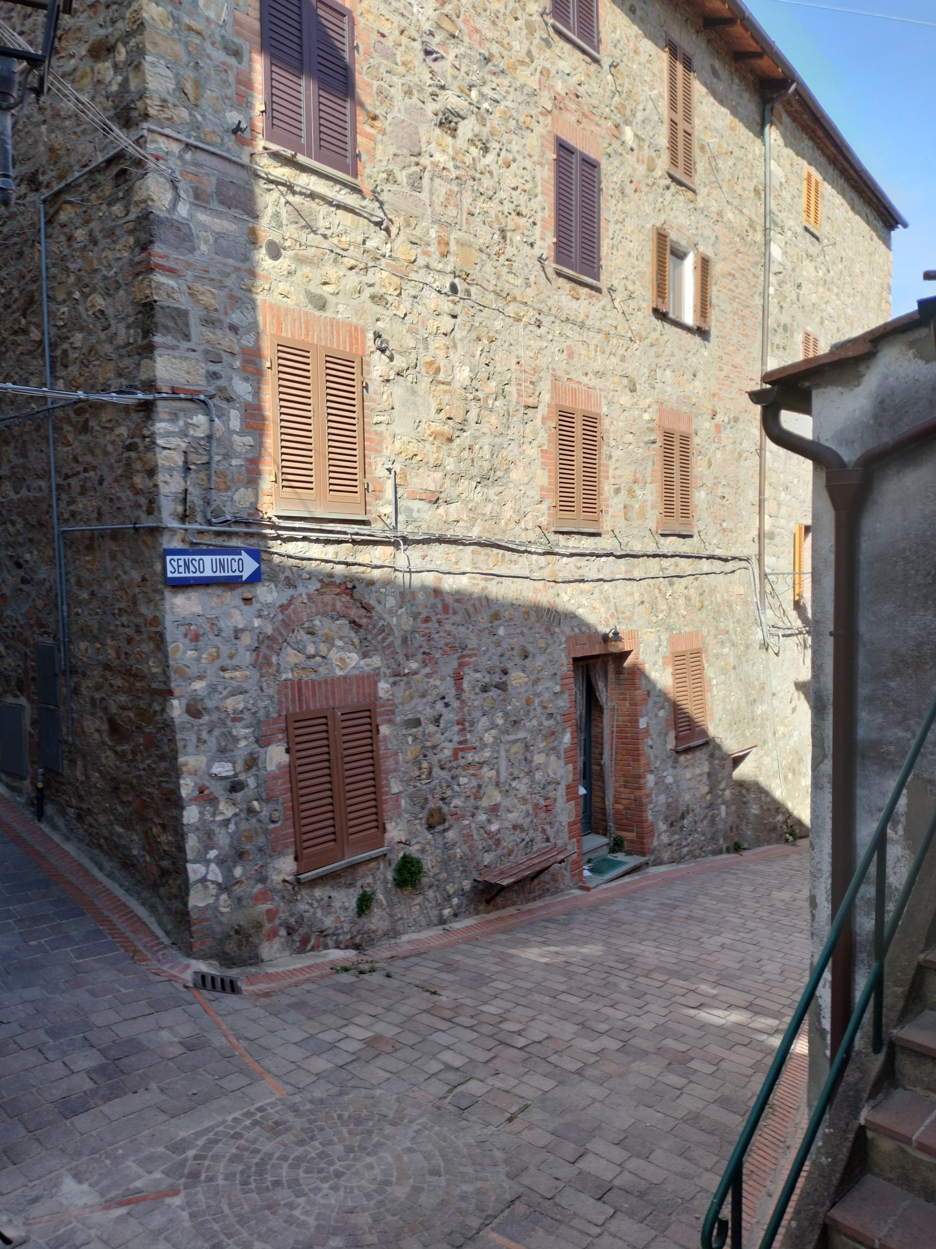 Ypperlig renovert 300 kvm treetasjes rekkehus til salgs beliggende i den pittoreske middelalderlandsbyen Orciatico, i Lajatico kommune. Denne pittoreske lille byen i Toscana er godt kjent av mange som hjemmet til Andrea Bocelli, hvor sangeren hvert år har sine lyriske konserter på det omtalte Stillhetens Teater, et åpent naturlig amfiteater hvor det er mulig å beundre en 360° fantastisk panoramautsikt rundt de omkringliggende åsene og over Volterra by. Lajatico tilbyr alle nødvendige tjenester som bank, postkontor, apotek, dagligvarer, restauranter, barer, lege og andre butikker. Landsbyen ligger kun 45 minutters kjøring fra Pisa internasjonale flyplass samt fra de nærmeste strendene; 20 minutters kjøring fra motorveien og jernbanestasjonen, 10 minutter fra større supermarkeder, 25 minutter fra den etruskiske byen Volterra, 40 minutter fra pittoreske San Gimignano og på halvannen time er det mulig å nå de mest attraktive byene i Toscana som Firenze, Siena og Lucca. Landsbyen Orciatico er en ekte juvel, og den tilbyr en bar og en liten dagligvare. Rekkehuset er tilgjengelig gjennom en gang med god størrelse med synlige steiner på veggene og trapper som fører til første etasje som består av: på venstre side et kjøkken/spisestue med pelletsovn installert inne i en peis, til høyre side er det en utrolig stor stue med vedfyrt peis og en balkong som vender mot landsbygaten og et første soverom med terrasse.