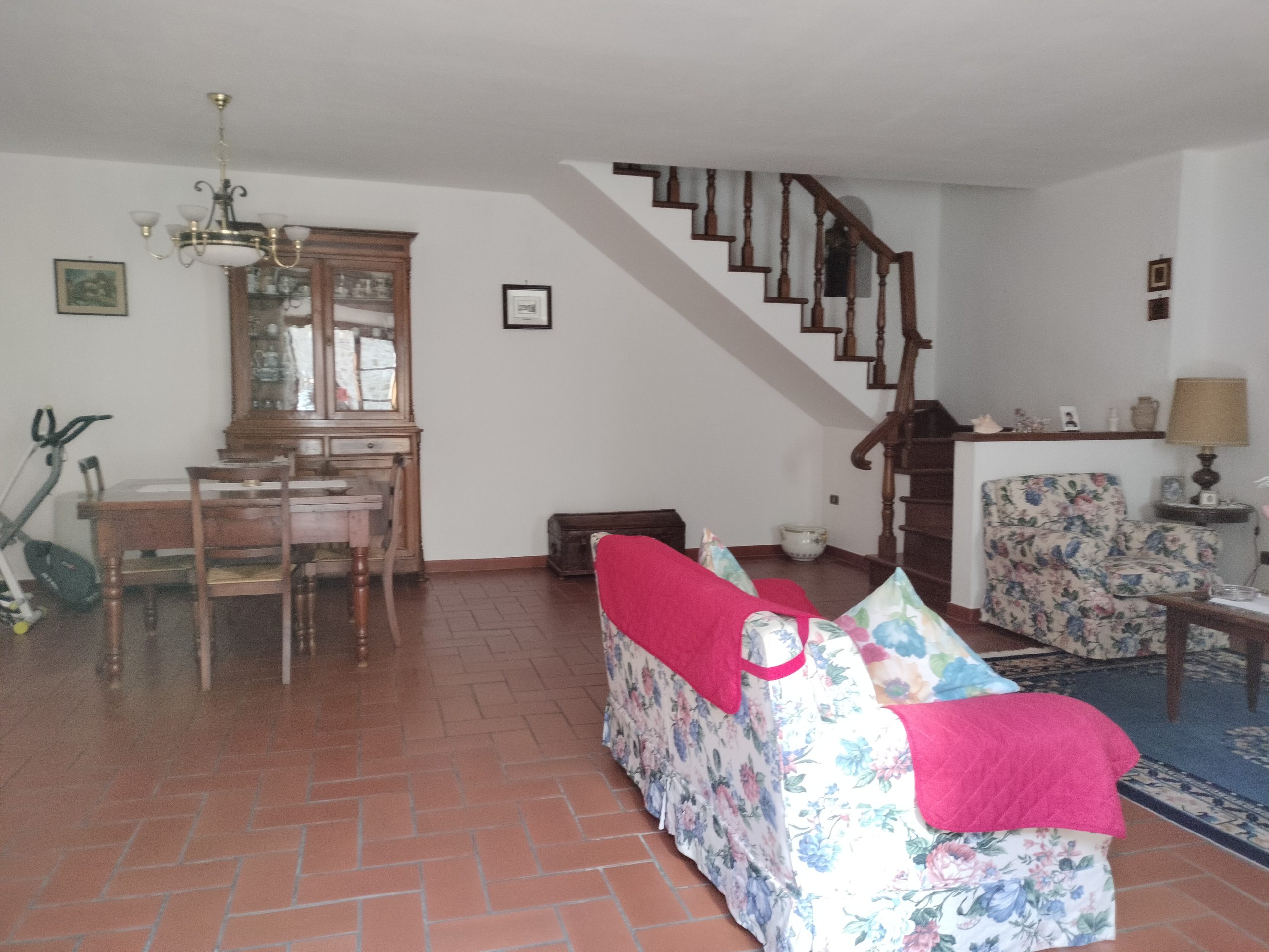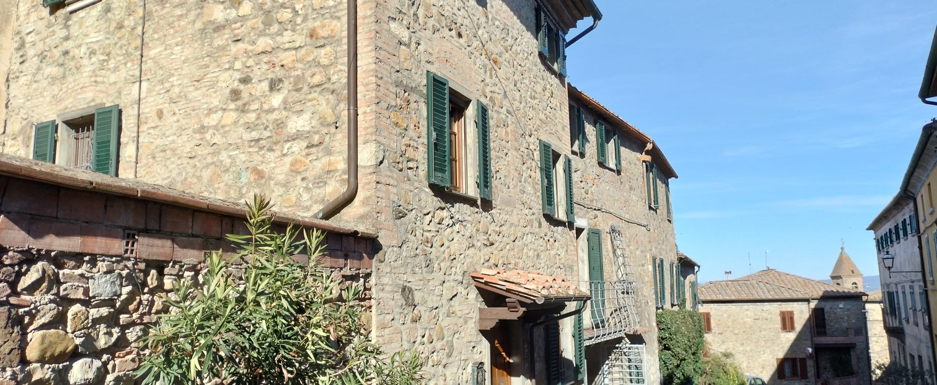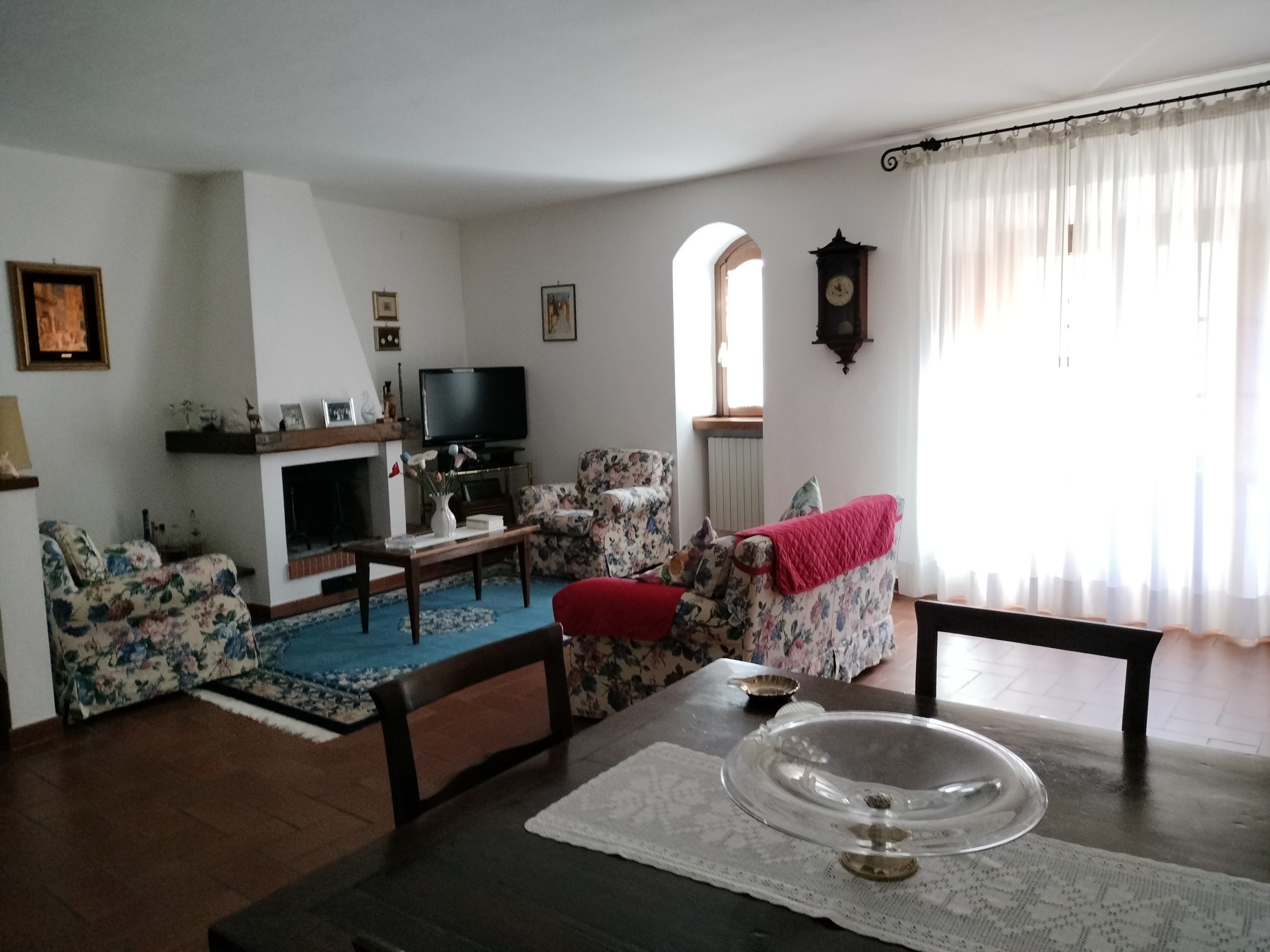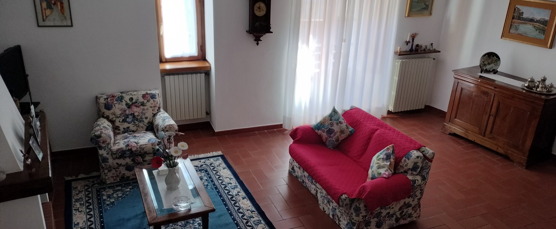 Ypperlig renovert 300 kvm treetasjes rekkehus til salgs beliggende i den pittoreske middelalderlandsbyen Orciatico, i Lajatico kommune. Denne pittoreske lille byen i Toscana er godt kjent av mange som hjemmet til Andrea Bocelli, hvor sangeren hvert år har sine lyriske konserter på det omtalte Stillhetens Teater, et åpent naturlig amfiteater hvor det er mulig å beundre en 360° fantastisk panoramautsikt rundt de omkringliggende åsene og over Volterra by. Lajatico tilbyr alle nødvendige tjenester som bank, postkontor, apotek, dagligvarer, restauranter, barer, lege og andre butikker. Landsbyen ligger kun 45 minutters kjøring fra Pisa internasjonale flyplass samt fra de nærmeste strendene; 20 minutters kjøring fra motorveien og jernbanestasjonen, 10 minutter fra større supermarkeder, 25 minutter fra den etruskiske byen Volterra, 40 minutter fra pittoreske San Gimignano og på halvannen time er det mulig å nå de mest attraktive byene i Toscana som Firenze, Siena og Lucca. Landsbyen Orciatico er en ekte juvel, og den tilbyr en bar og en liten dagligvare. Rekkehuset er tilgjengelig gjennom en gang med god størrelse med synlige steiner på veggene og trapper som fører til første etasje som består av: på venstre side et kjøkken/spisestue med pelletsovn installert inne i en peis, til høyre side er det en utrolig stor stue med vedfyrt peis og en balkong som vender mot landsbygaten og et første soverom med terrasse.