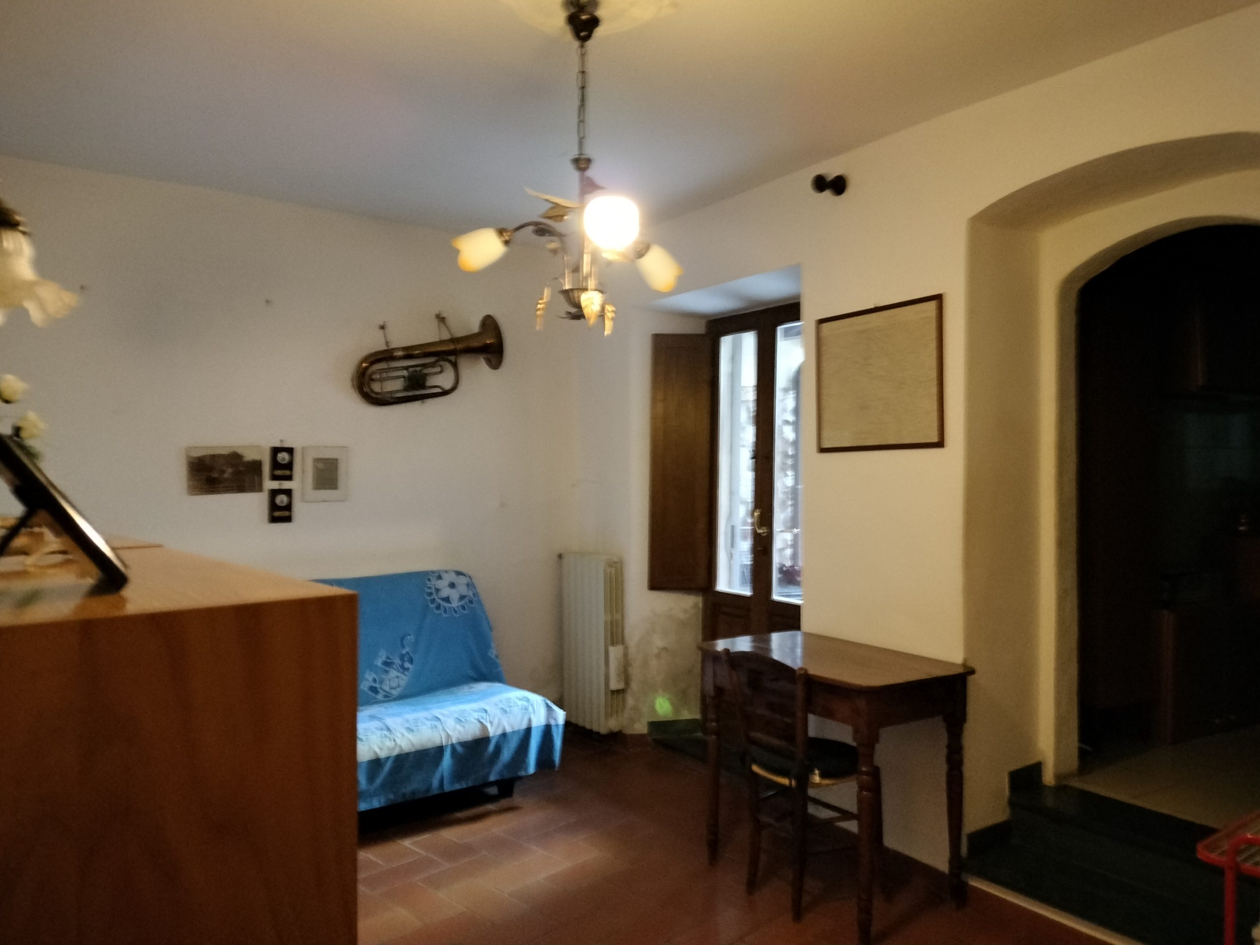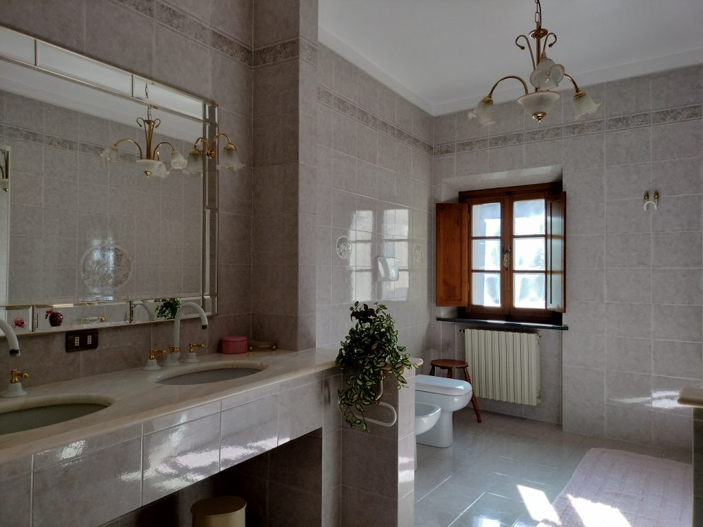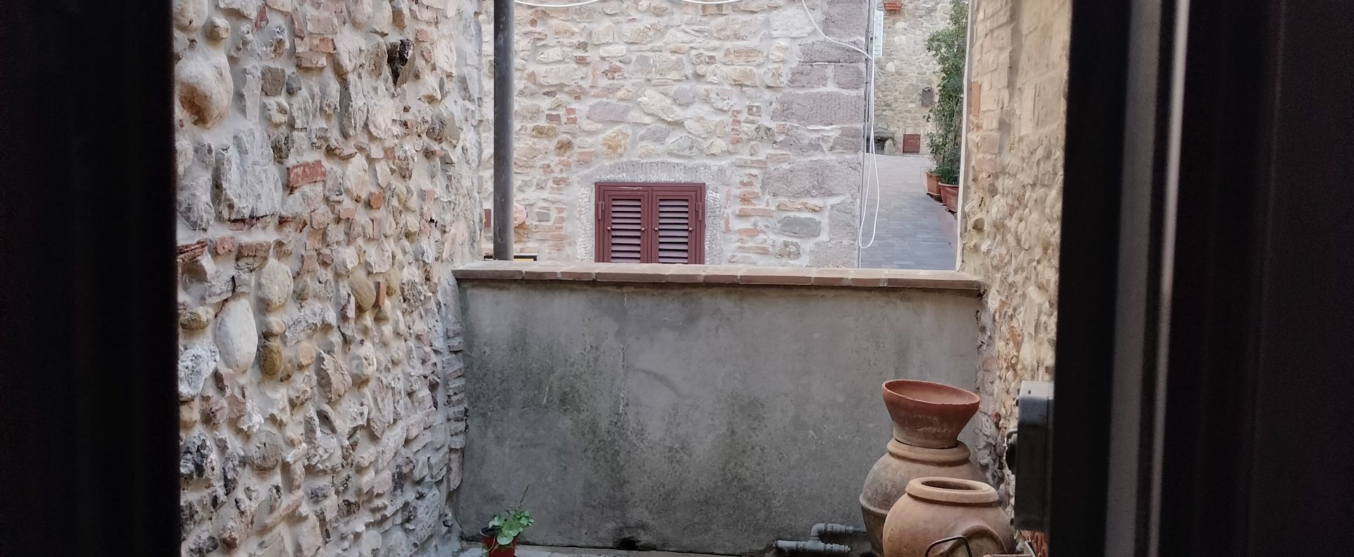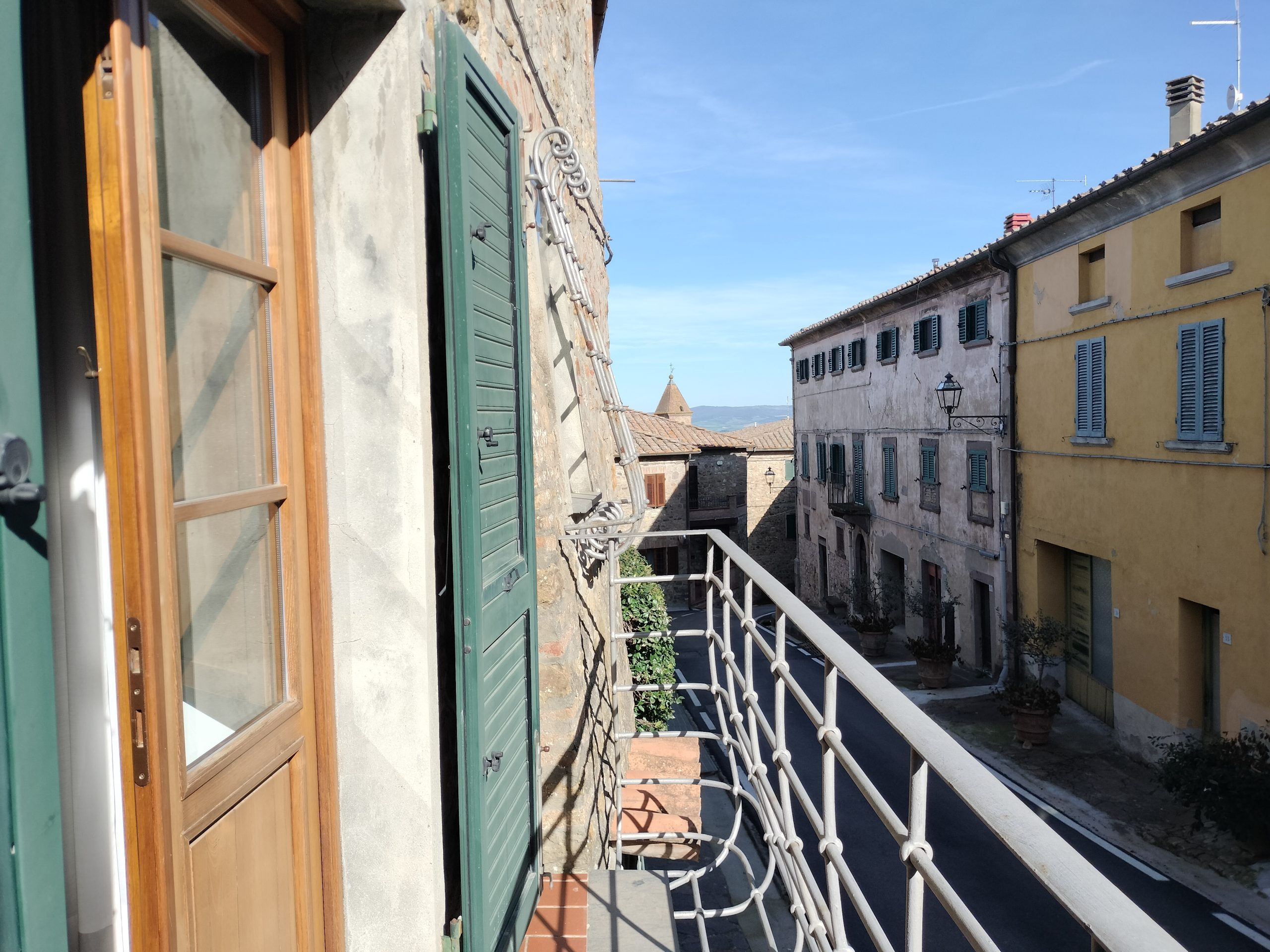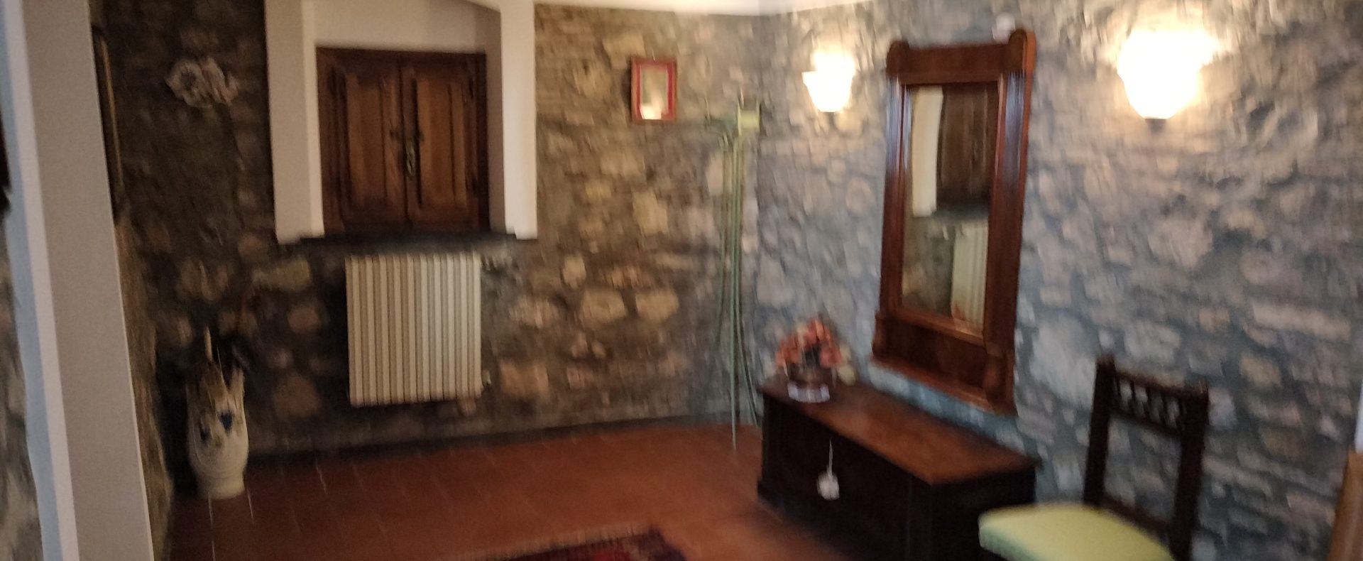 Ypperlig renovert 300 kvm treetasjes rekkehus til salgs beliggende i den pittoreske middelalderlandsbyen Orciatico, i Lajatico kommune. Denne pittoreske lille byen i Toscana er godt kjent av mange som hjemmet til Andrea Bocelli, hvor sangeren hvert år har sine lyriske konserter på det omtalte Stillhetens Teater, et åpent naturlig amfiteater hvor det er mulig å beundre en 360° fantastisk panoramautsikt rundt de omkringliggende åsene og over Volterra by. Lajatico tilbyr alle nødvendige tjenester som bank, postkontor, apotek, dagligvarer, restauranter, barer, lege og andre butikker. Landsbyen ligger kun 45 minutters kjøring fra Pisa internasjonale flyplass samt fra de nærmeste strendene; 20 minutters kjøring fra motorveien og jernbanestasjonen, 10 minutter fra større supermarkeder, 25 minutter fra den etruskiske byen Volterra, 40 minutter fra pittoreske San Gimignano og på halvannen time er det mulig å nå de mest attraktive byene i Toscana som Firenze, Siena og Lucca. Landsbyen Orciatico er en ekte juvel, og den tilbyr en bar og en liten dagligvare. Rekkehuset er tilgjengelig gjennom en gang med god størrelse med synlige steiner på veggene og trapper som fører til første etasje som består av: på venstre side et kjøkken/spisestue med pelletsovn installert inne i en peis, til høyre side er det en utrolig stor stue med vedfyrt peis og en balkong som vender mot landsbygaten og et første soverom med terrasse.