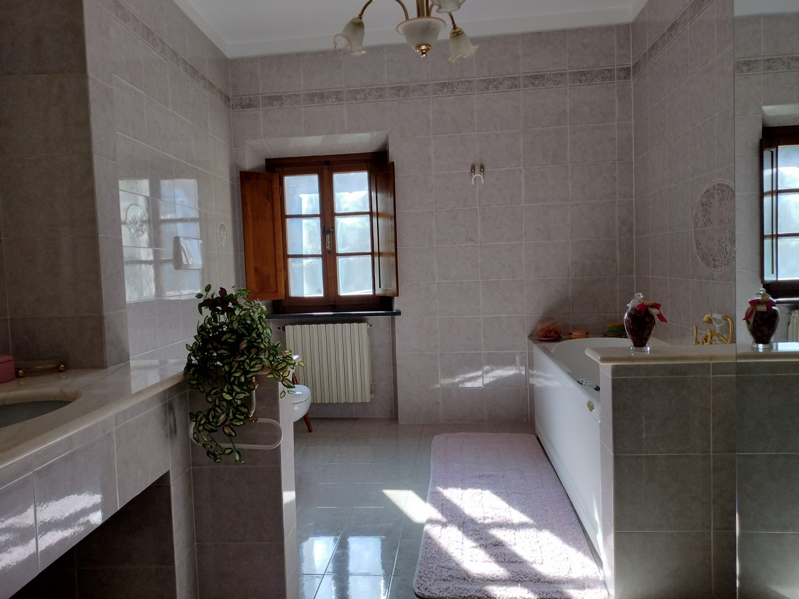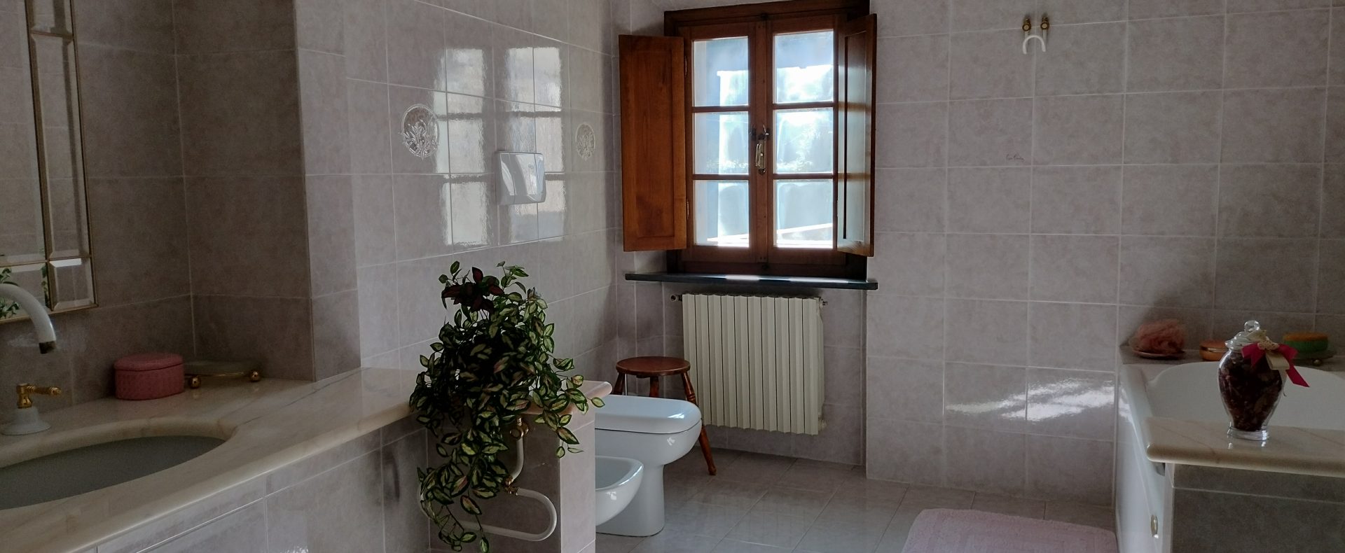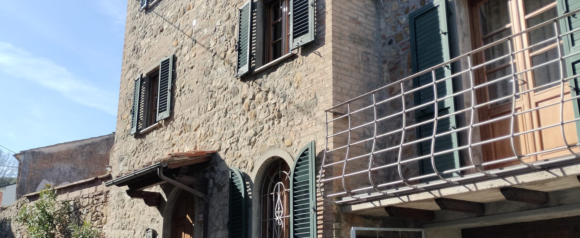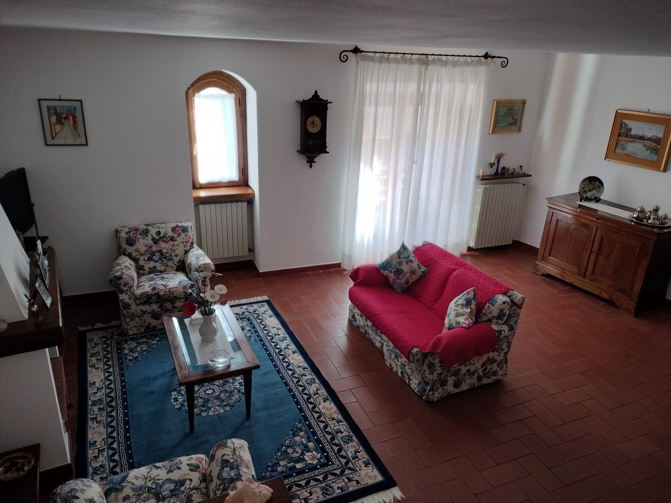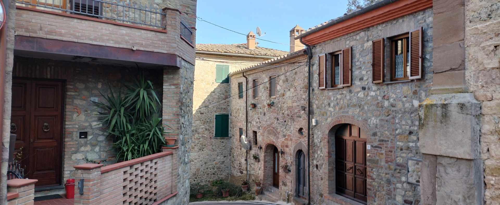 Ypperlig renovert 300 kvm treetasjes rekkehus til salgs beliggende i den pittoreske middelalderlandsbyen Orciatico, i Lajatico kommune. Denne pittoreske lille byen i Toscana er godt kjent av mange som hjemmet til Andrea Bocelli, hvor sangeren hvert år har sine lyriske konserter på det omtalte Stillhetens Teater, et åpent naturlig amfiteater hvor det er mulig å beundre en 360° fantastisk panoramautsikt rundt de omkringliggende åsene og over Volterra by. Lajatico tilbyr alle nødvendige tjenester som bank, postkontor, apotek, dagligvarer, restauranter, barer, lege og andre butikker. Landsbyen ligger kun 45 minutters kjøring fra Pisa internasjonale flyplass samt fra de nærmeste strendene; 20 minutters kjøring fra motorveien og jernbanestasjonen, 10 minutter fra større supermarkeder, 25 minutter fra den etruskiske byen Volterra, 40 minutter fra pittoreske San Gimignano og på halvannen time er det mulig å nå de mest attraktive byene i Toscana som Firenze, Siena og Lucca. Landsbyen Orciatico er en ekte juvel, og den tilbyr en bar og en liten dagligvare. Rekkehuset er tilgjengelig gjennom en gang med god størrelse med synlige steiner på veggene og trapper som fører til første etasje som består av: på venstre side et kjøkken/spisestue med pelletsovn installert inne i en peis, til høyre side er det en utrolig stor stue med vedfyrt peis og en balkong som vender mot landsbygaten og et første soverom med terrasse.