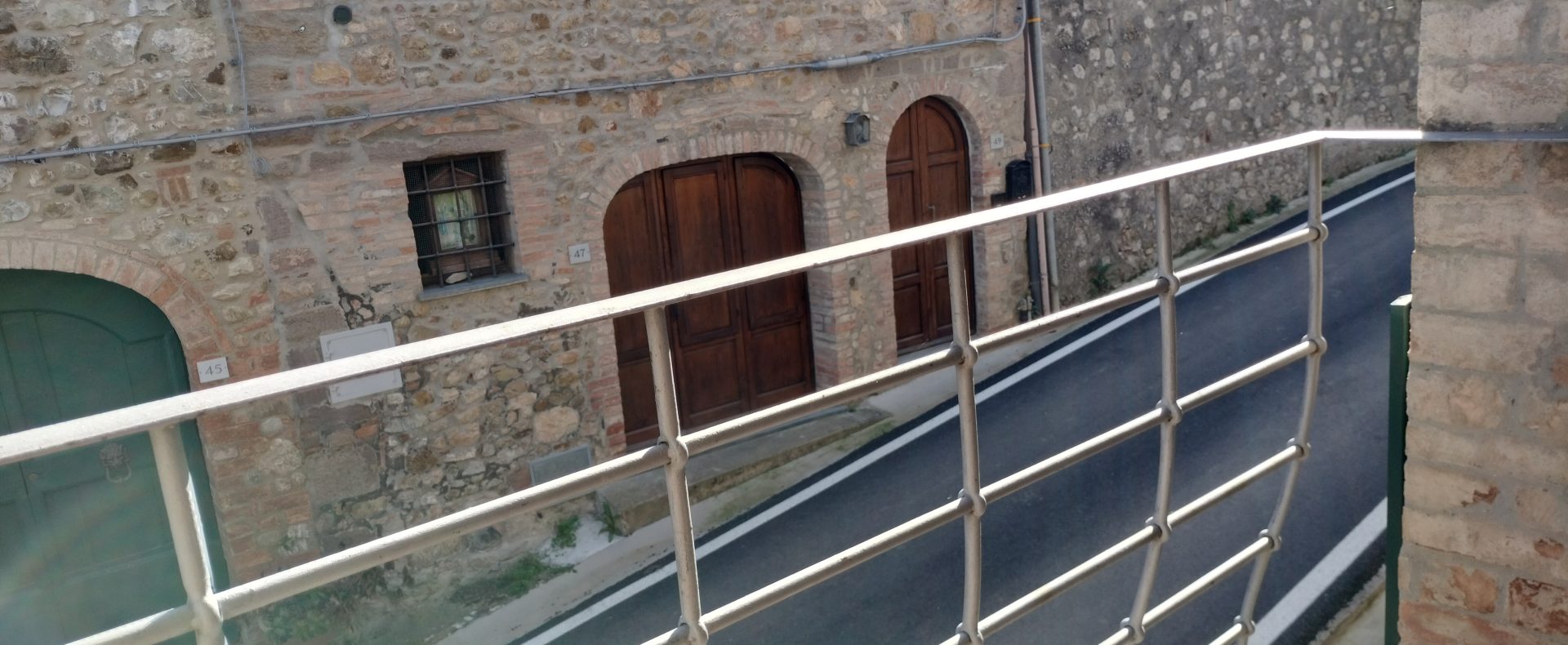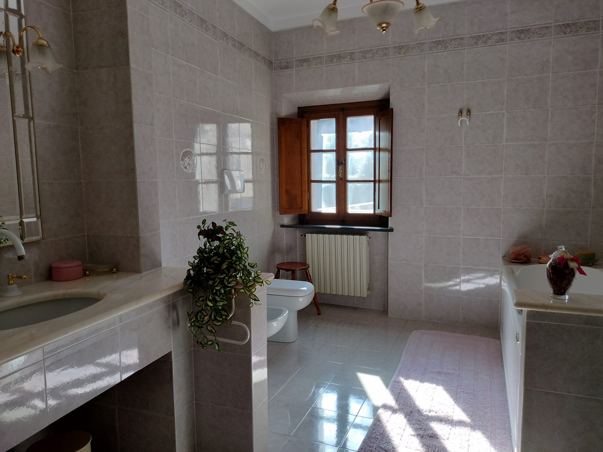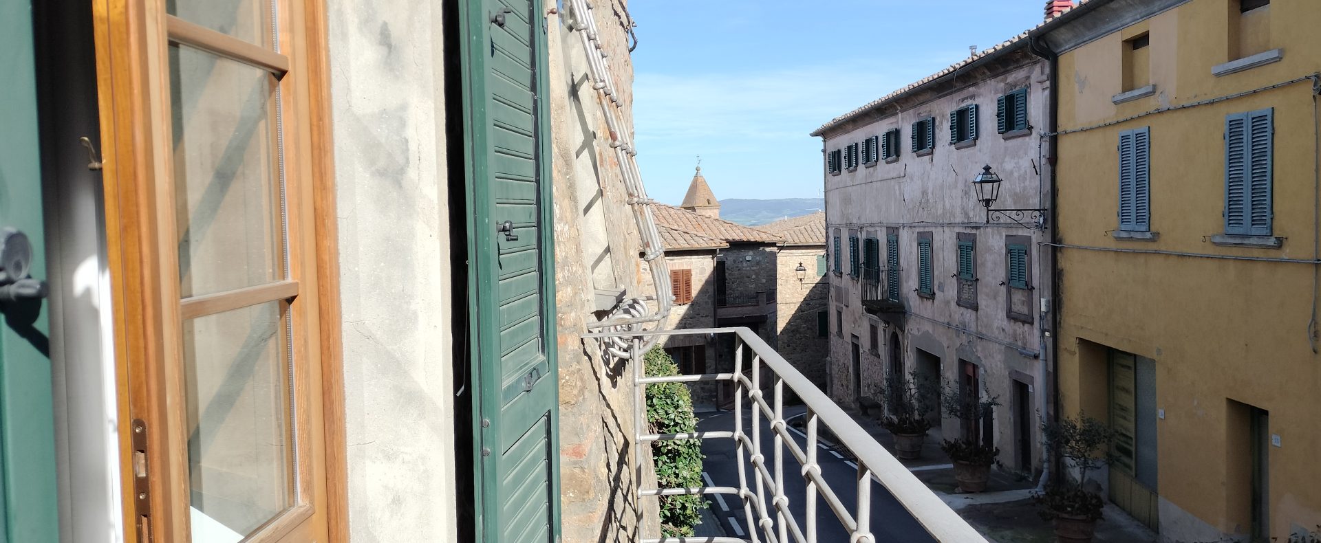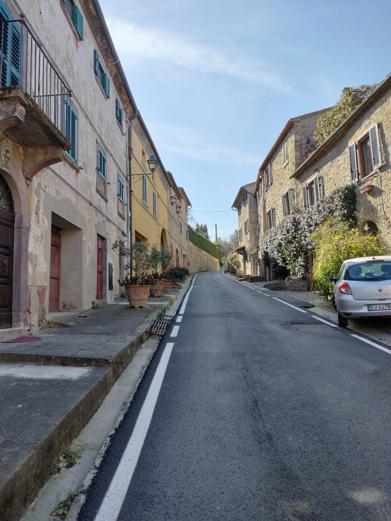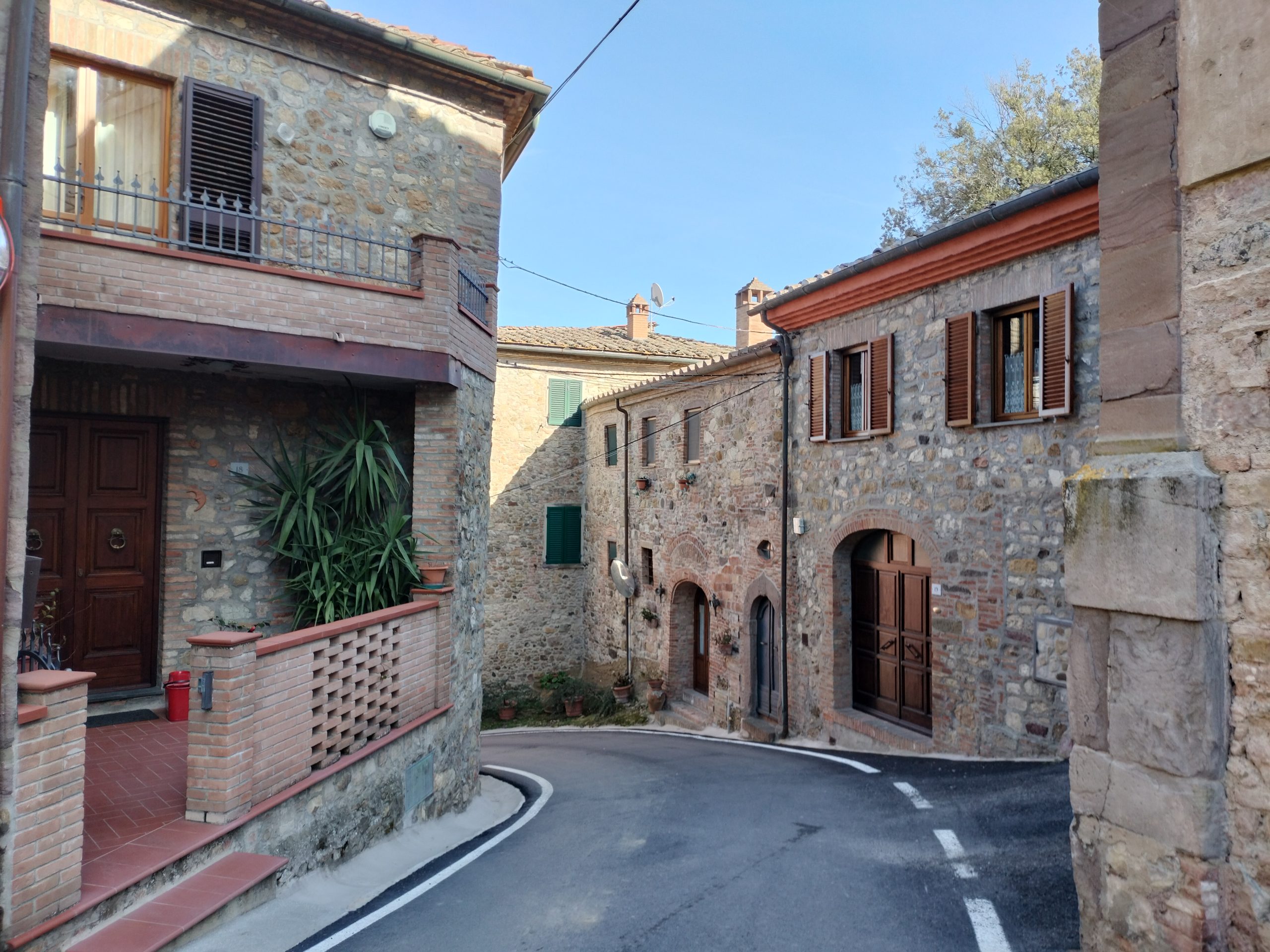 Ypperlig renovert 300 kvm treetasjes rekkehus til salgs beliggende i den pittoreske middelalderlandsbyen Orciatico, i Lajatico kommune. Denne pittoreske lille byen i Toscana er godt kjent av mange som hjemmet til Andrea Bocelli, hvor sangeren hvert år har sine lyriske konserter på det omtalte Stillhetens Teater, et åpent naturlig amfiteater hvor det er mulig å beundre en 360° fantastisk panoramautsikt rundt de omkringliggende åsene og over Volterra by. Lajatico tilbyr alle nødvendige tjenester som bank, postkontor, apotek, dagligvarer, restauranter, barer, lege og andre butikker. Landsbyen ligger kun 45 minutters kjøring fra Pisa internasjonale flyplass samt fra de nærmeste strendene; 20 minutters kjøring fra motorveien og jernbanestasjonen, 10 minutter fra større supermarkeder, 25 minutter fra den etruskiske byen Volterra, 40 minutter fra pittoreske San Gimignano og på halvannen time er det mulig å nå de mest attraktive byene i Toscana som Firenze, Siena og Lucca. Landsbyen Orciatico er en ekte juvel, og den tilbyr en bar og en liten dagligvare. Rekkehuset er tilgjengelig gjennom en gang med god størrelse med synlige steiner på veggene og trapper som fører til første etasje som består av: på venstre side et kjøkken/spisestue med pelletsovn installert inne i en peis, til høyre side er det en utrolig stor stue med vedfyrt peis og en balkong som vender mot landsbygaten og et første soverom med terrasse.