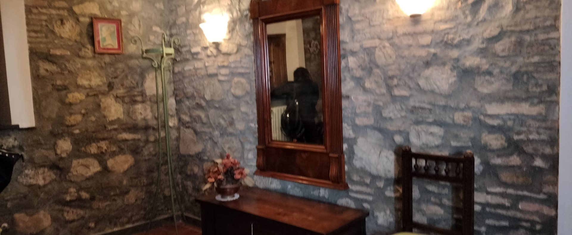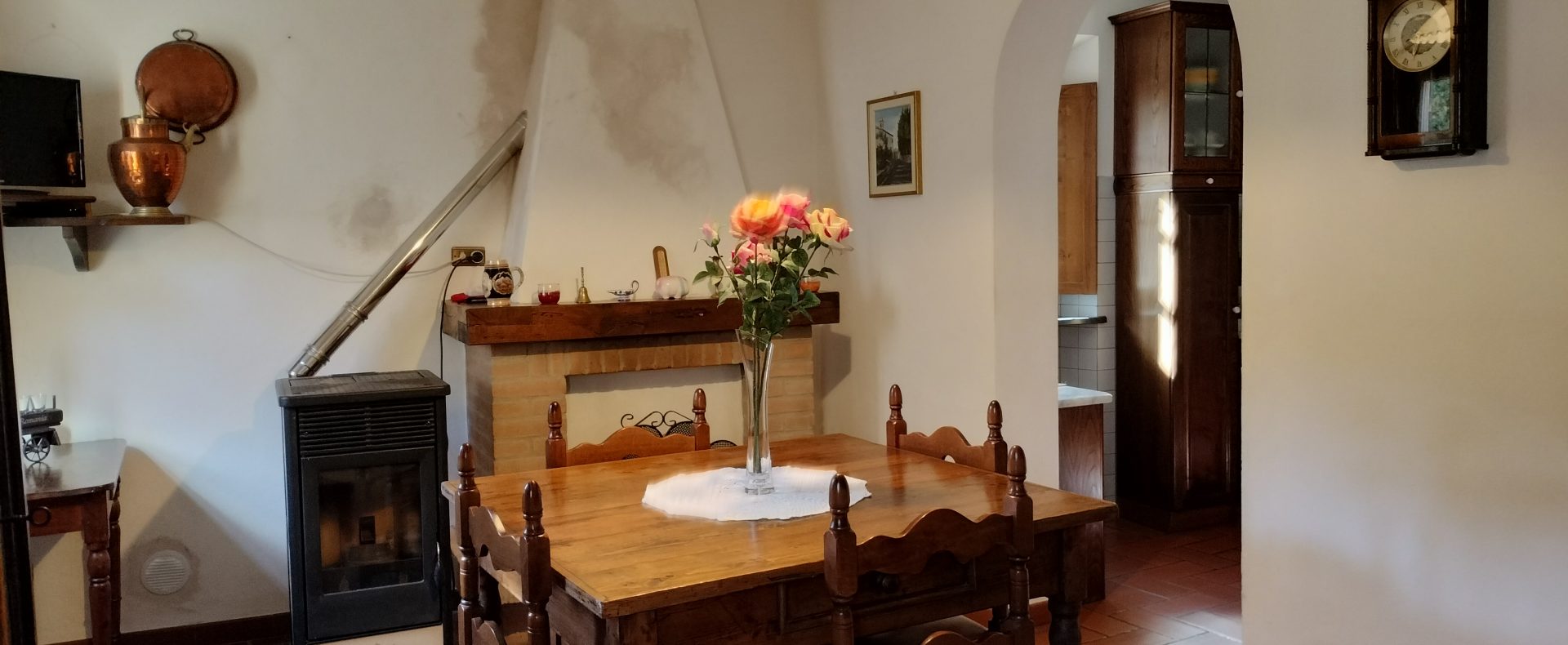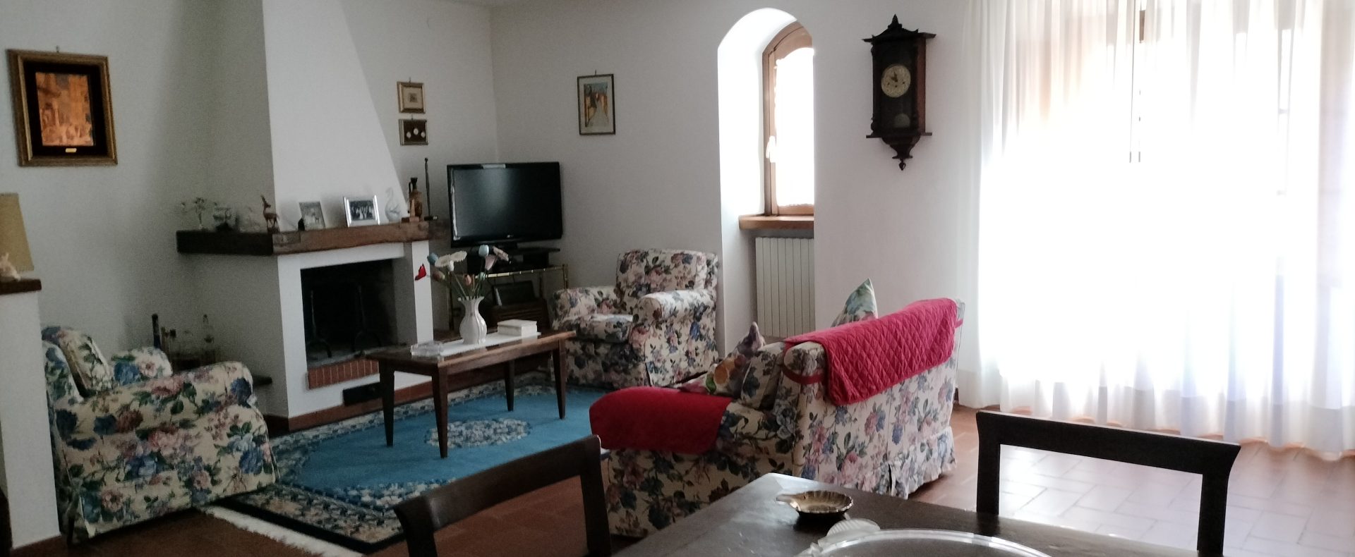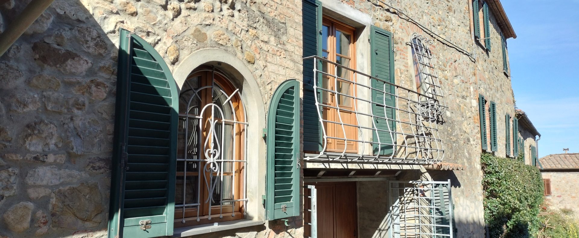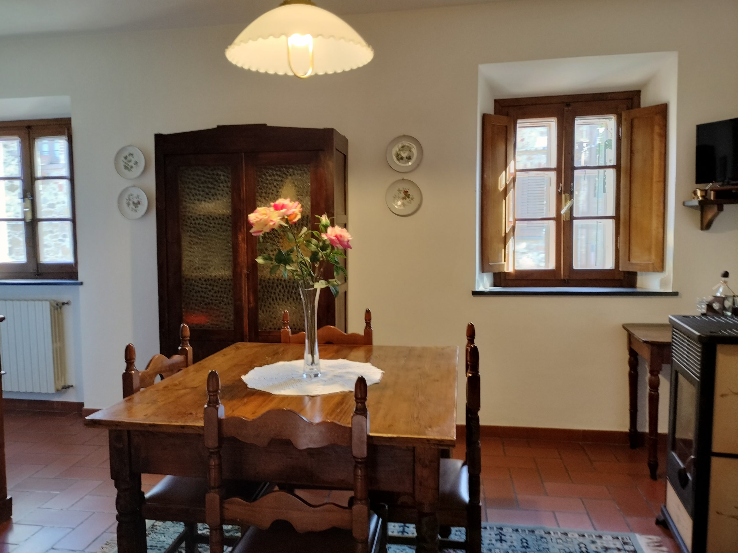 Ypperlig renovert 300 kvm treetasjes rekkehus til salgs beliggende i den pittoreske middelalderlandsbyen Orciatico, i Lajatico kommune. Denne pittoreske lille byen i Toscana er godt kjent av mange som hjemmet til Andrea Bocelli, hvor sangeren hvert år har sine lyriske konserter på det omtalte Stillhetens Teater, et åpent naturlig amfiteater hvor det er mulig å beundre en 360° fantastisk panoramautsikt rundt de omkringliggende åsene og over Volterra by. Lajatico tilbyr alle nødvendige tjenester som bank, postkontor, apotek, dagligvarer, restauranter, barer, lege og andre butikker. Landsbyen ligger kun 45 minutters kjøring fra Pisa internasjonale flyplass samt fra de nærmeste strendene; 20 minutters kjøring fra motorveien og jernbanestasjonen, 10 minutter fra større supermarkeder, 25 minutter fra den etruskiske byen Volterra, 40 minutter fra pittoreske San Gimignano og på halvannen time er det mulig å nå de mest attraktive byene i Toscana som Firenze, Siena og Lucca. Landsbyen Orciatico er en ekte juvel, og den tilbyr en bar og en liten dagligvare. Rekkehuset er tilgjengelig gjennom en gang med god størrelse med synlige steiner på veggene og trapper som fører til første etasje som består av: på venstre side et kjøkken/spisestue med pelletsovn installert inne i en peis, til høyre side er det en utrolig stor stue med vedfyrt peis og en balkong som vender mot landsbygaten og et første soverom med terrasse.