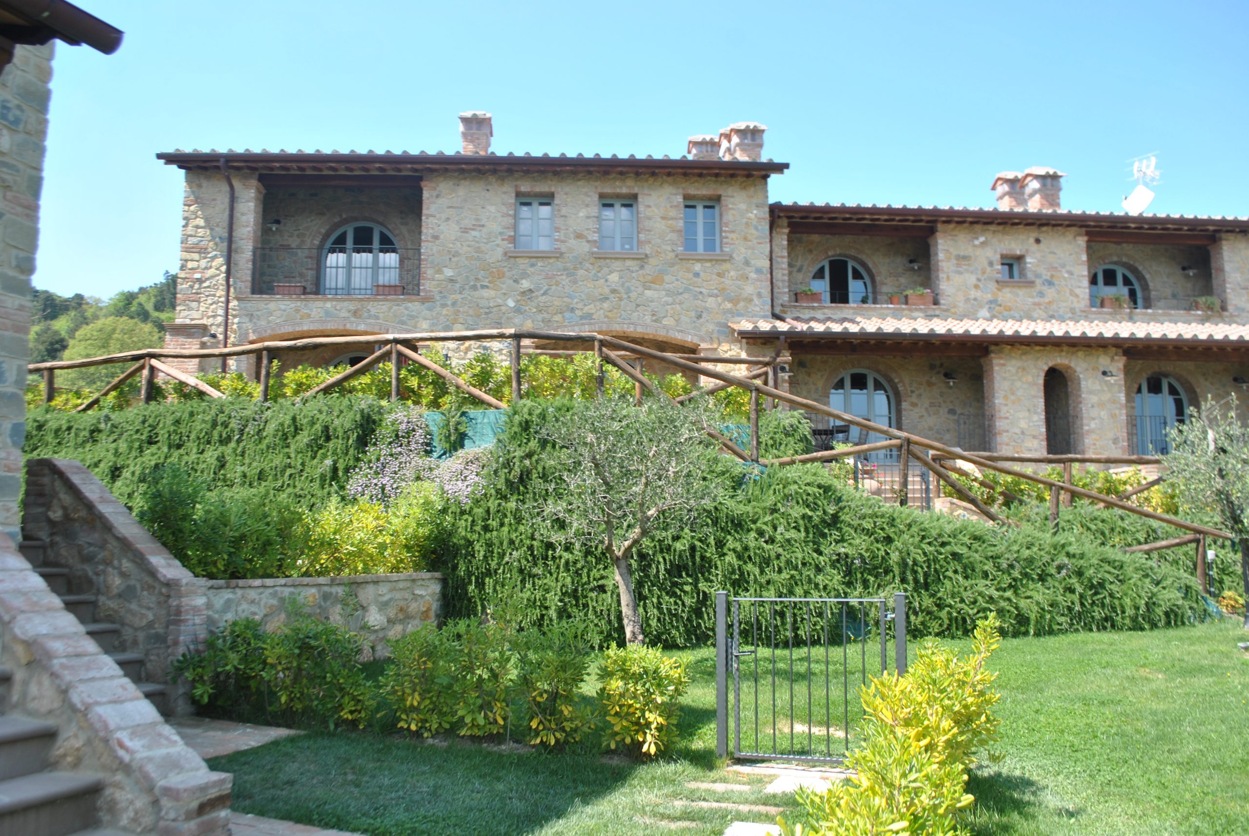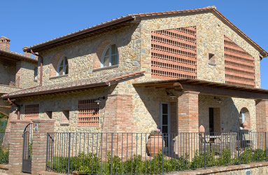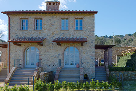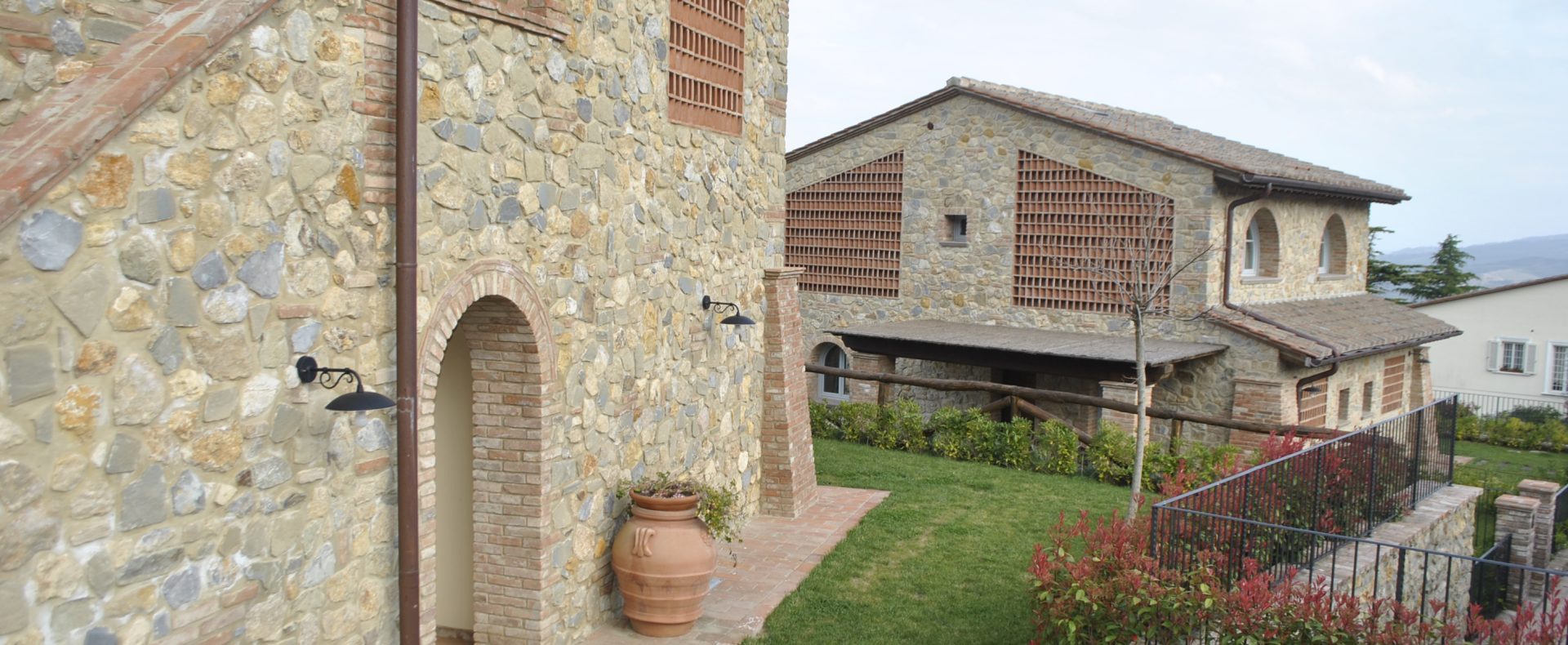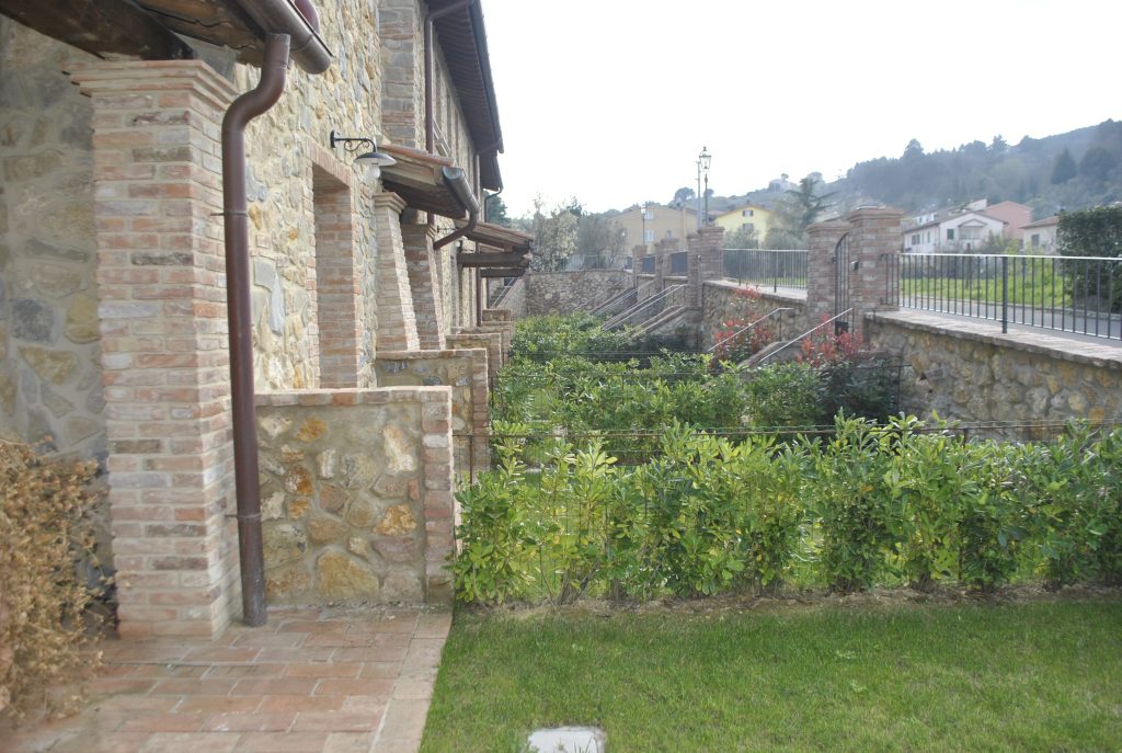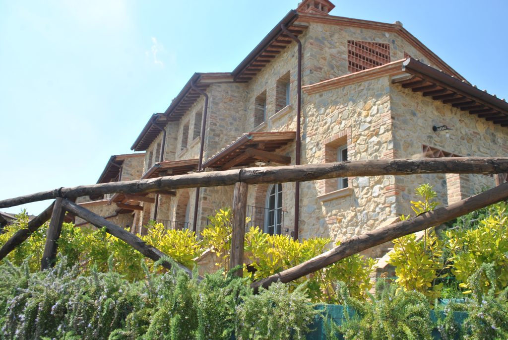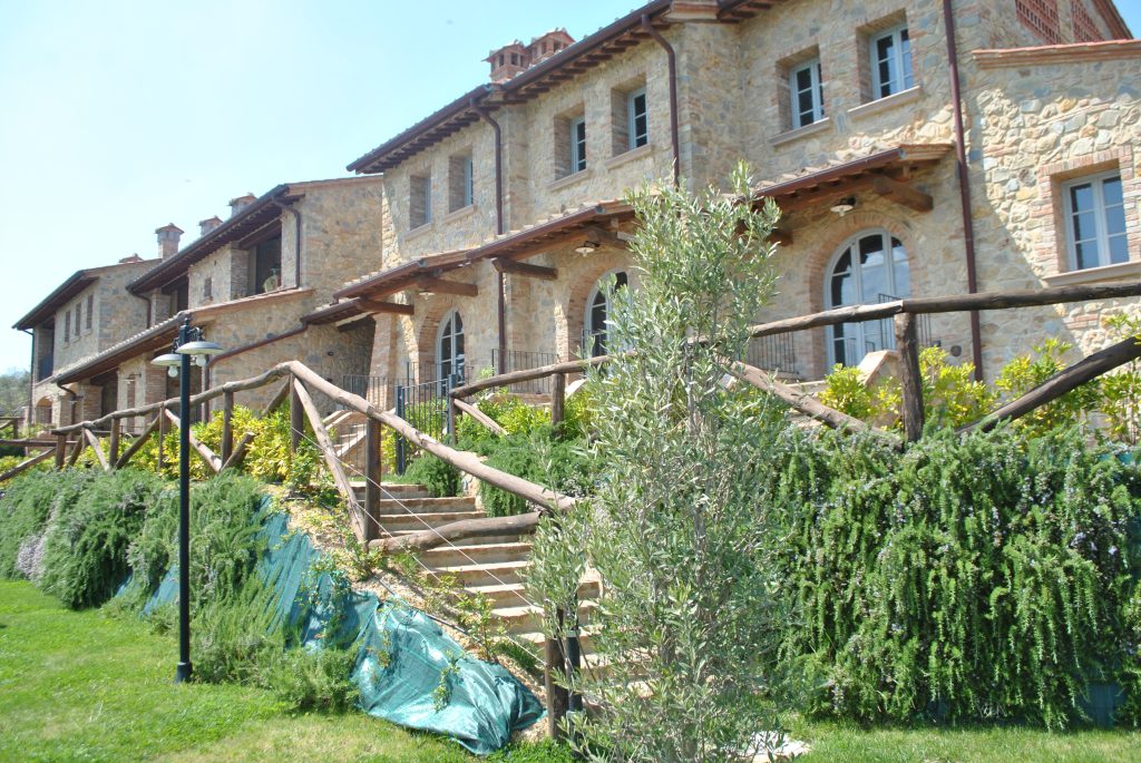 Fellesarealene inkluderer et stort grøntområde med asfalterte turveier, utendørs svømmebasseng og åpen eller innendørs privat parkering. Den arkitektoniske utformingen så ut til å bevare ånden til toskanske gårdshus, og samsvarte med egenskapene til rustikk toskansk stil, og brukte derfor kvalitetsmaterialer kombinert med restaurerte gjenstander, inkludert trebjelker for gulvbelegg og restaurert terrakotta murverk. Resultatet er 12 forskjellige leiligheter, alle innredet med omhu og smak: terrakottagulv, eikeparkett, kastanjebjelker, bad utsmykket med travertinmarmor, kjøkkenoverflater i granitt, for å sitere bare noen av materialene som er brukt. Offentlig grøntområde med typiske plantearter og pause- og avslapningsområder.