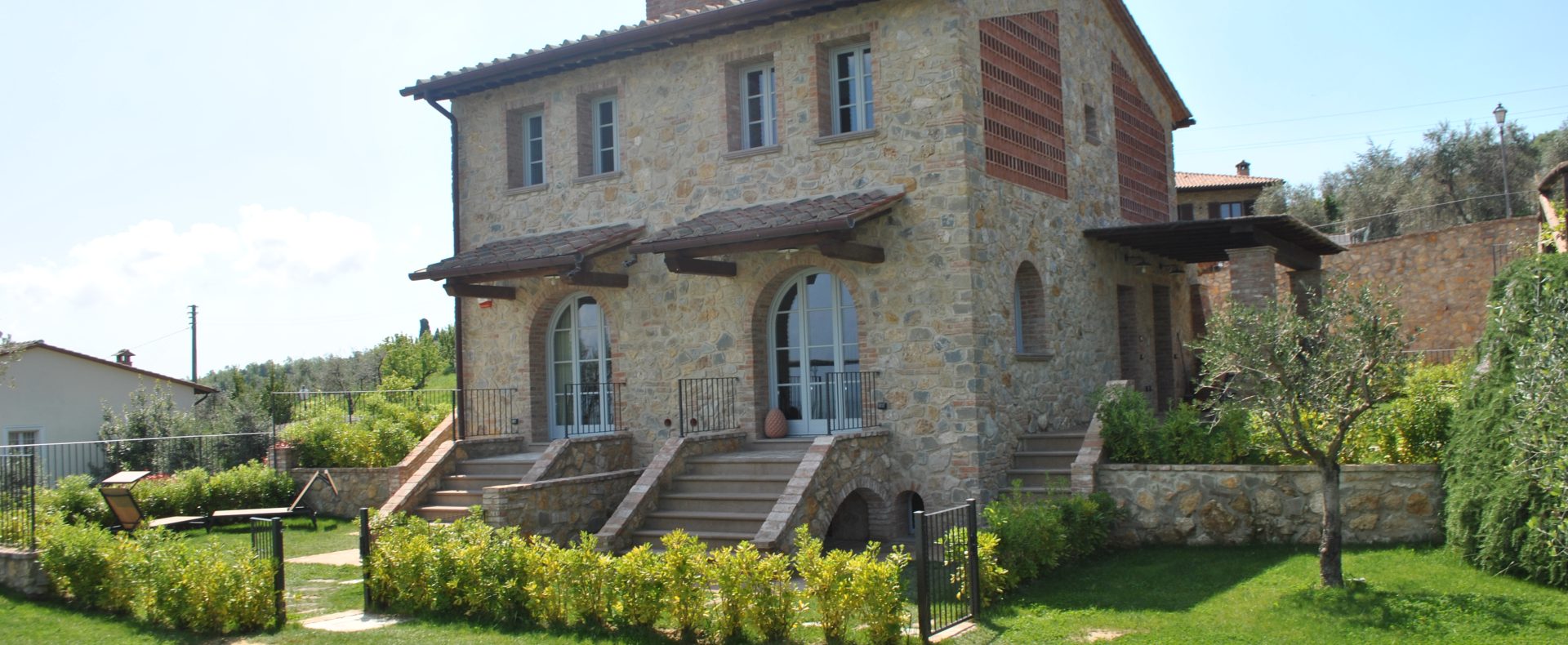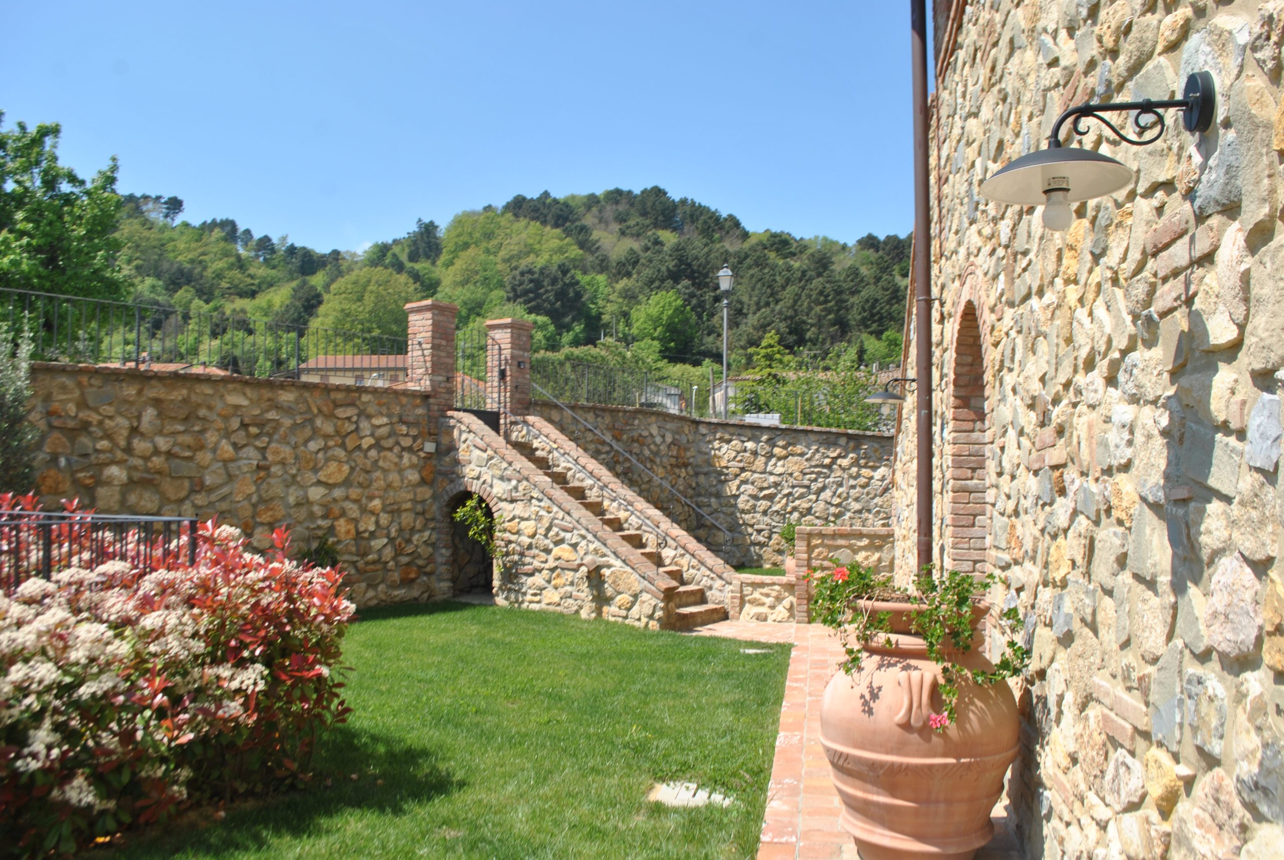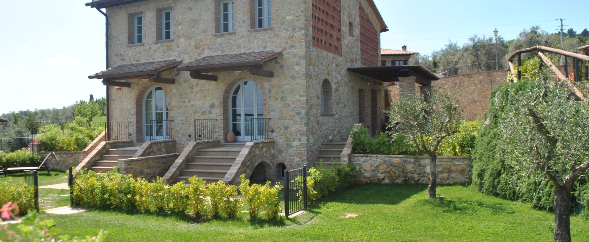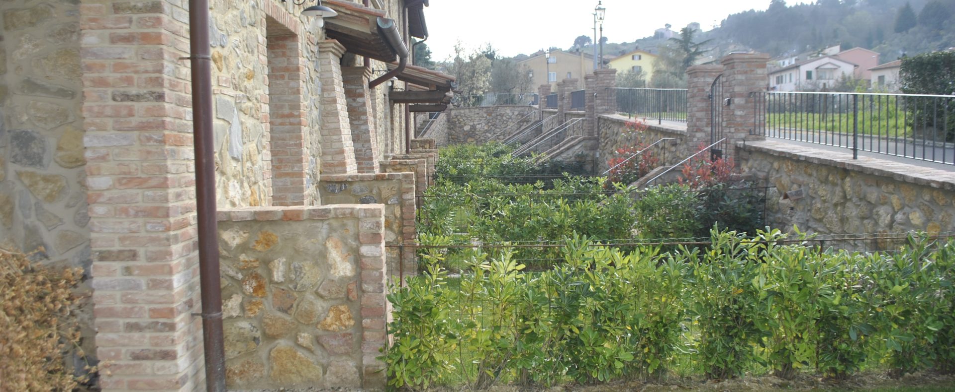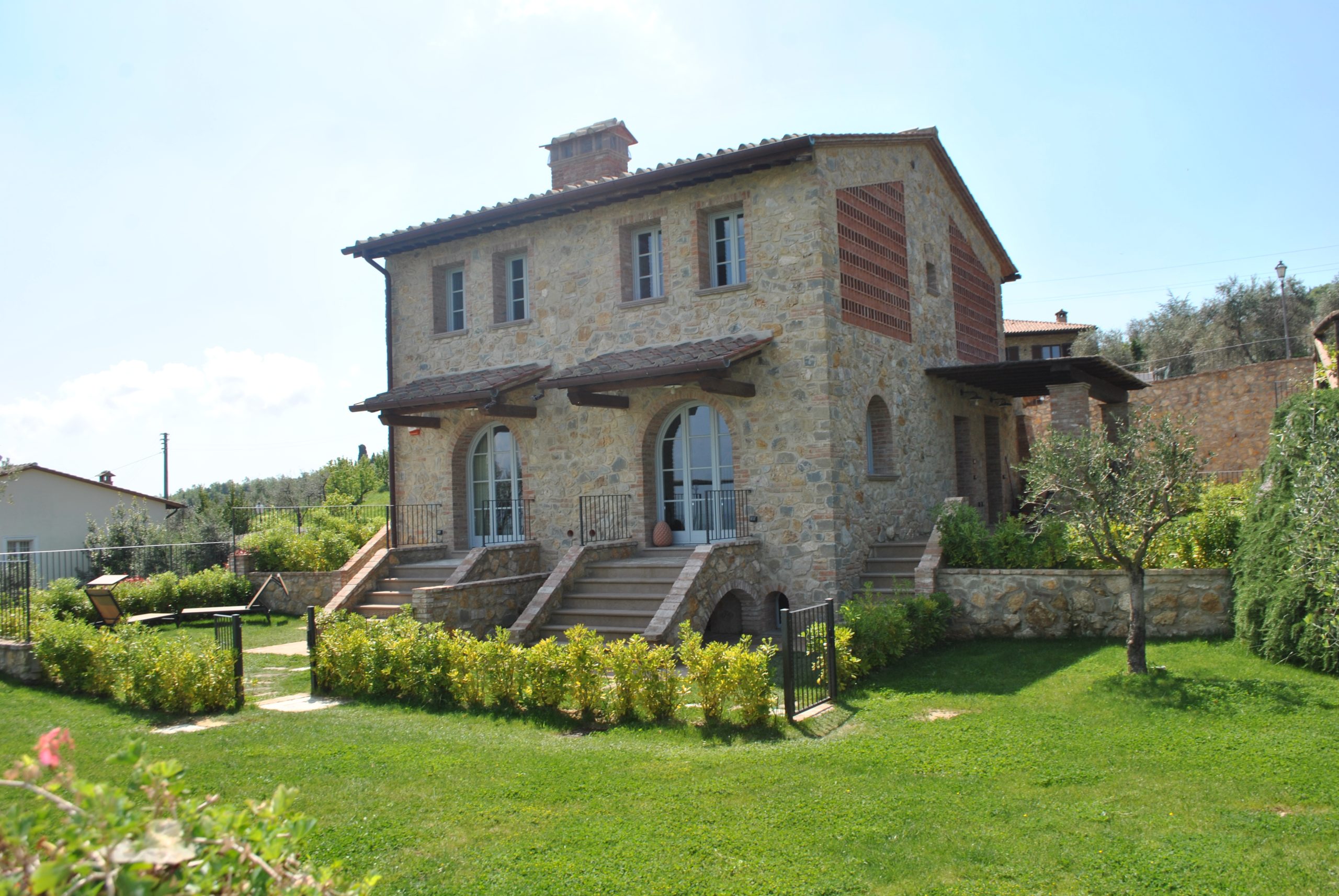 Fellesarealene inkluderer et stort grøntområde med asfalterte turveier, utendørs svømmebasseng og åpen eller innendørs privat parkering. Den arkitektoniske utformingen så ut til å bevare ånden til toskanske gårdshus, og samsvarte med egenskapene til rustikk toskansk stil, og brukte derfor kvalitetsmaterialer kombinert med restaurerte gjenstander, inkludert trebjelker for gulvbelegg og restaurert terrakotta murverk. Resultatet er 12 forskjellige leiligheter, alle innredet med omhu og smak: terrakottagulv, eikeparkett, kastanjebjelker, bad utsmykket med travertinmarmor, kjøkkenoverflater i granitt, for å sitere bare noen av materialene som er brukt. Offentlig grøntområde med typiske plantearter og pause- og avslapningsområder.