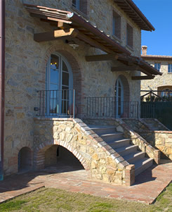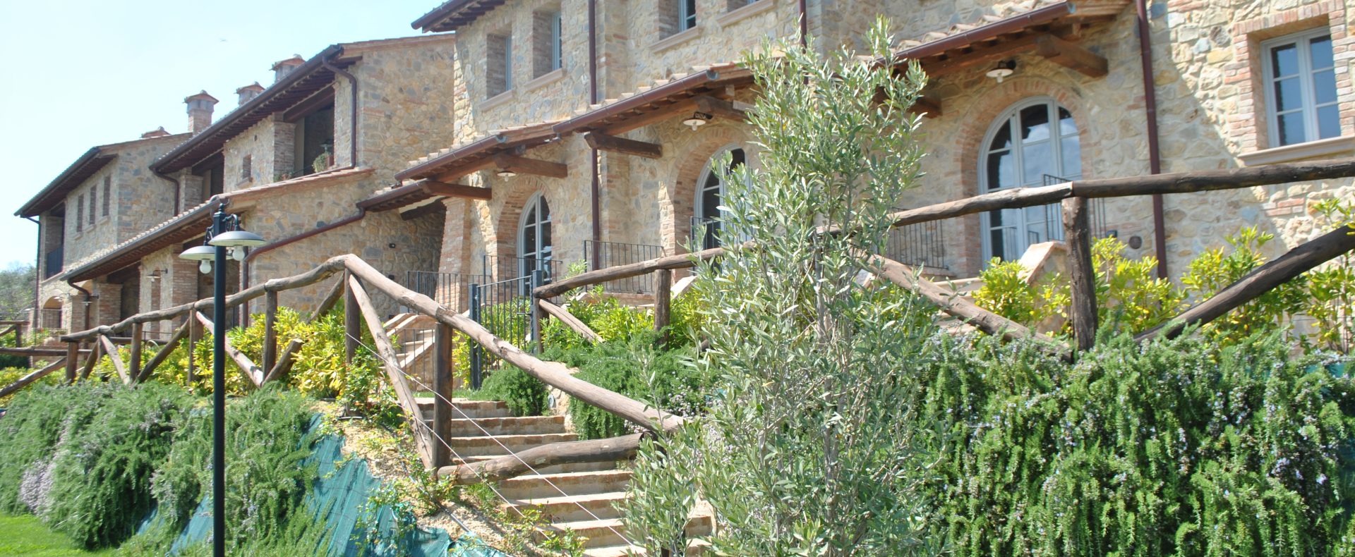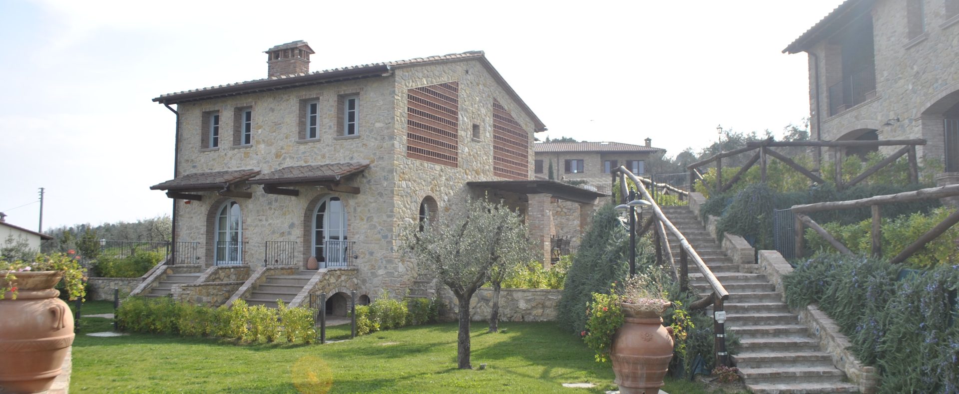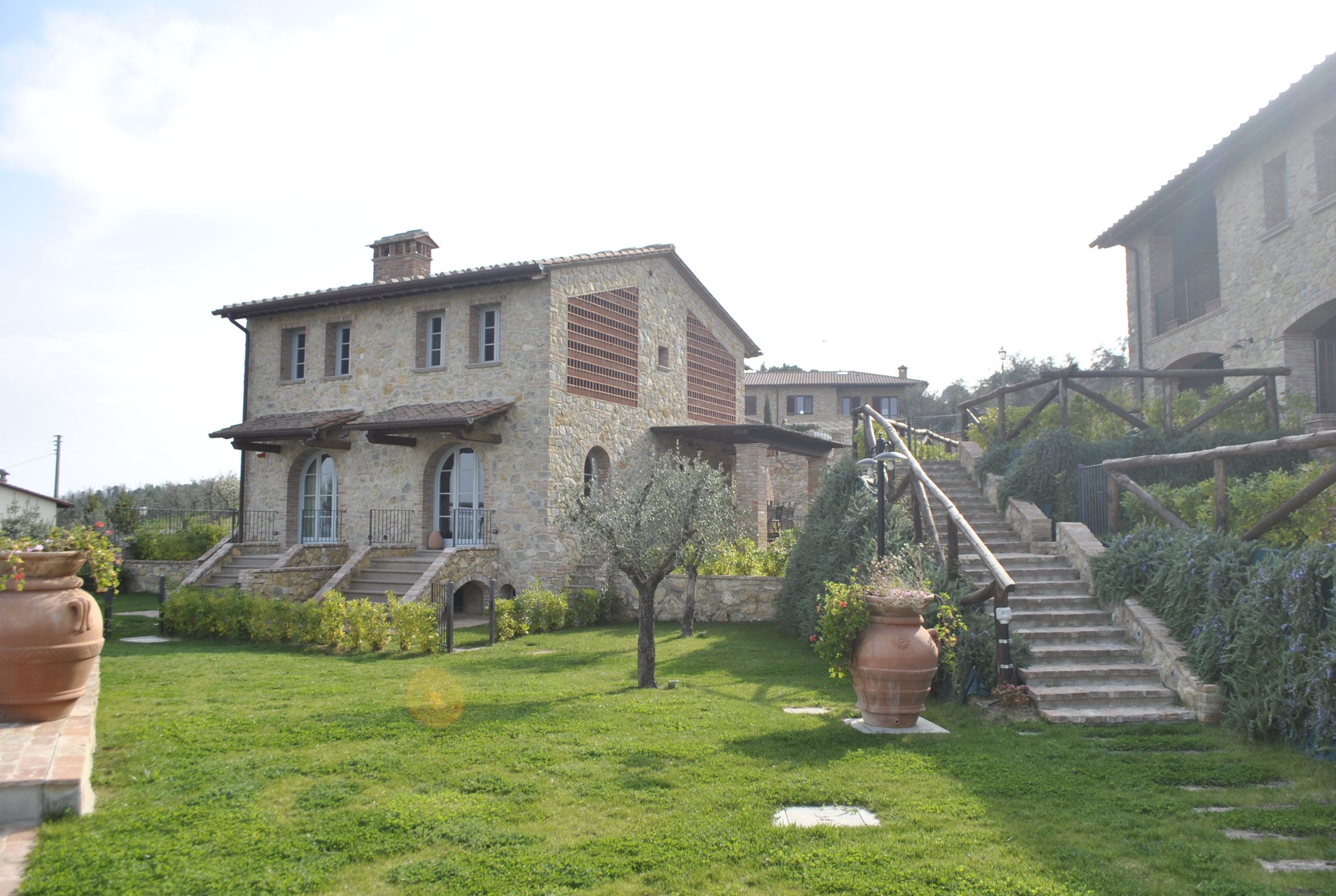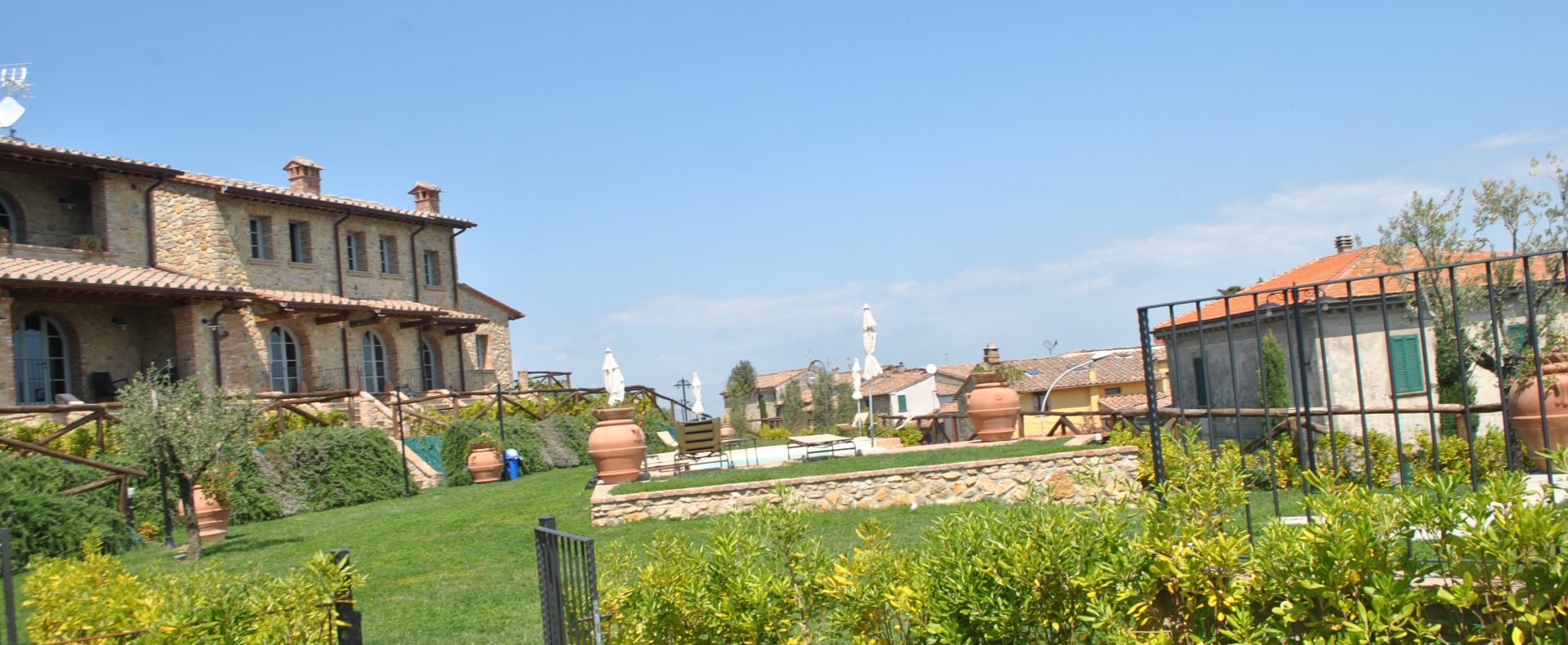 Fellesarealene inkluderer et stort grøntområde med asfalterte turveier, utendørs svømmebasseng og åpen eller innendørs privat parkering. Den arkitektoniske utformingen så ut til å bevare ånden til toskanske gårdshus, og samsvarte med egenskapene til rustikk toskansk stil, og brukte derfor kvalitetsmaterialer kombinert med restaurerte gjenstander, inkludert trebjelker for gulvbelegg og restaurert terrakotta murverk. Resultatet er 12 forskjellige leiligheter, alle innredet med omhu og smak: terrakottagulv, eikeparkett, kastanjebjelker, bad utsmykket med travertinmarmor, kjøkkenoverflater i granitt, for å sitere bare noen av materialene som er brukt. Offentlig grøntområde med typiske plantearter og pause- og avslapningsområder.
