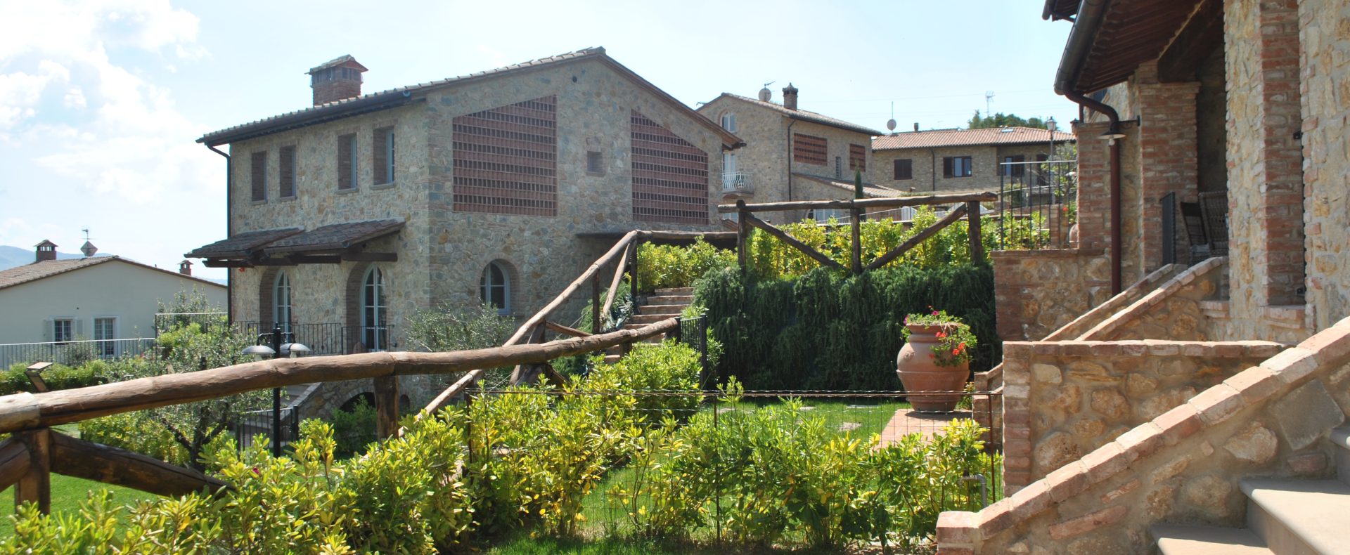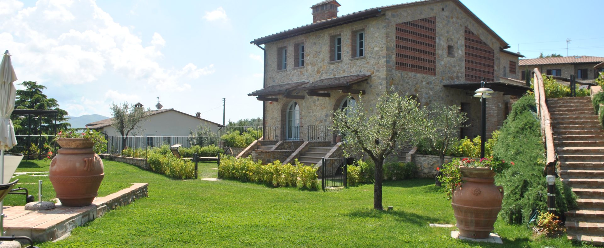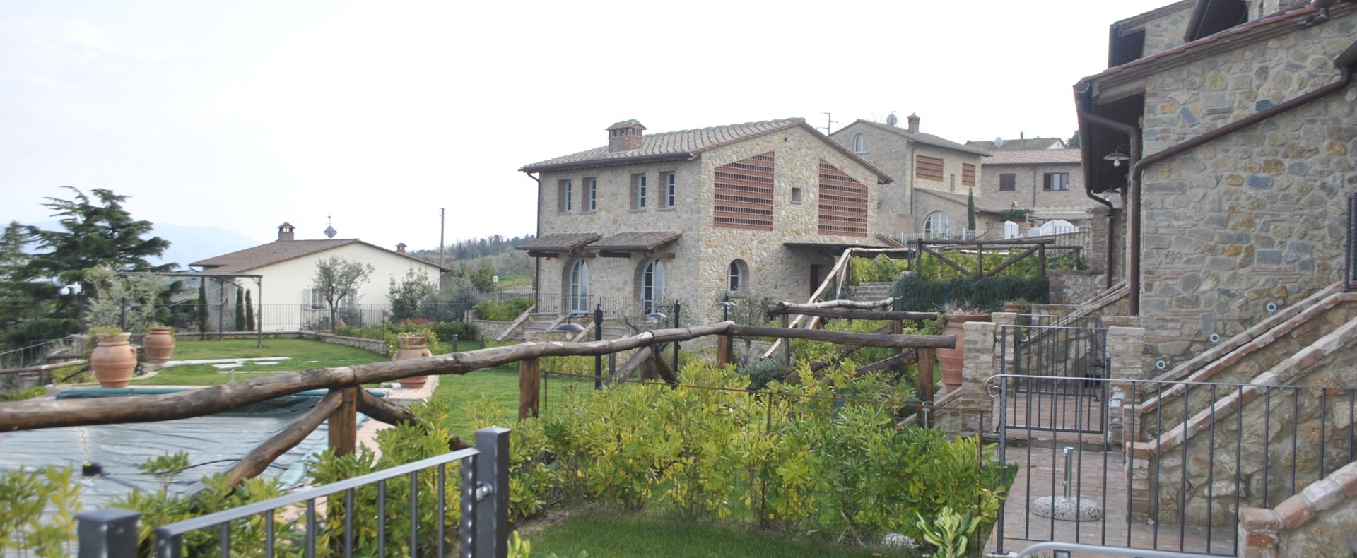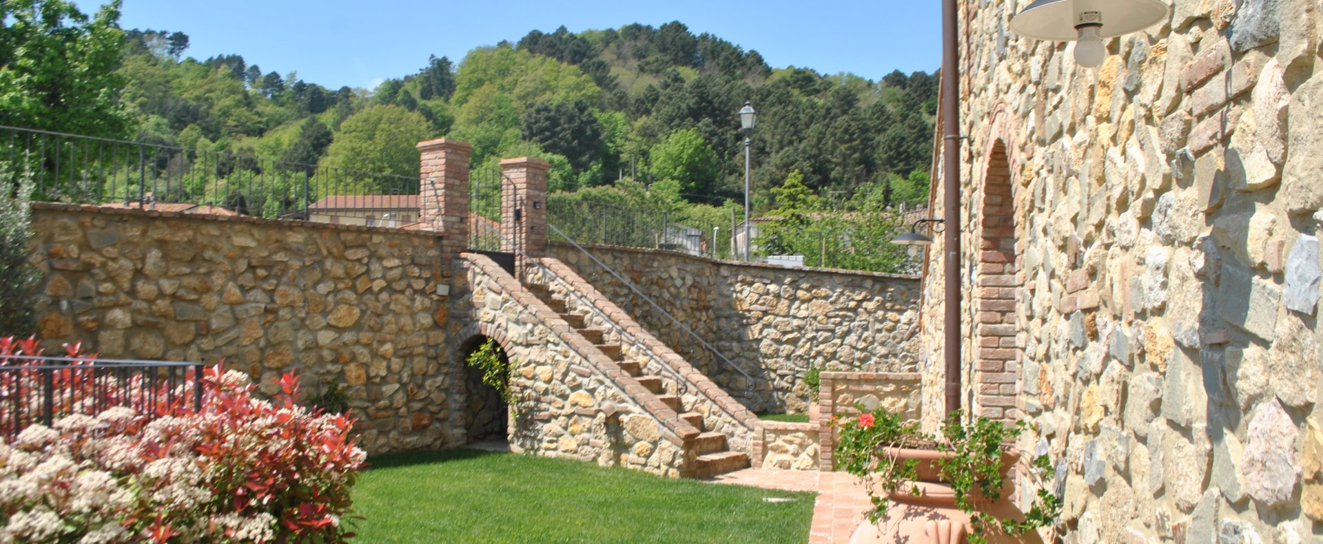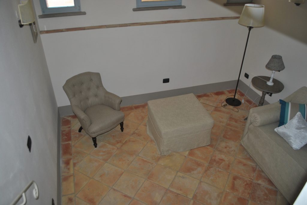Fellesarealene inkluderer et stort grøntområde med asfalterte turveier, utendørs svømmebasseng og åpen eller innendørs privat parkering. Den arkitektoniske utformingen så ut til å bevare ånden til toskanske gårdshus, og samsvarte med egenskapene til rustikk toskansk stil, og brukte derfor kvalitetsmaterialer kombinert med restaurerte gjenstander, inkludert trebjelker for gulvbelegg og restaurert terrakotta murverk. Resultatet er 12 forskjellige leiligheter, alle innredet med omhu og smak: terrakottagulv, eikeparkett, kastanjebjelker, bad utsmykket med travertinmarmor, kjøkkenoverflater i granitt, for å sitere bare noen av materialene som er brukt. Offentlig grøntområde med typiske plantearter og pause- og avslapningsområder.