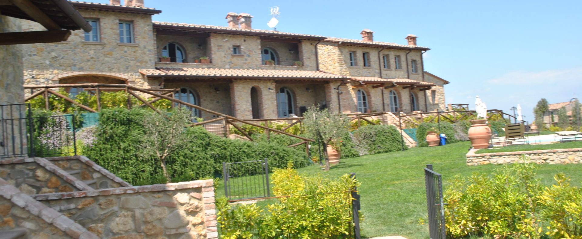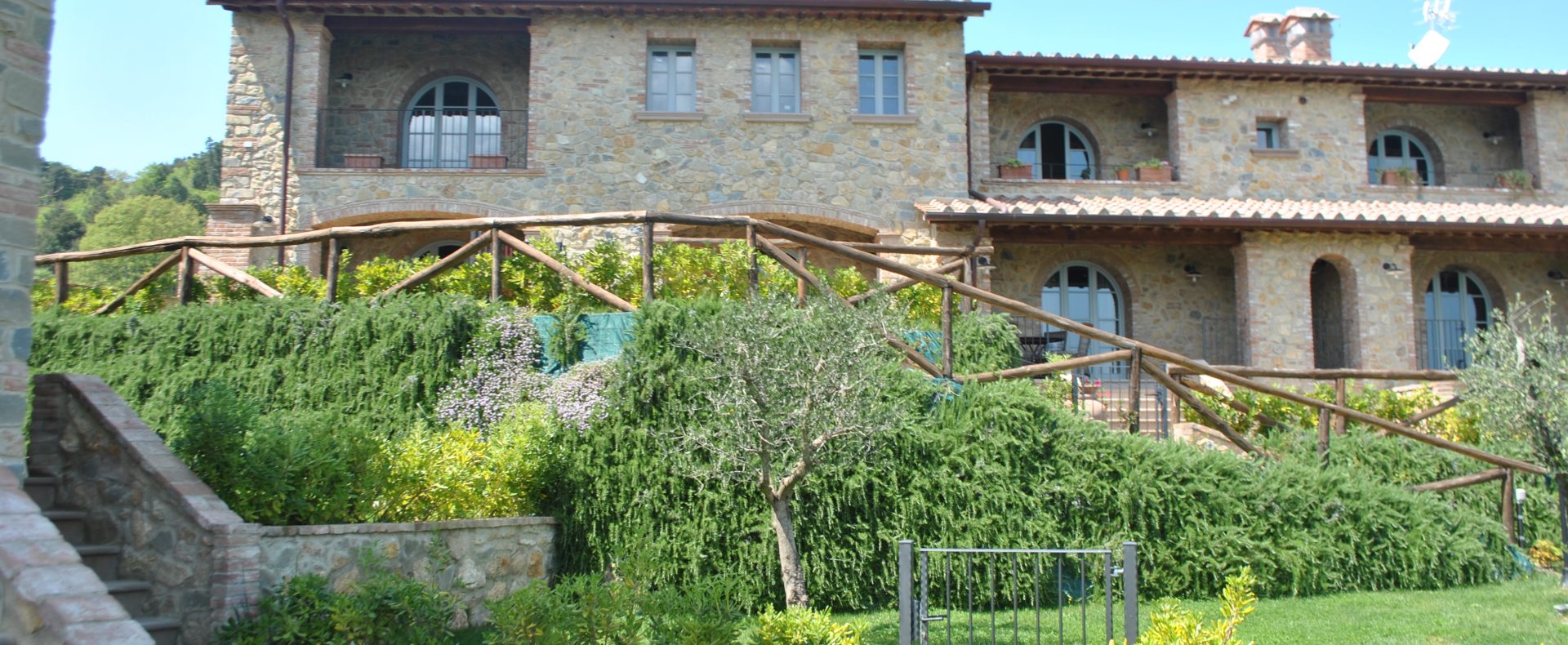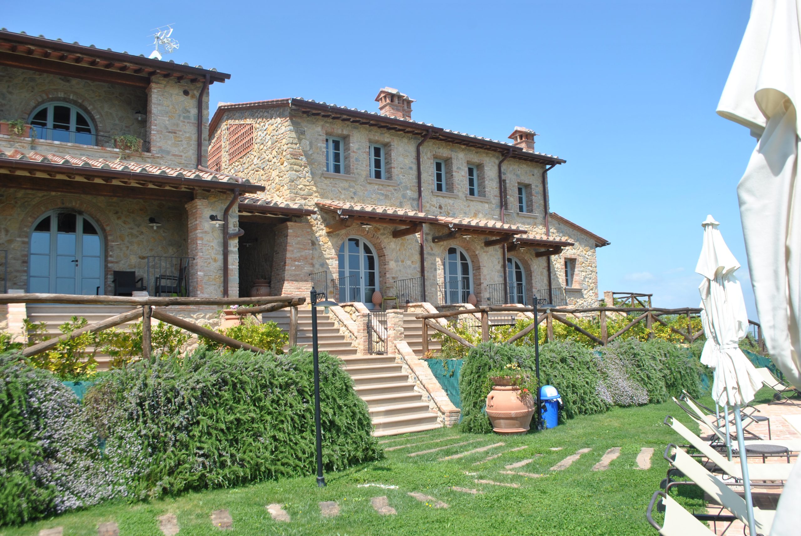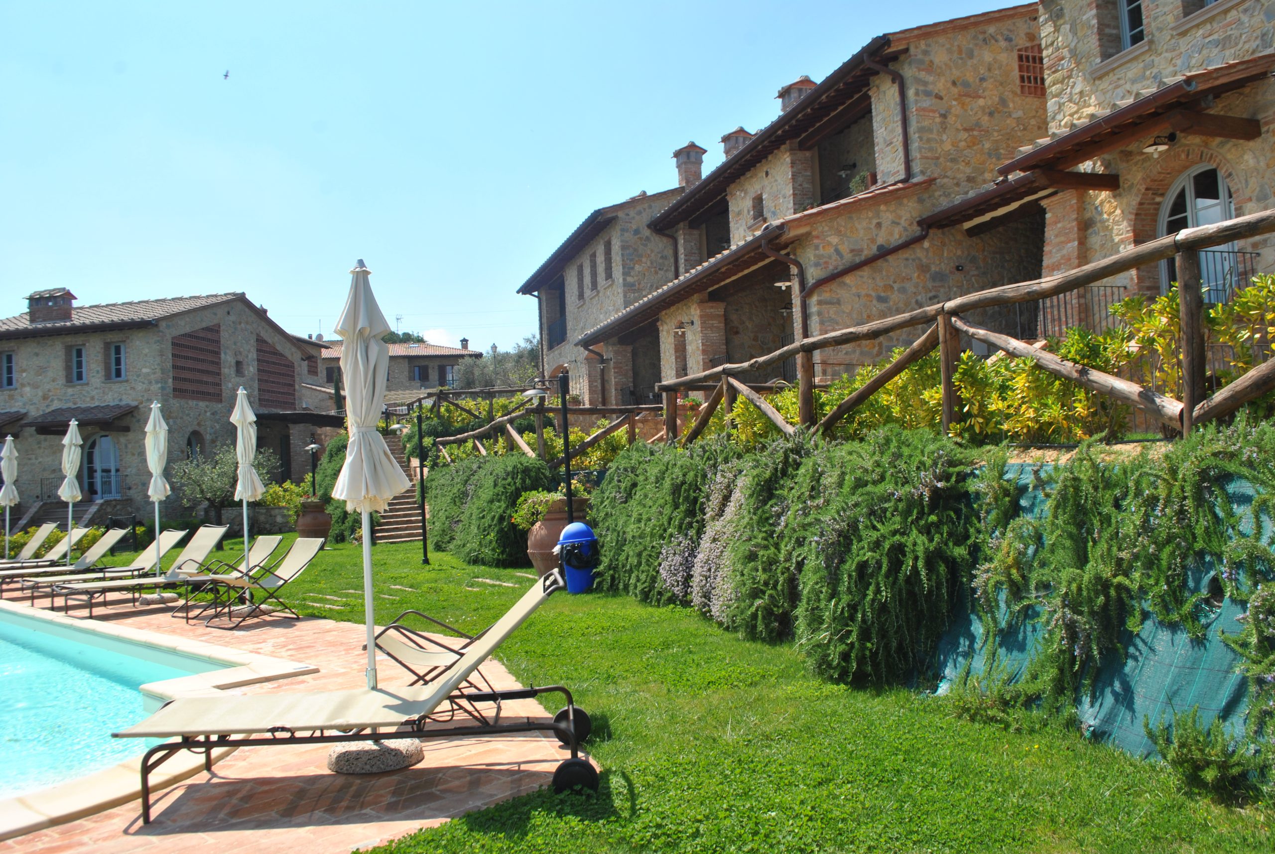 Fellesarealene inkluderer et stort grøntområde med asfalterte turveier, utendørs svømmebasseng og åpen eller innendørs privat parkering. Den arkitektoniske utformingen så ut til å bevare ånden til toskanske gårdshus, og samsvarte med egenskapene til rustikk toskansk stil, og brukte derfor kvalitetsmaterialer kombinert med restaurerte gjenstander, inkludert trebjelker for gulvbelegg og restaurert terrakotta murverk. Resultatet er 12 forskjellige leiligheter, alle innredet med omhu og smak: terrakottagulv, eikeparkett, kastanjebjelker, bad utsmykket med travertinmarmor, kjøkkenoverflater i granitt, for å sitere bare noen av materialene som er brukt. Offentlig grøntområde med typiske plantearter og pause- og avslapningsområder.