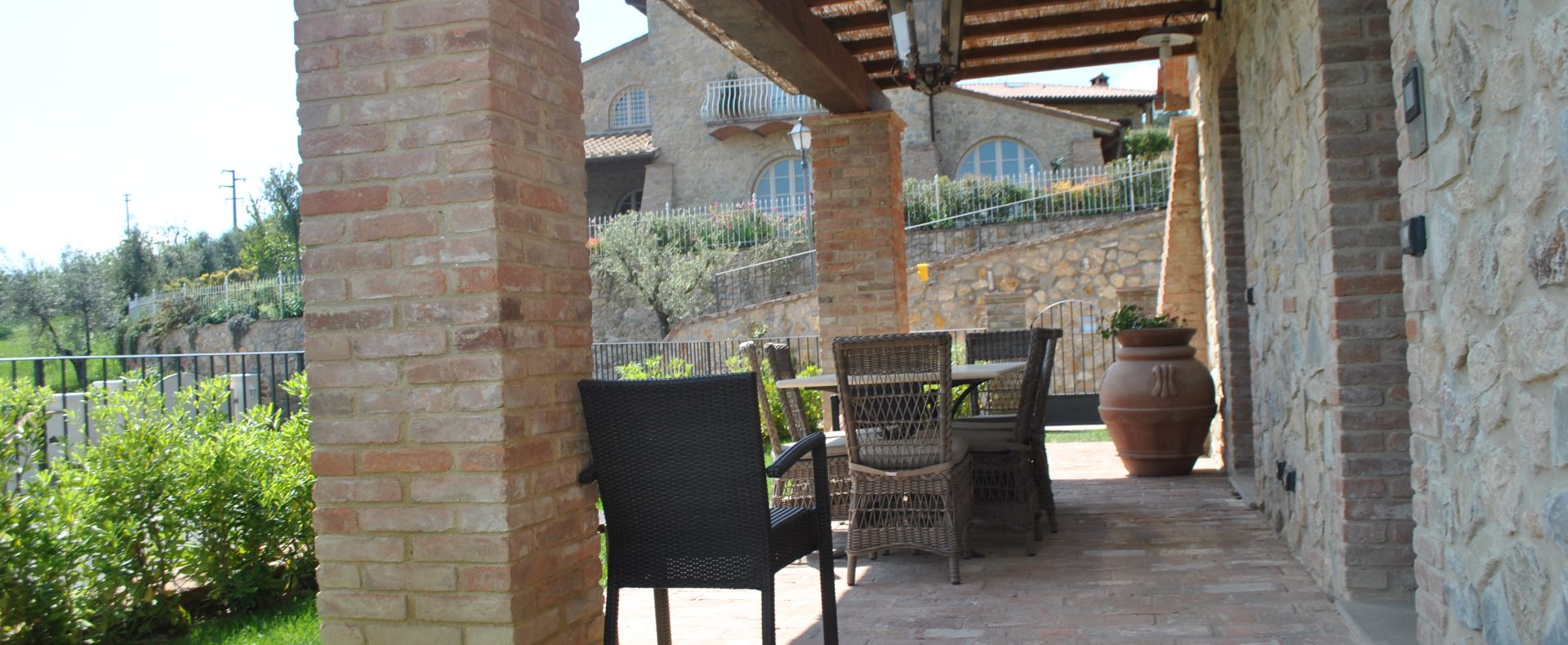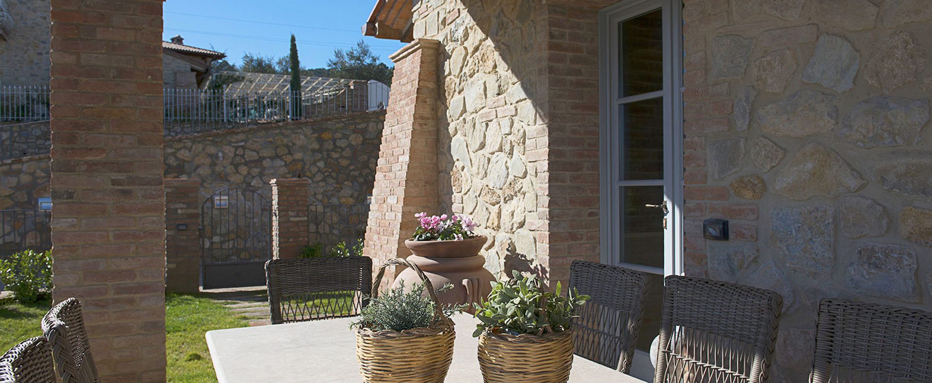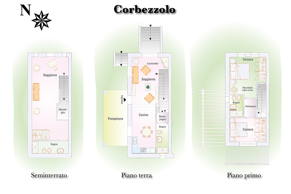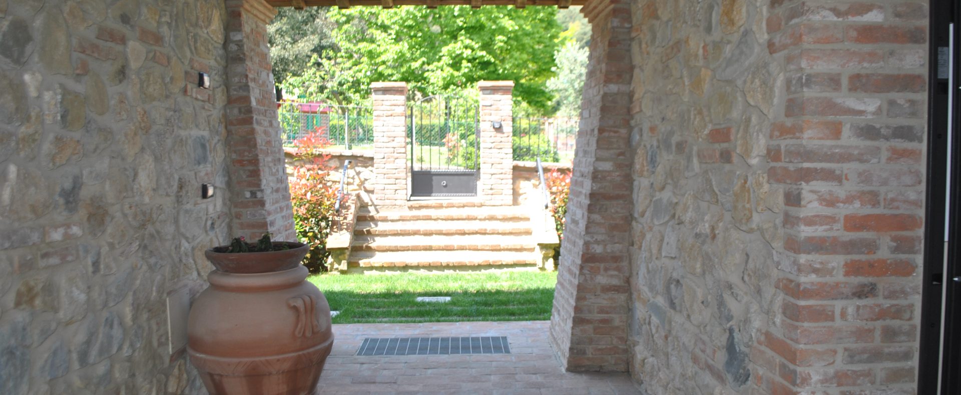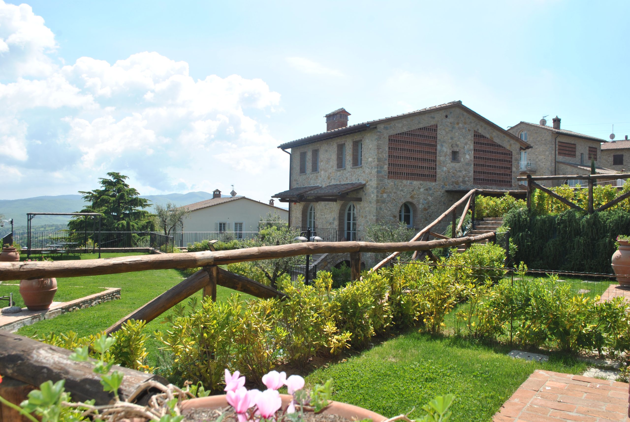Fellesarealene inkluderer et stort grøntområde med asfalterte turveier, utendørs svømmebasseng og åpen eller innendørs privat parkering. Den arkitektoniske utformingen så ut til å bevare ånden til toskanske gårdshus, og samsvarte med egenskapene til rustikk toskansk stil, og brukte derfor kvalitetsmaterialer kombinert med restaurerte gjenstander, inkludert trebjelker for gulvbelegg og restaurert terrakotta murverk. Resultatet er 12 forskjellige leiligheter, alle innredet med omhu og smak: terrakottagulv, eikeparkett, kastanjebjelker, bad utsmykket med travertinmarmor, kjøkkenoverflater i granitt, for å sitere bare noen av materialene som er brukt. Offentlig grøntområde med typiske plantearter og pause- og avslapningsområder.