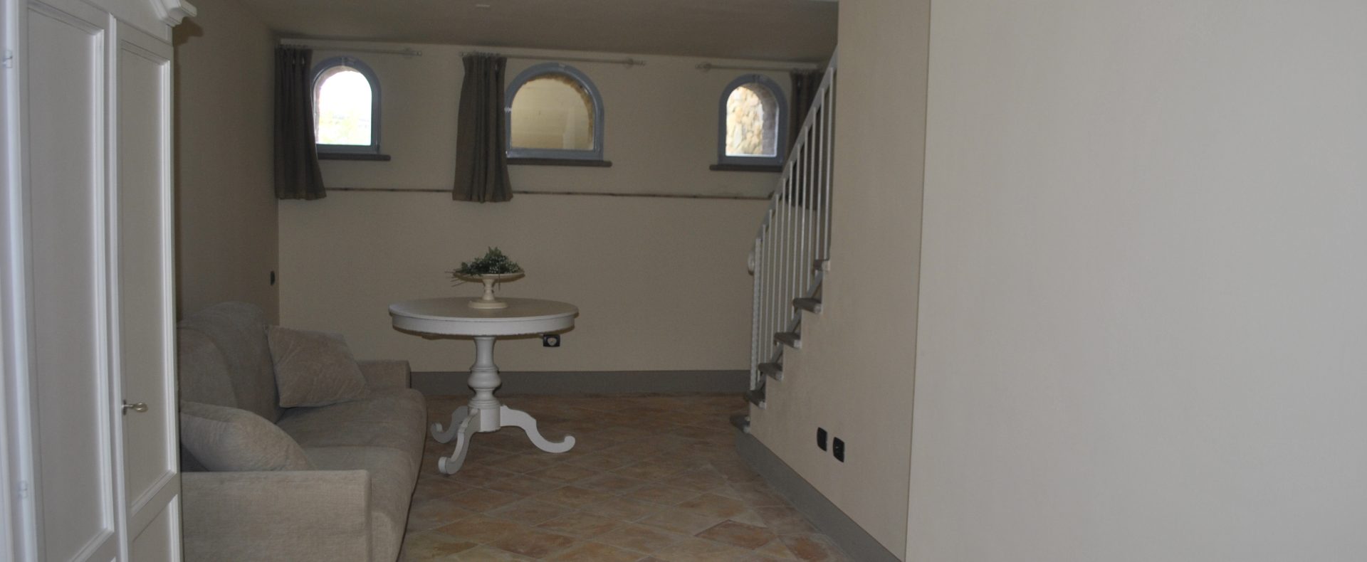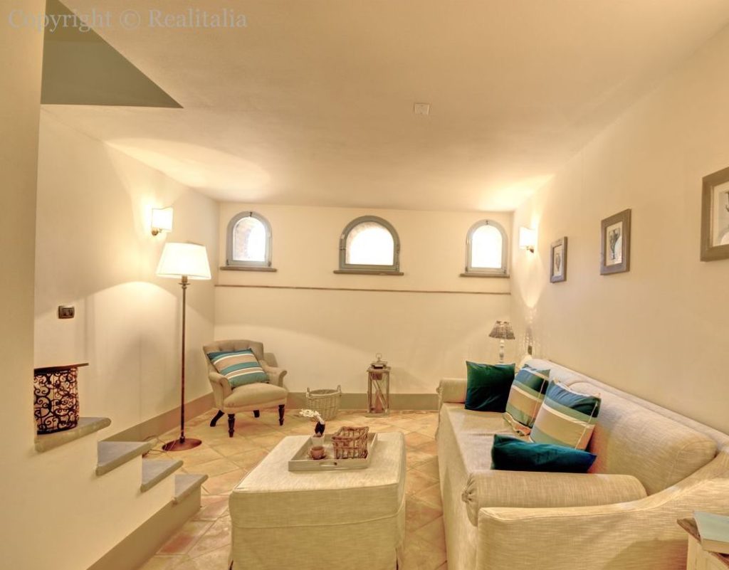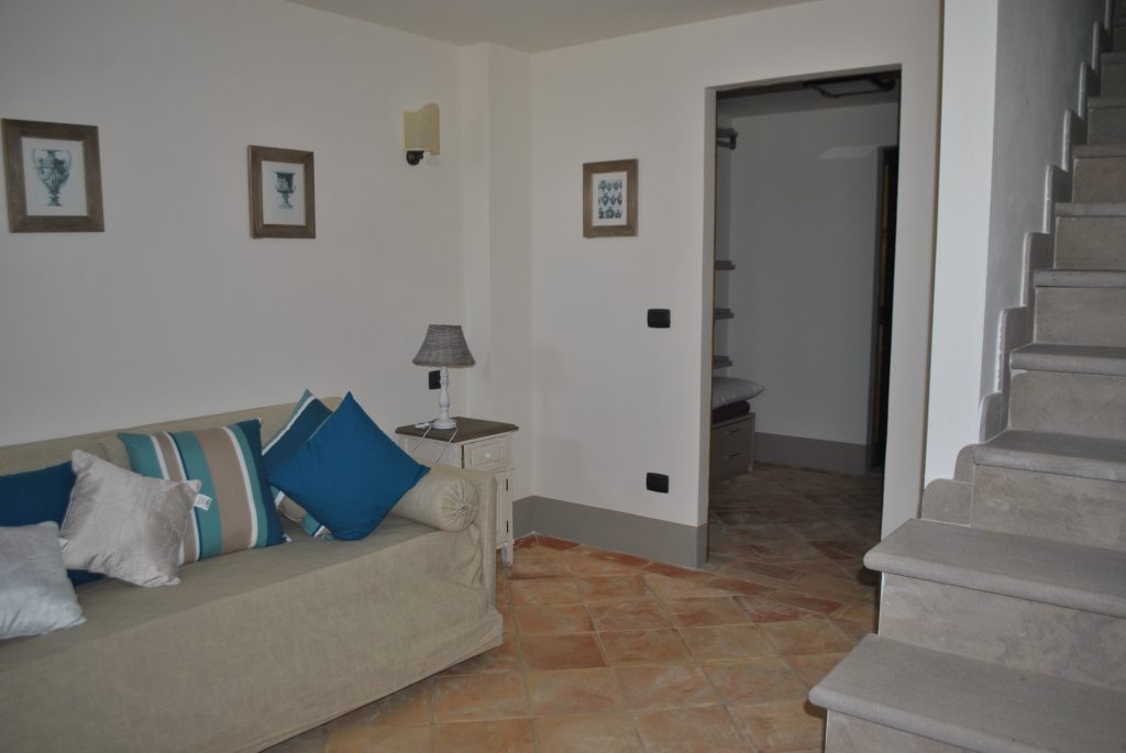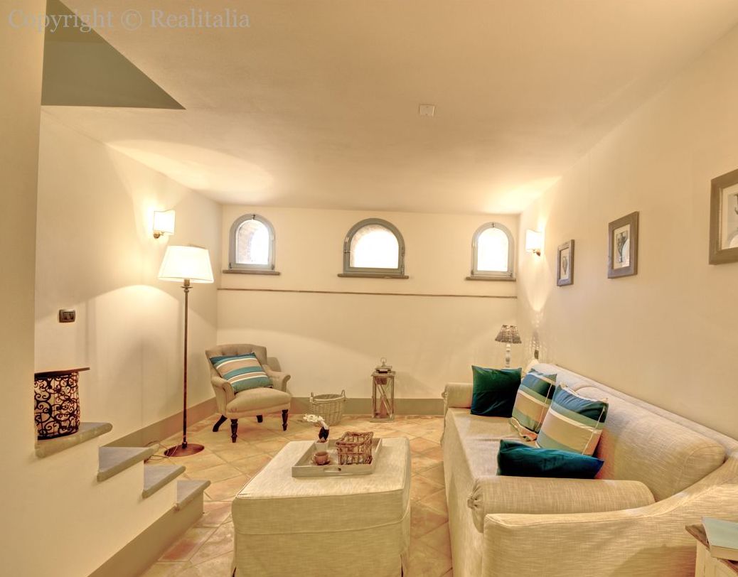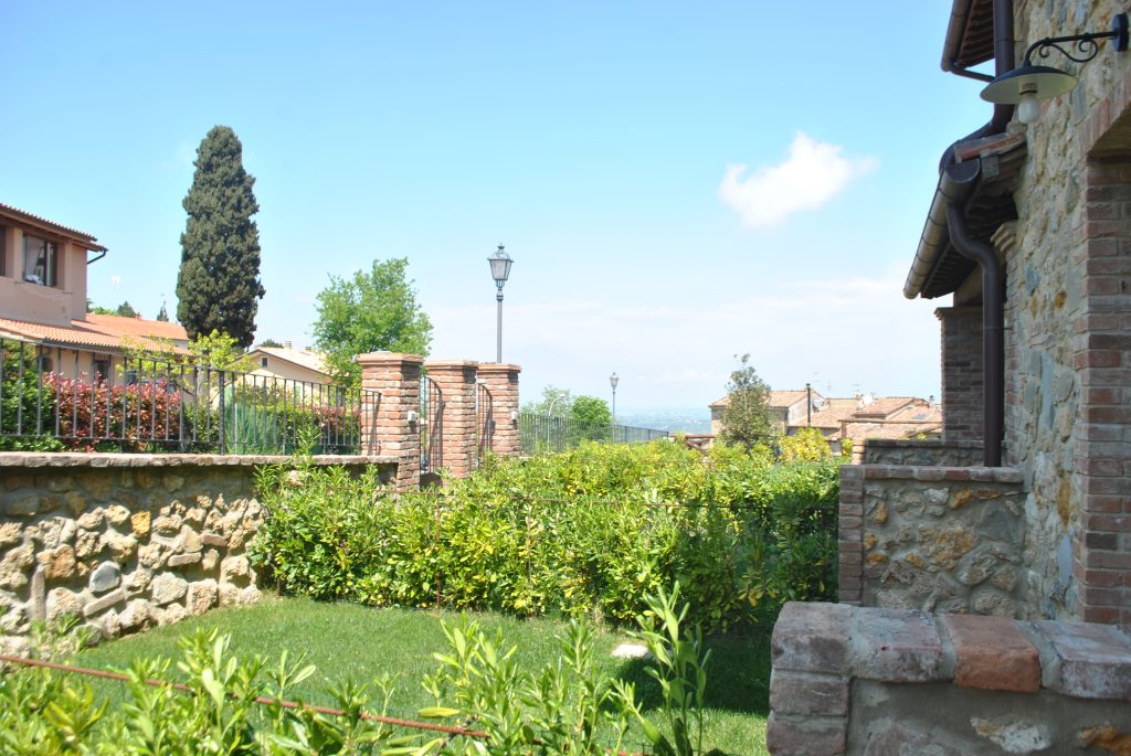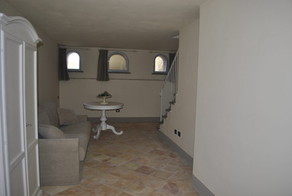 Tomannsbolig med individuell adkomst over to etasjer i tillegg til kjeller. Inkluderer to soverom, tre bad, stor stue og separat spisekjøkken. Leiligheten har en privat hage med tilgang til den offentlige parken og en terrasse med utsikt over Volterra-åsene. Plassene er organisert slik at det er stue med peis, tilstøtende spisekjøkken og lite bad på bakkeplan. I første etasje er det to doble soverom og et stort bad med vindu. Kjelleren inkluderer et lite avslapningsområde, et praktisk oppbevaringsskap under trappen og et bad. Prisantydning: 590.000,00 €