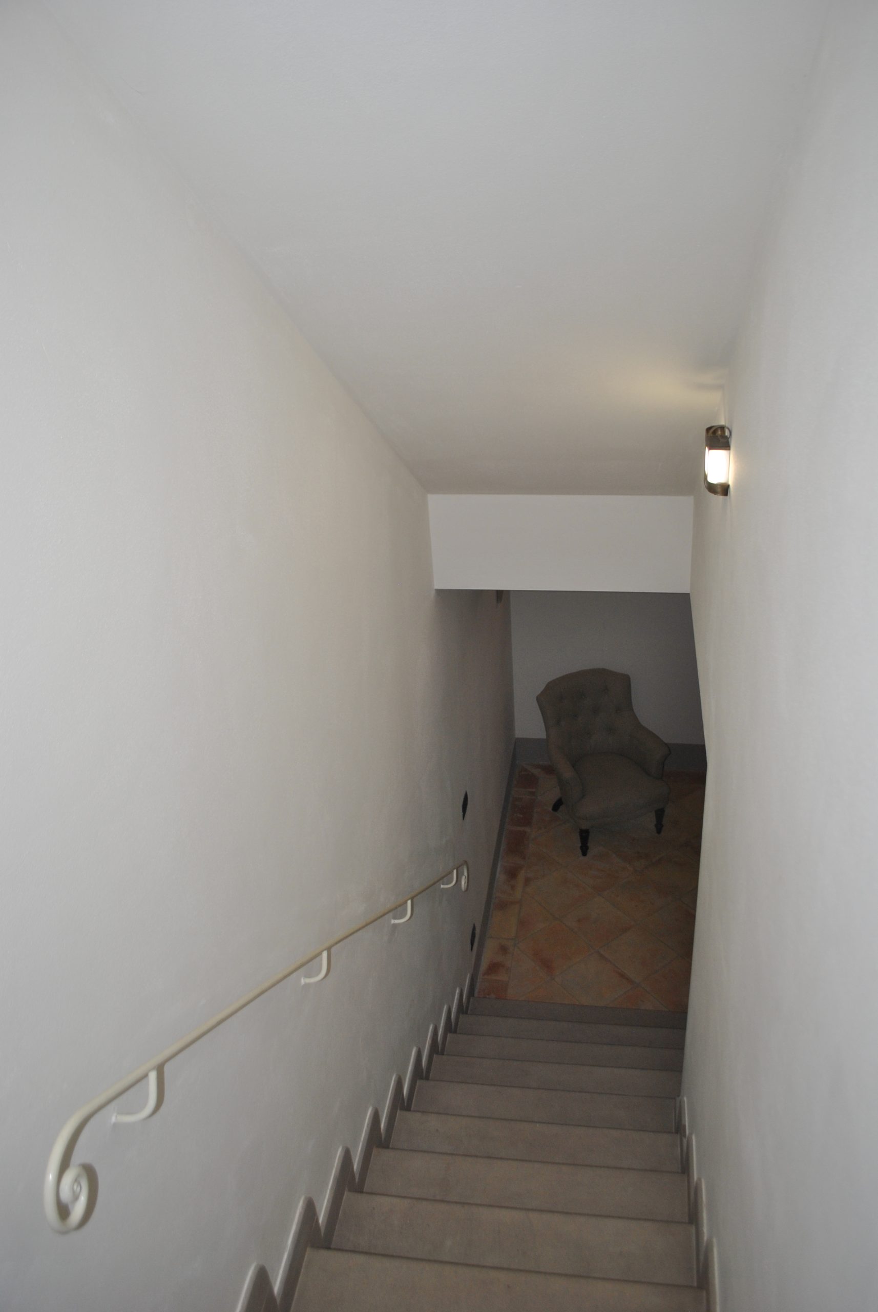 Plassene er organisert slik at det er stue med peis, tilstøtende spisekjøkken og lite bad på bakkeplan. I første etasje er det to doble soverom og et stort bad med vindu. Kjelleren inkluderer et lite avslapningsområde, et praktisk oppbevaringsskap under trappen og et bad. Prisantydning: 530.000,00 €