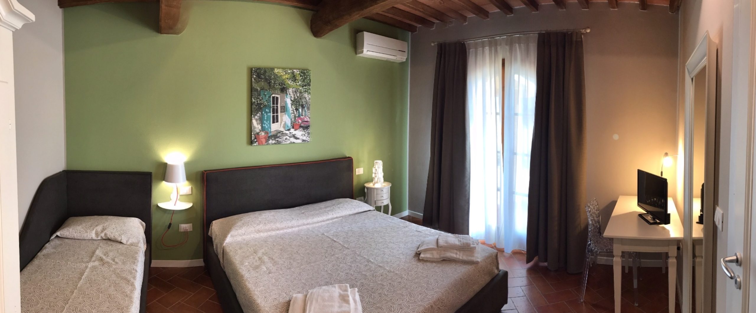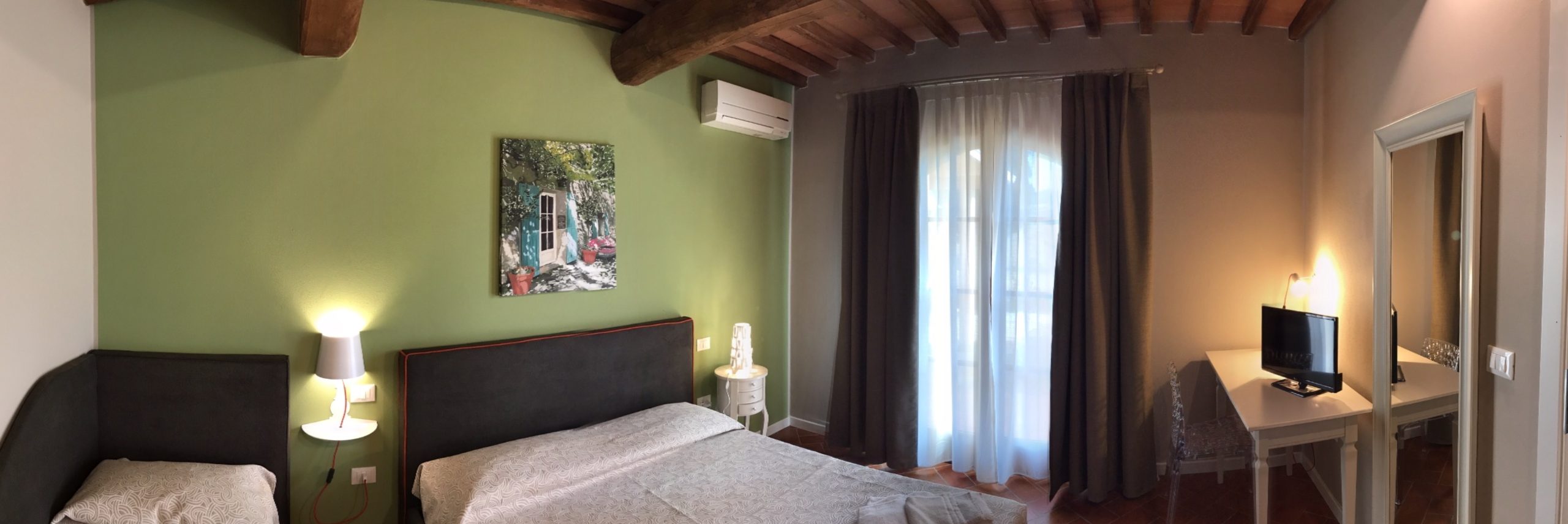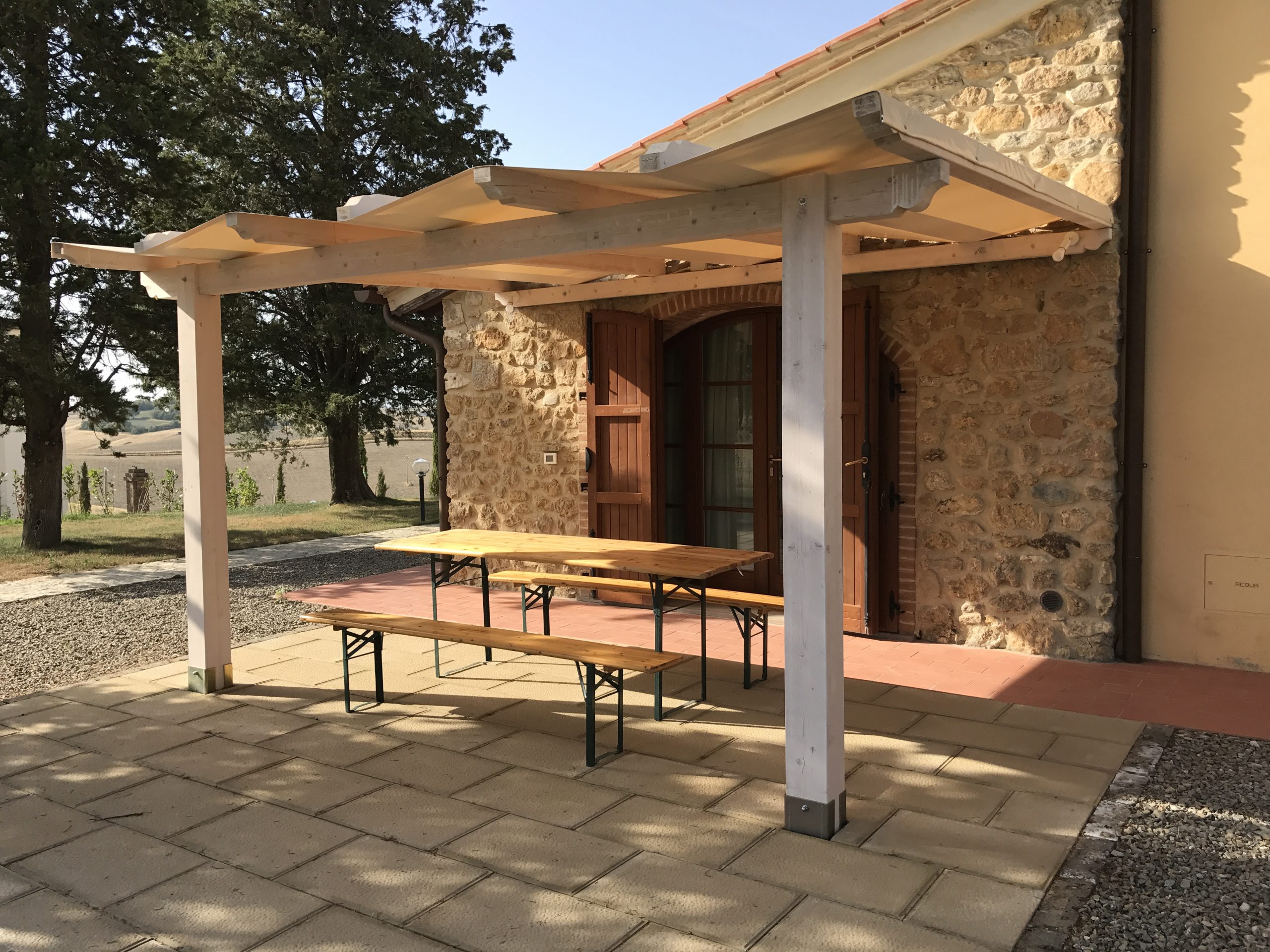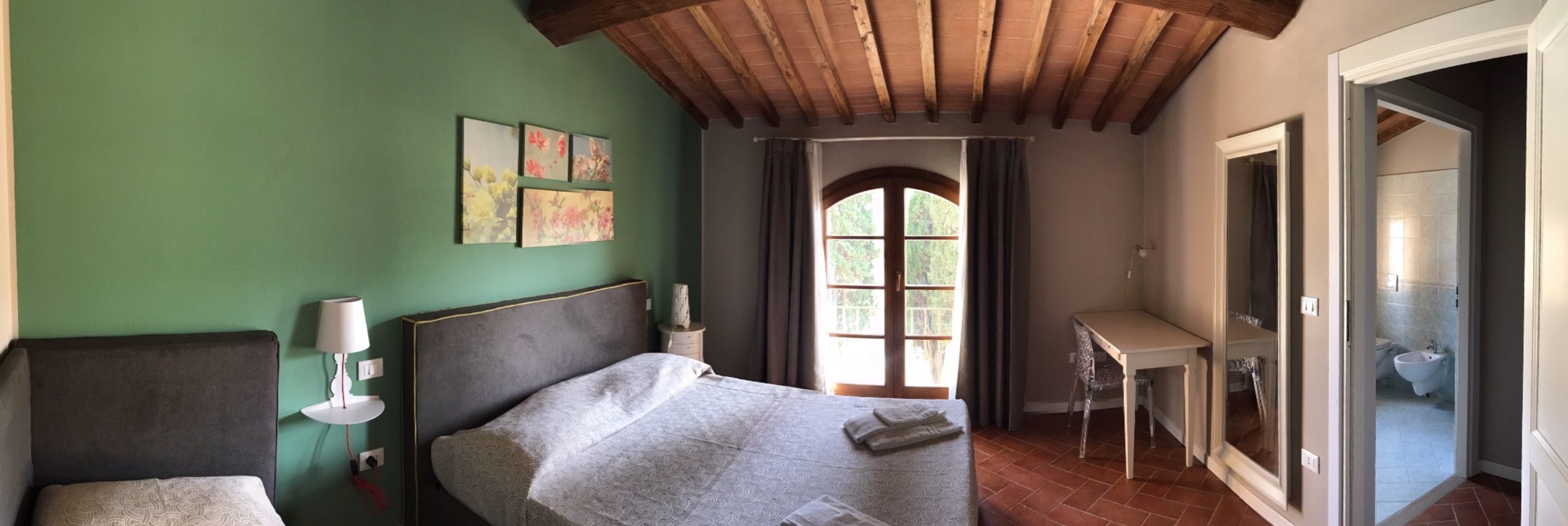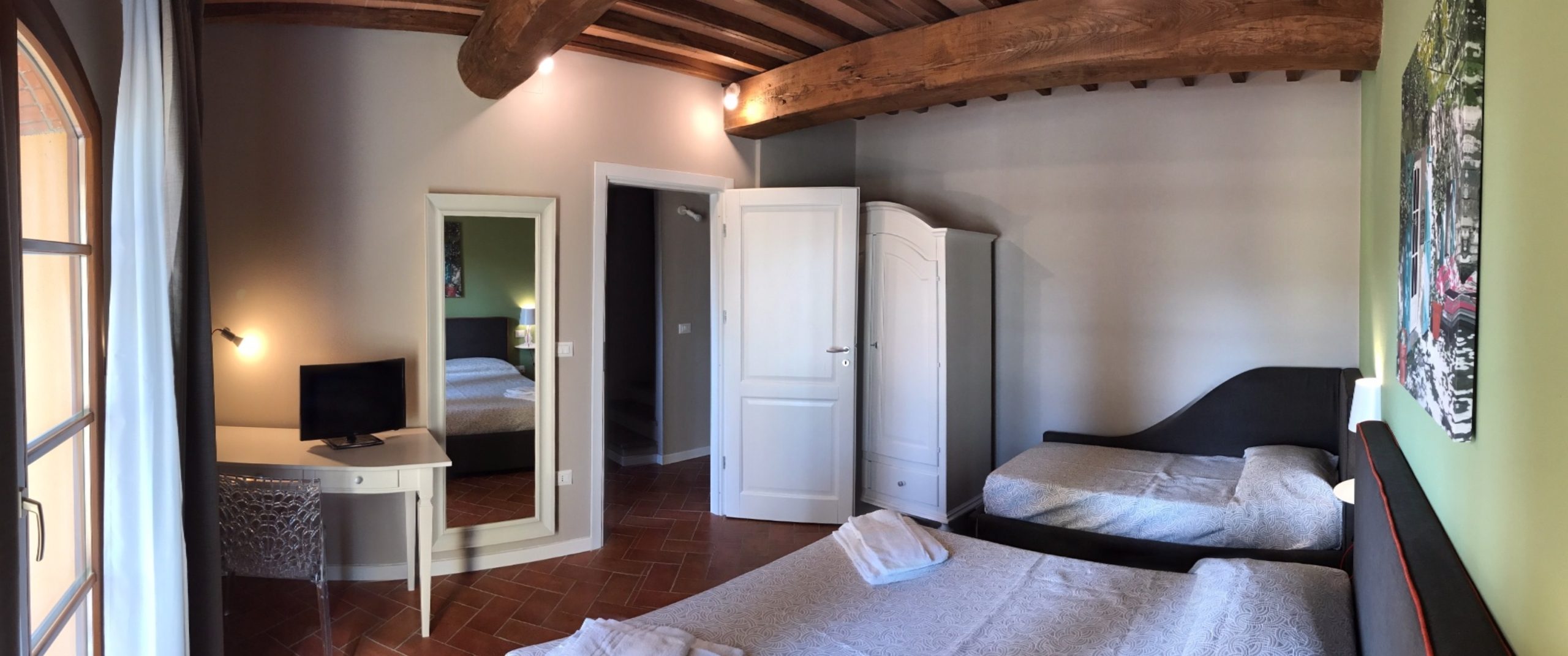 Første etasje består av et utstyrt kjøkken (kjøleskap/fryser, mikrobølgeovn, ovn med fire brennere, servise, spisebord og stoler), en stor stue med en dobbel sovesofa og et dobbelt soverom med en ekstra enkeltseng, hvorfra det er mulig å få tilgang til utsiden. I første etasje finner du også et bad med dusj, bidet og toalett. En trapp fører til andre etasje, hvor det er et dobbeltrom med en ekstra enkeltseng og et bad med dusj, bidet og toalett.