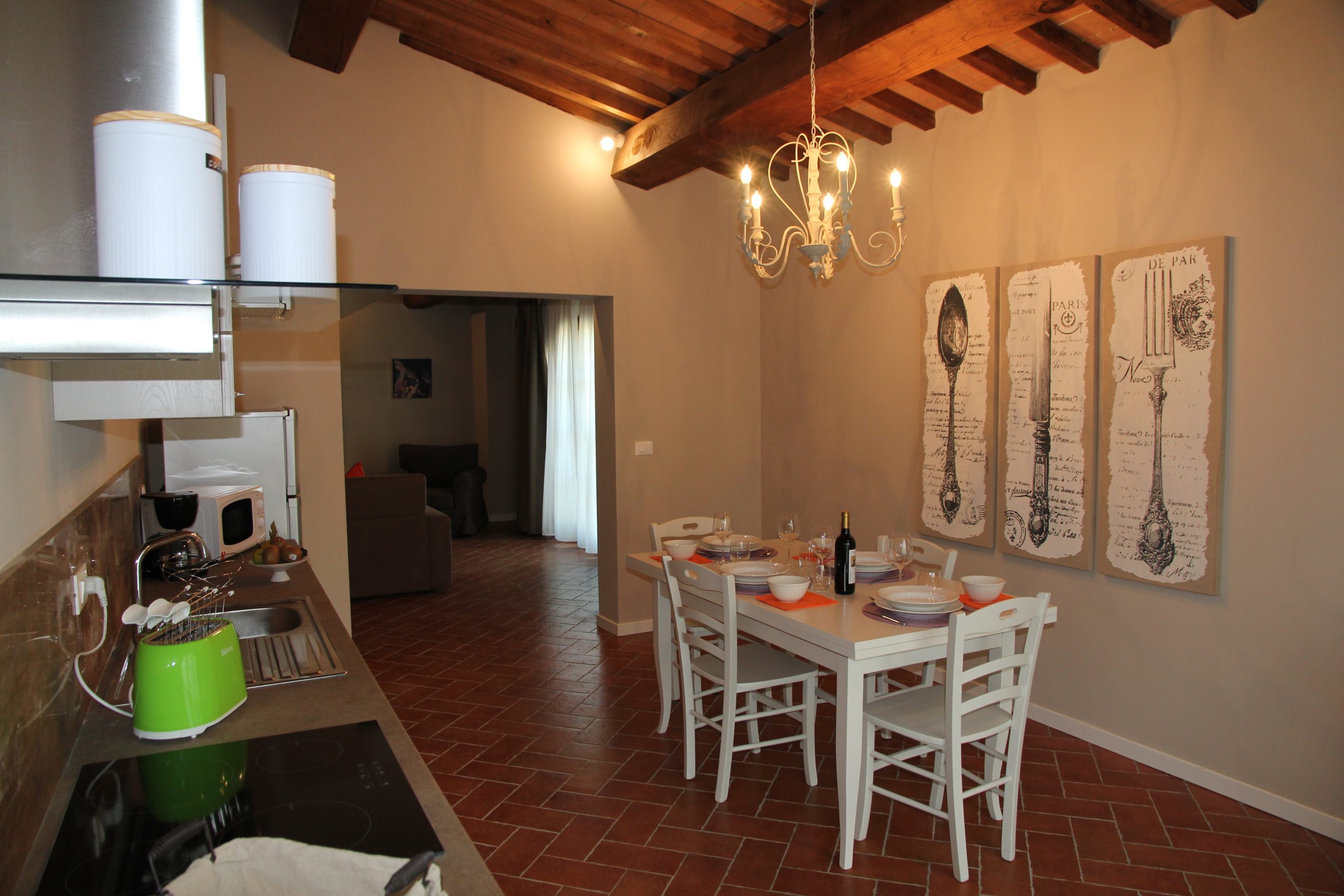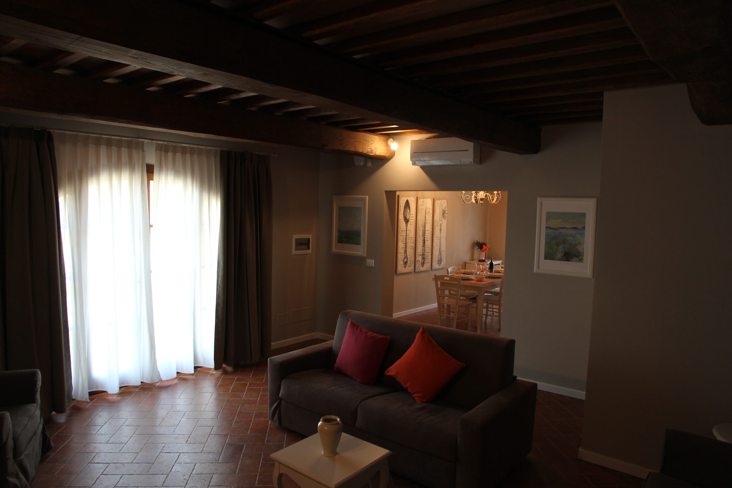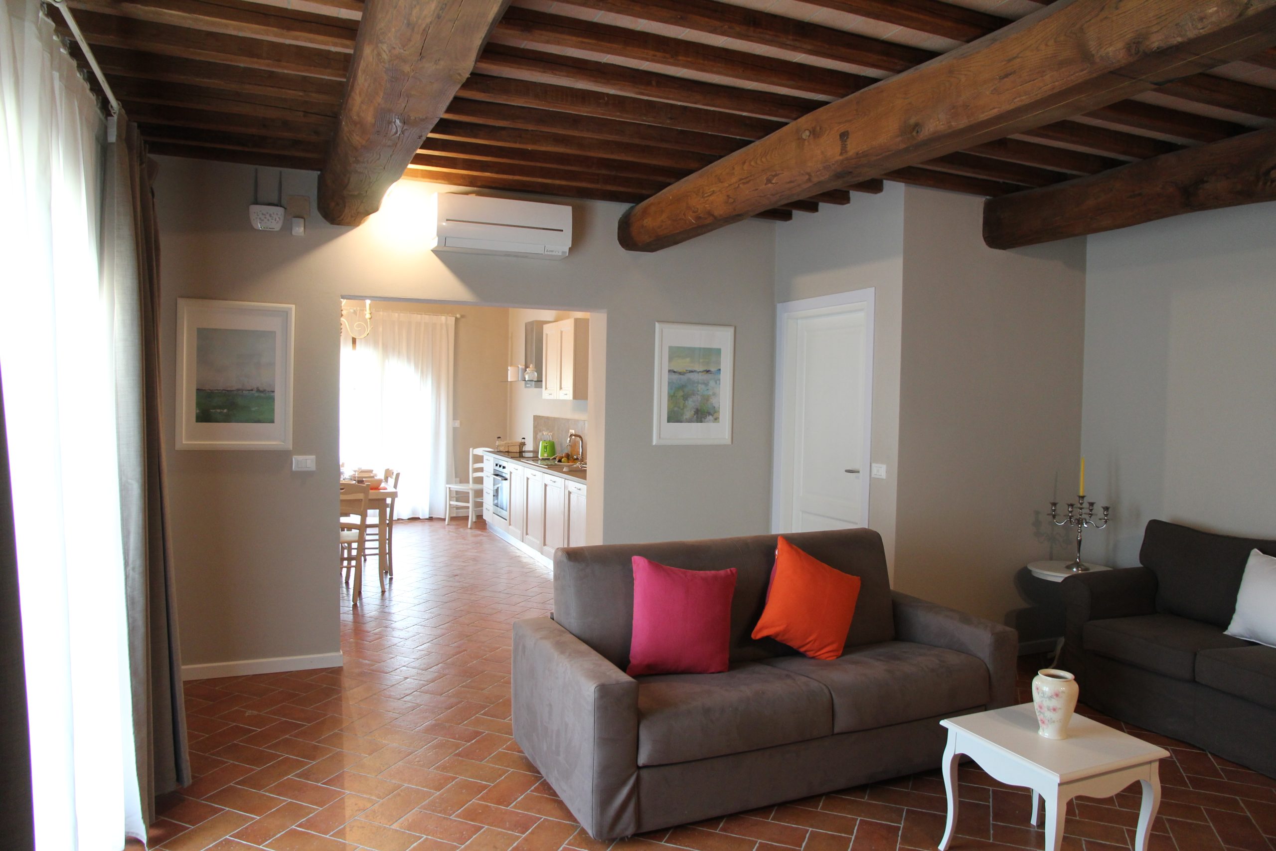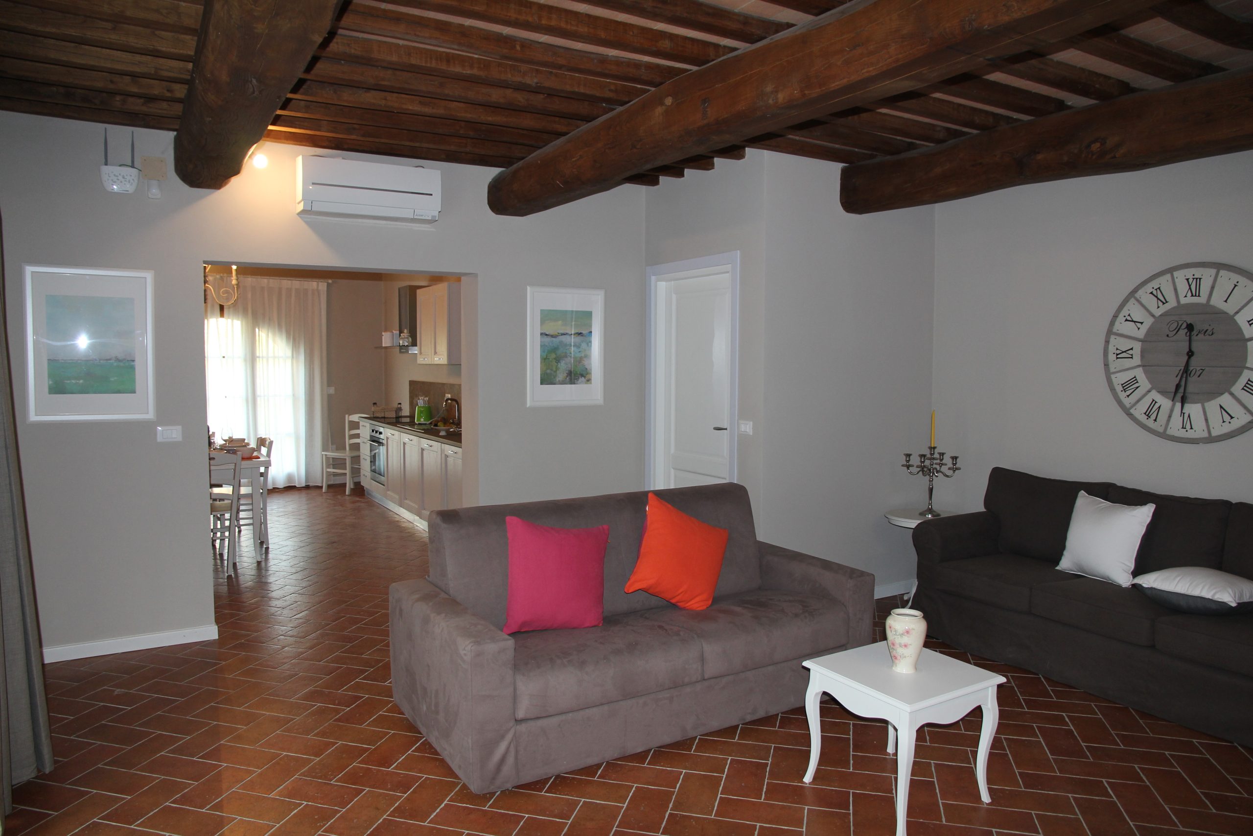 Gelsomino-leiligheten er delt over to etasjer og måler ca. 80 m².