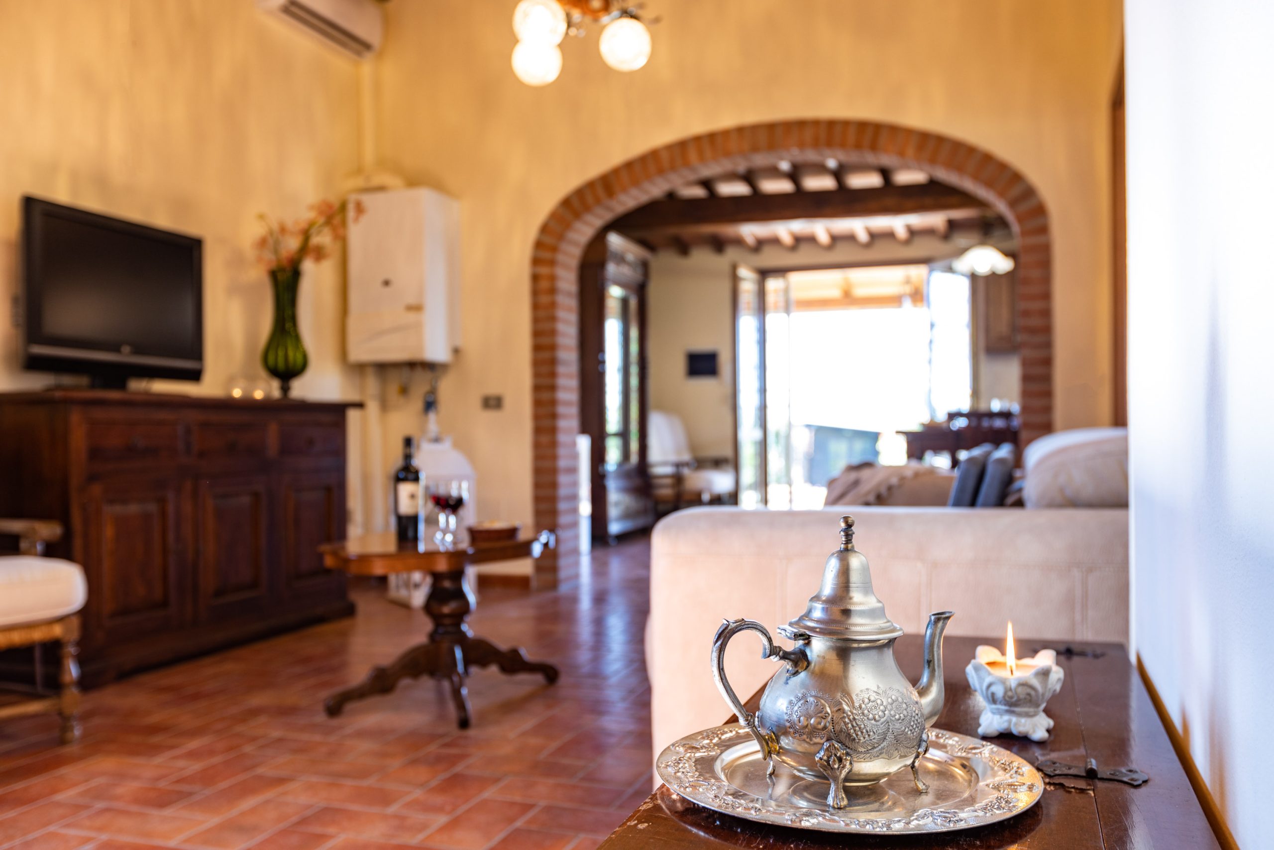 Rustikk og svært innbydende uavhengig villa med et vakkert svømmebasseng (14x6mt), omgitt av oliventrær og en stor hage med panoramautsikt. Består av soverom med dobbeltseng, bad med dusj, stue med velutstyrt kjøkken, satellitt-TV, sovesofa og peis; kan huse opptil 4 personer. Uteområdet er fullstendig inngjerdet og tilbyr et lysthus utstyrt med fluktstoler og solsenger ved bassenget, en uteplass ved siden av huset for å spise utendørs og nyte sommerkveldene. Huset kan nås via en liten grusvei kun 700 meter fra hovedveien, 10 minutter fra FIPILI-motorveien og mindre enn 1 time fra de viktigste byene.